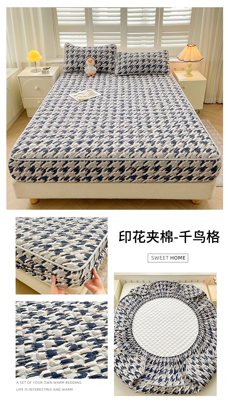 • 91家纺网 家纺一手货源 找家纺 【高克重加厚】雯豆 新品磨毛夹棉床笠印花水洗棉床笠三件套床垫保护罩 千鸟格