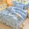 商品名称:2025秋冬新款230g全消光牛奶绒床裙款四件套纯色蕾丝花边刺绣蕾丝床裙款床盖款法式蕾丝公主粉奶油风四件套 甜心—婴儿蓝
