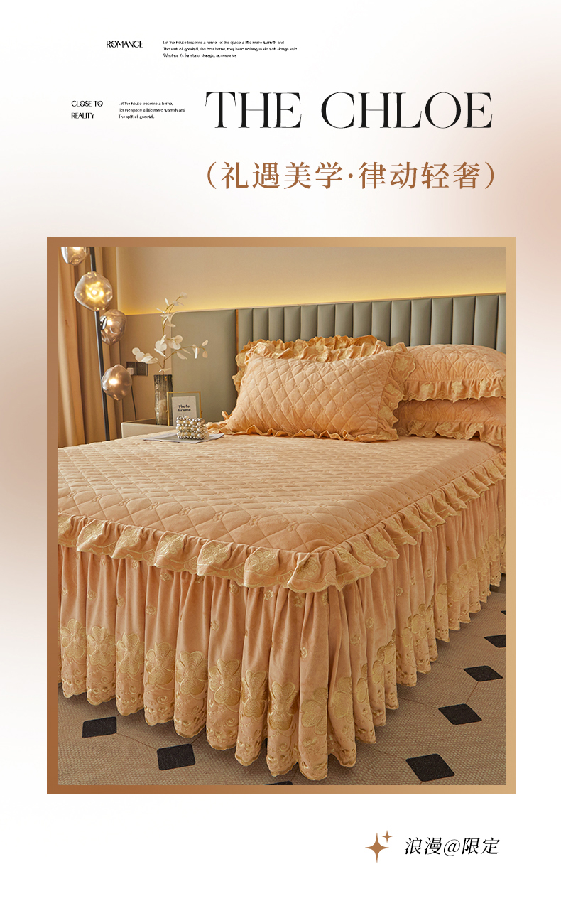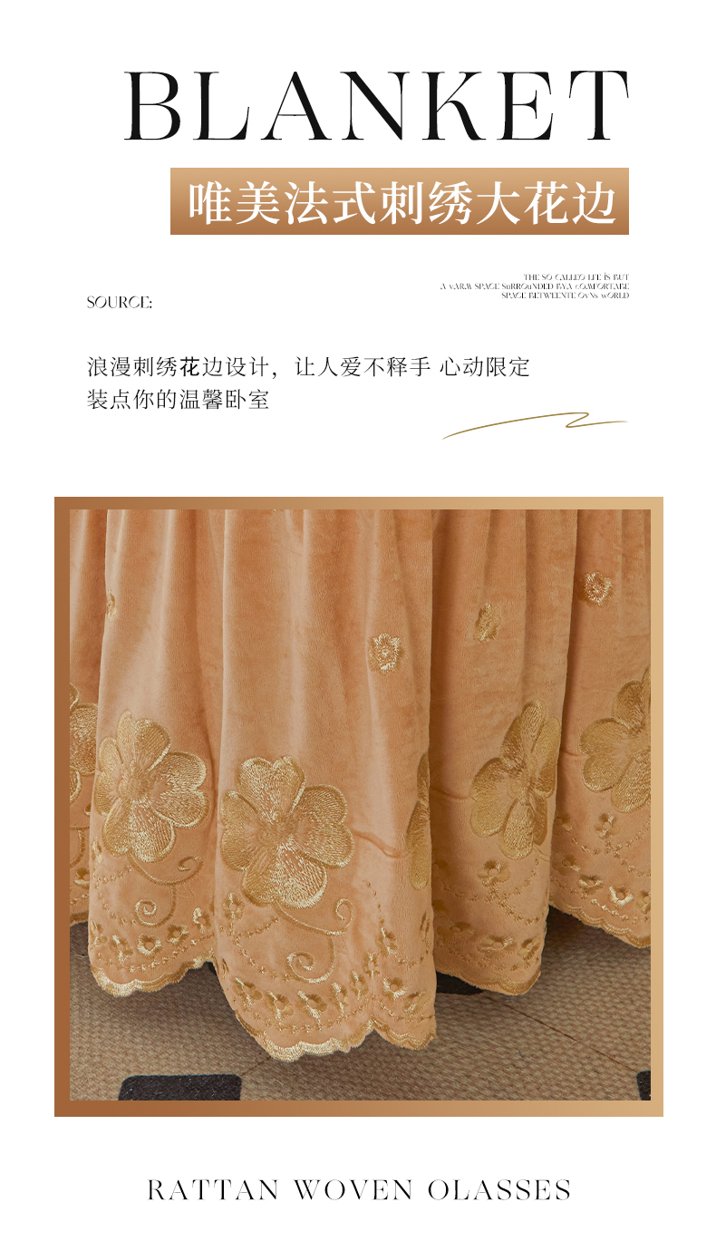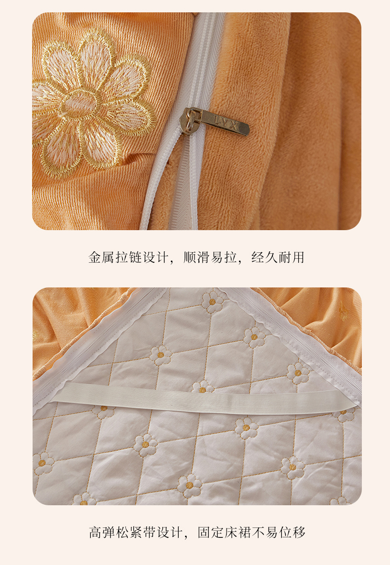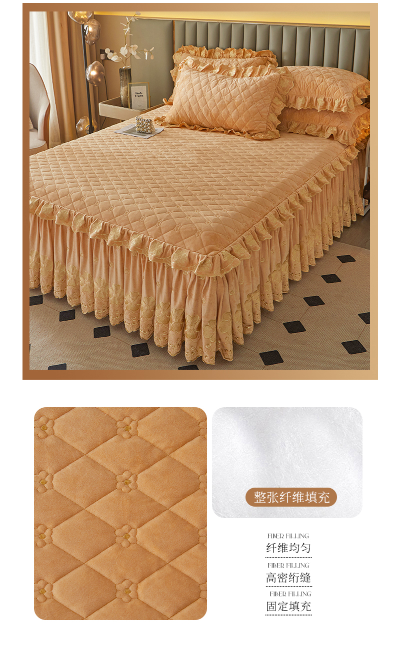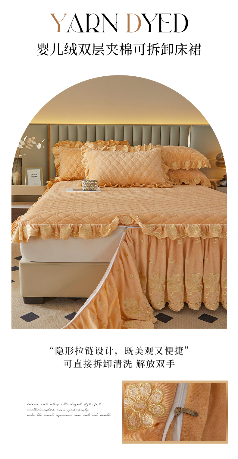 • 91家纺网 家纺一手货源 找家纺 罗艺轩 2025新款婴儿绒双层夹棉可拆卸床裙-花语 花语-香槟金