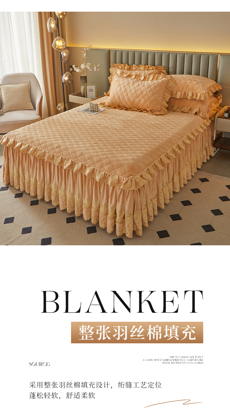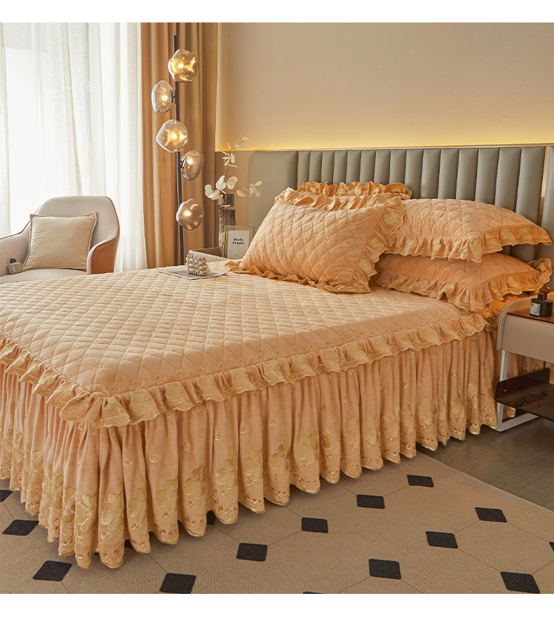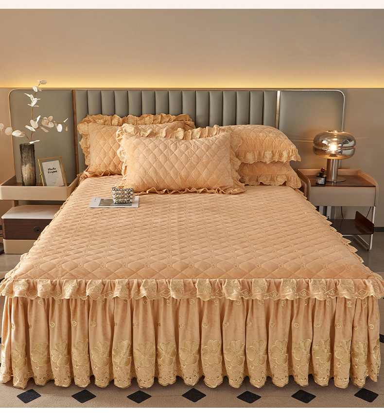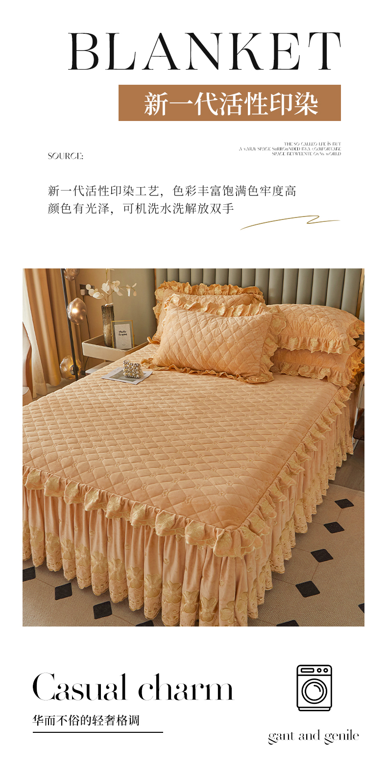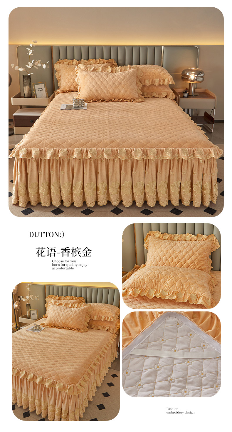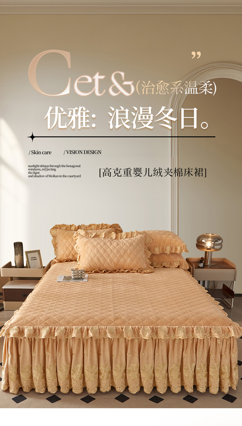 • 91家纺网 家纺一手货源 找家纺 罗艺轩 2025新款婴儿绒双层夹棉可拆卸床裙-花语 花语-香槟金