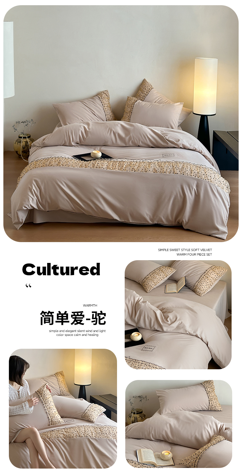 当前位置: 91家纺网 > 商品网购 > 床品套件 > 四件套 > 磨毛活性四件套 > 2025新款直播热款奶油公主风法式蕾丝花边四件套水洗磨毛纯色床笠学生三件套-简单爱 简单爱-驼