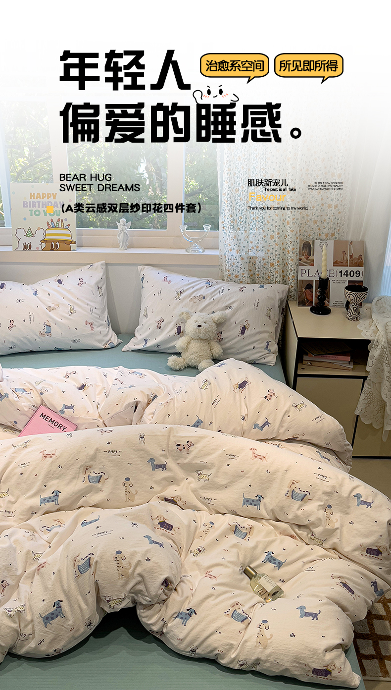 当前位置: 91家纺网 > 商品网购 > 床品套件 > 四件套 > 其它四件套 > 奈颜 2025新款爆款云感提花双层纱裸睡四件套 狗狗派对