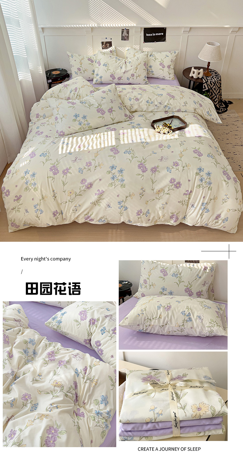 商品名称:港岛妹妹 2025 新款水洗双层纱 绑带款系列四件套(可提供买家秀) 田园花语