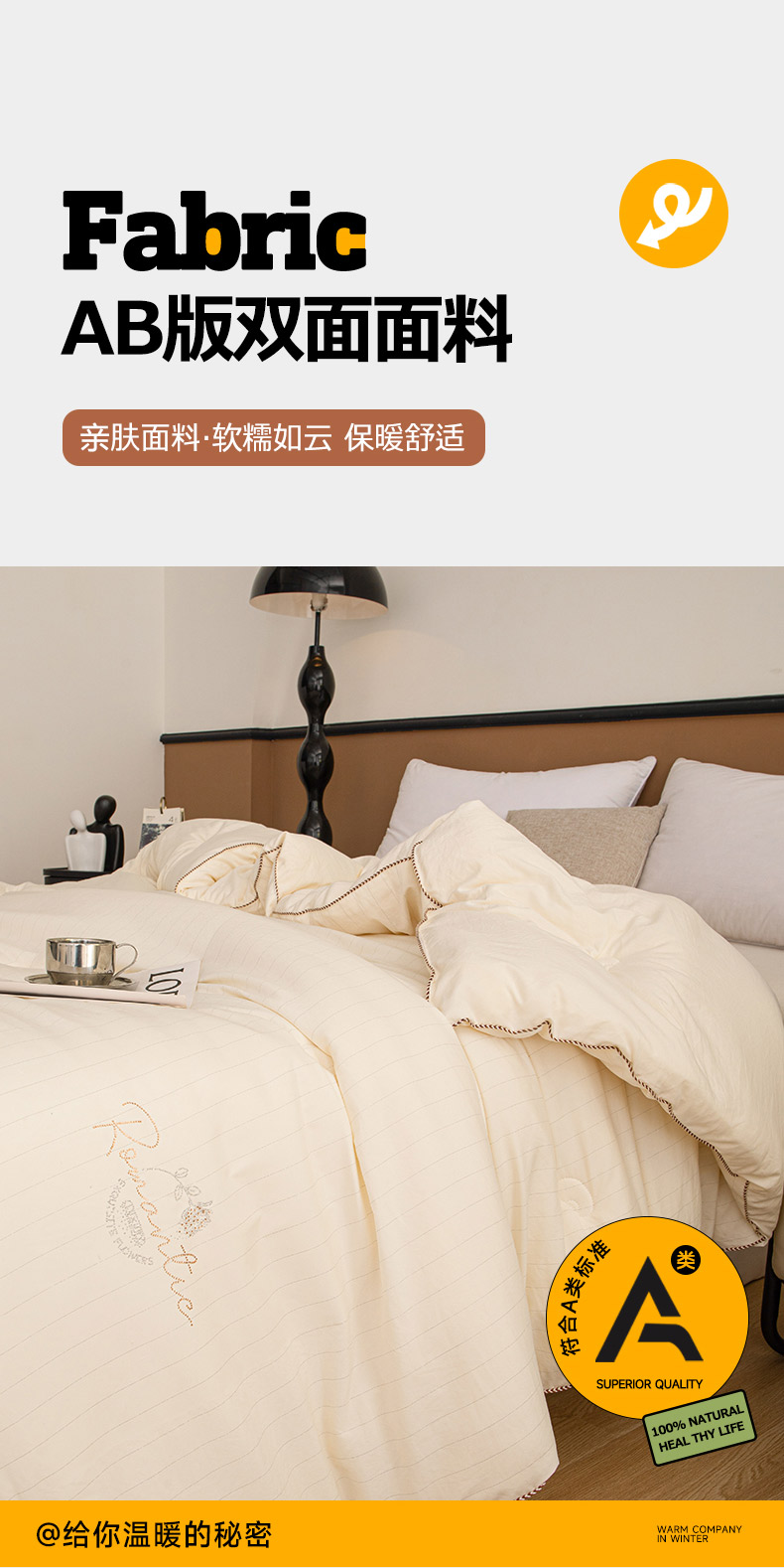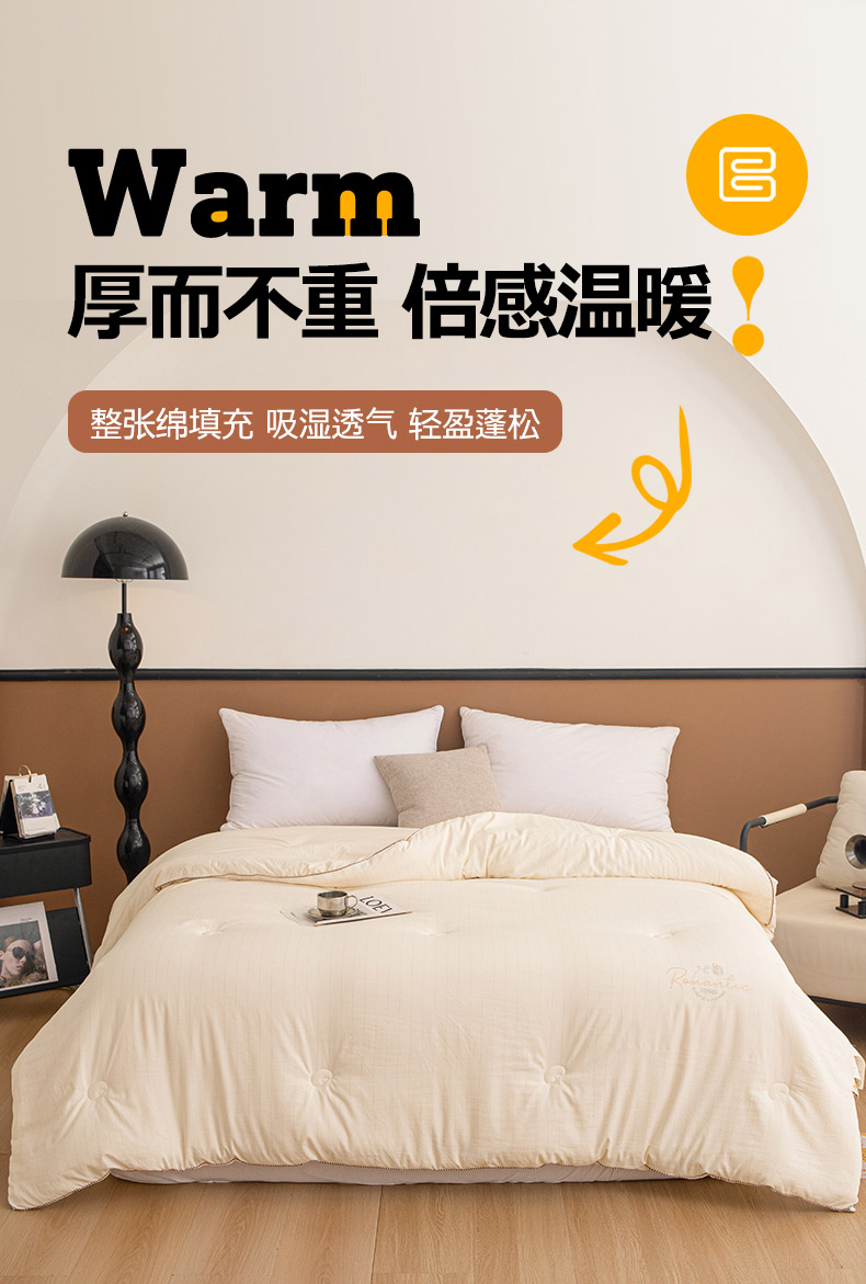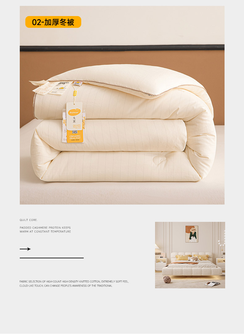 • 91家纺网 家纺一手货源 找家纺 睡棉坊 2025新款A类银融棉大豆被水洗棉春秋被加厚冬被正宗10%大豆被带质检报告 象牙白