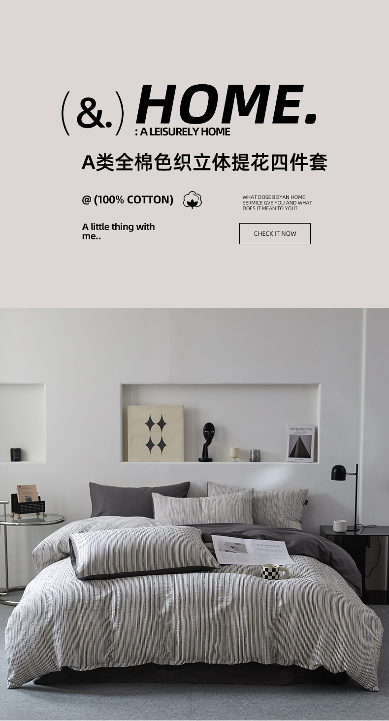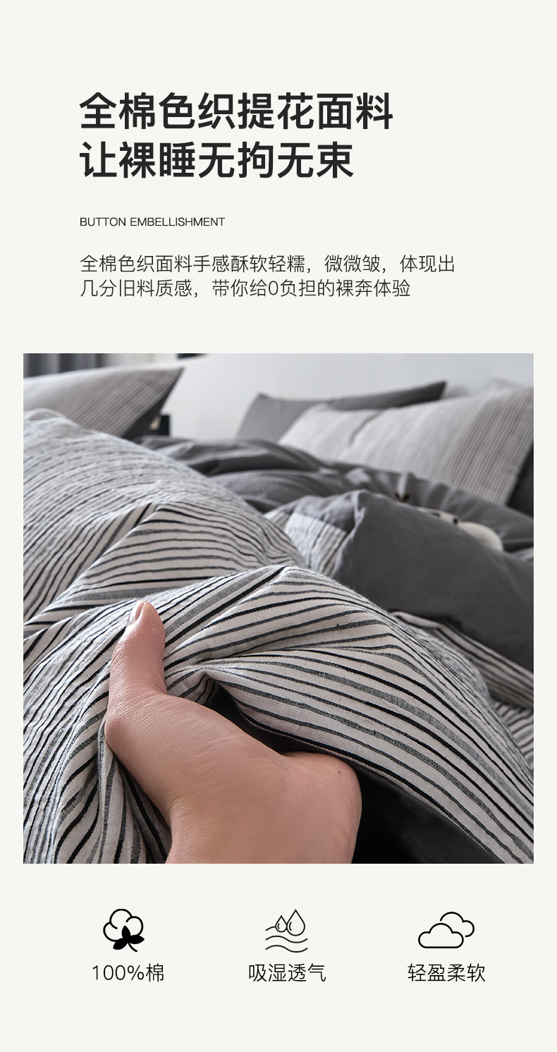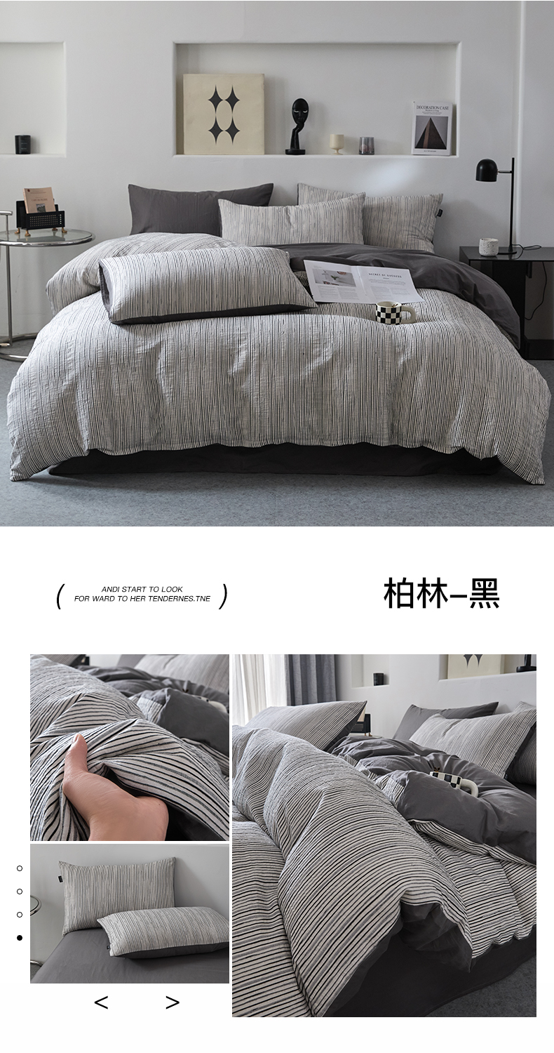 格里芬家纺 2025新款全棉色织水洗立体提花四件套-柏林 柏林-黑