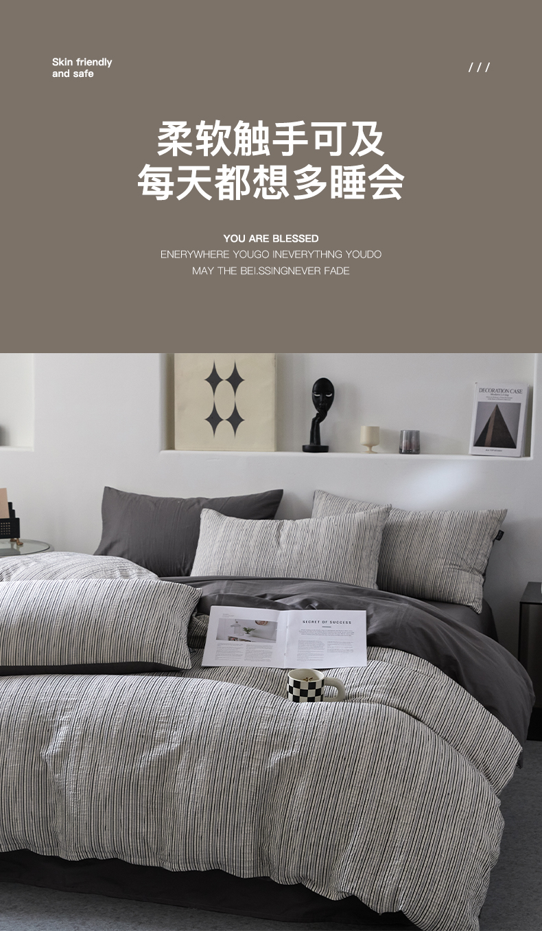 (总)格里芬家纺 2025新款全棉加厚磨毛简约条纹印花四件套,雅韵-红咖,雅韵-绿,雅韵-兰,雅韵-紫红
