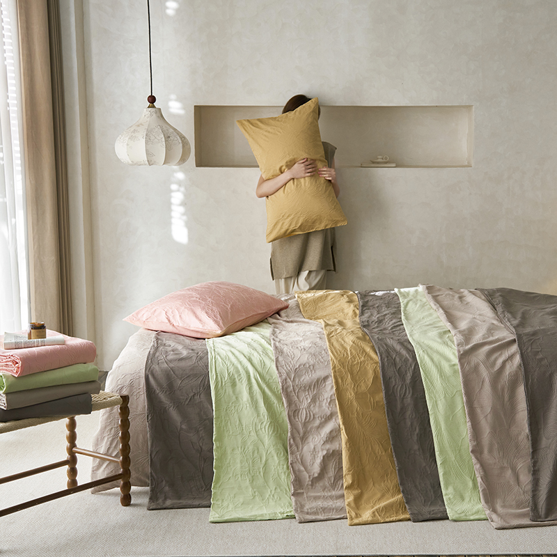 2025春夏新品染色水洗大提花单品被套 染黛-嫩绿