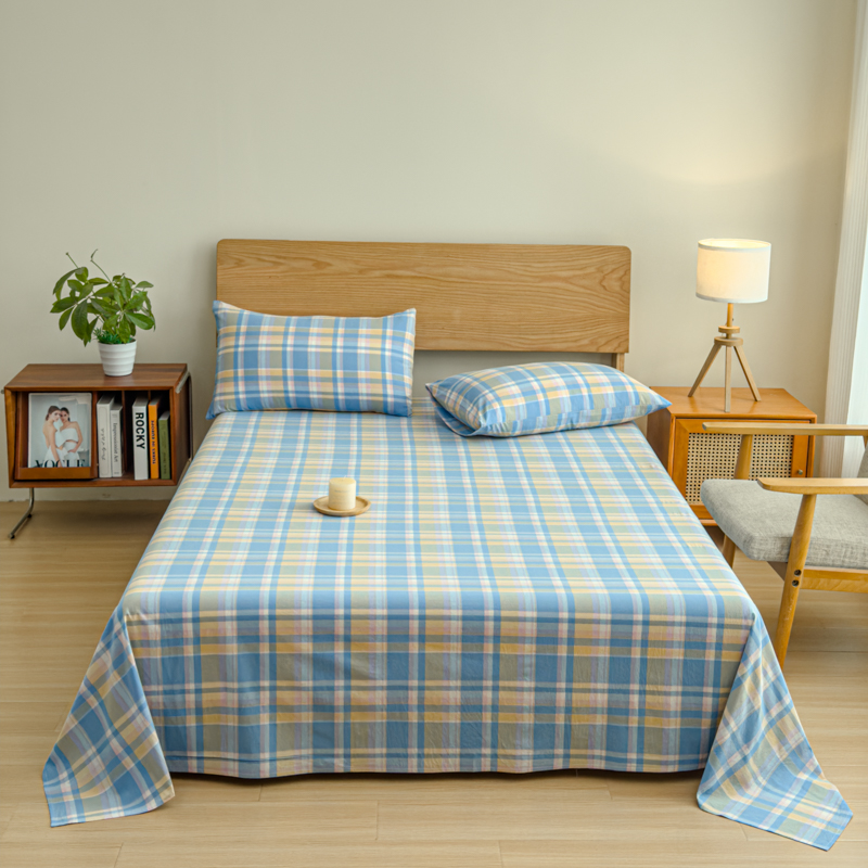 商品名称:2025新款简约款色织水洗棉单品床单 昭华蓝