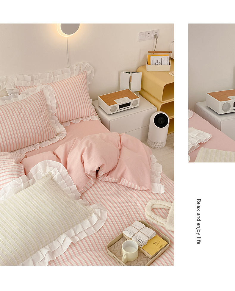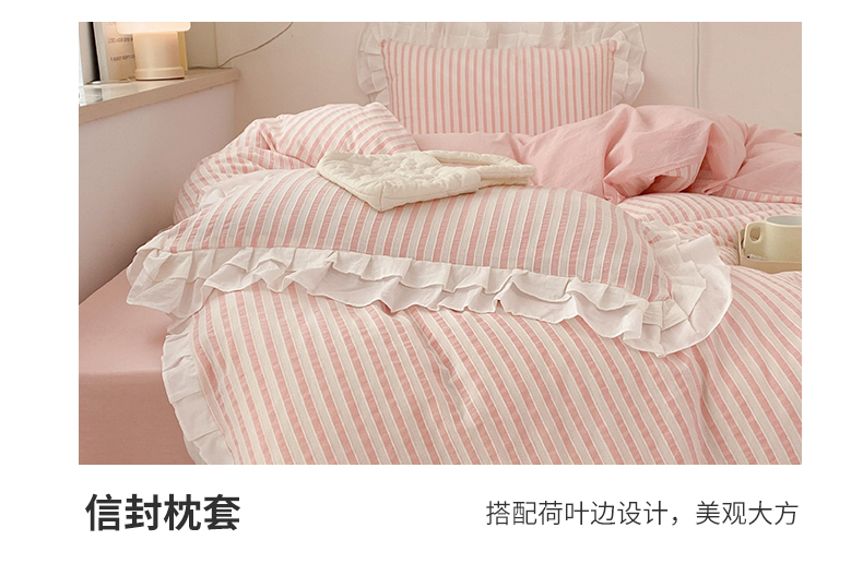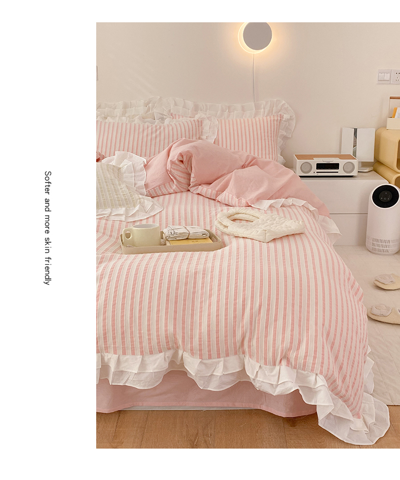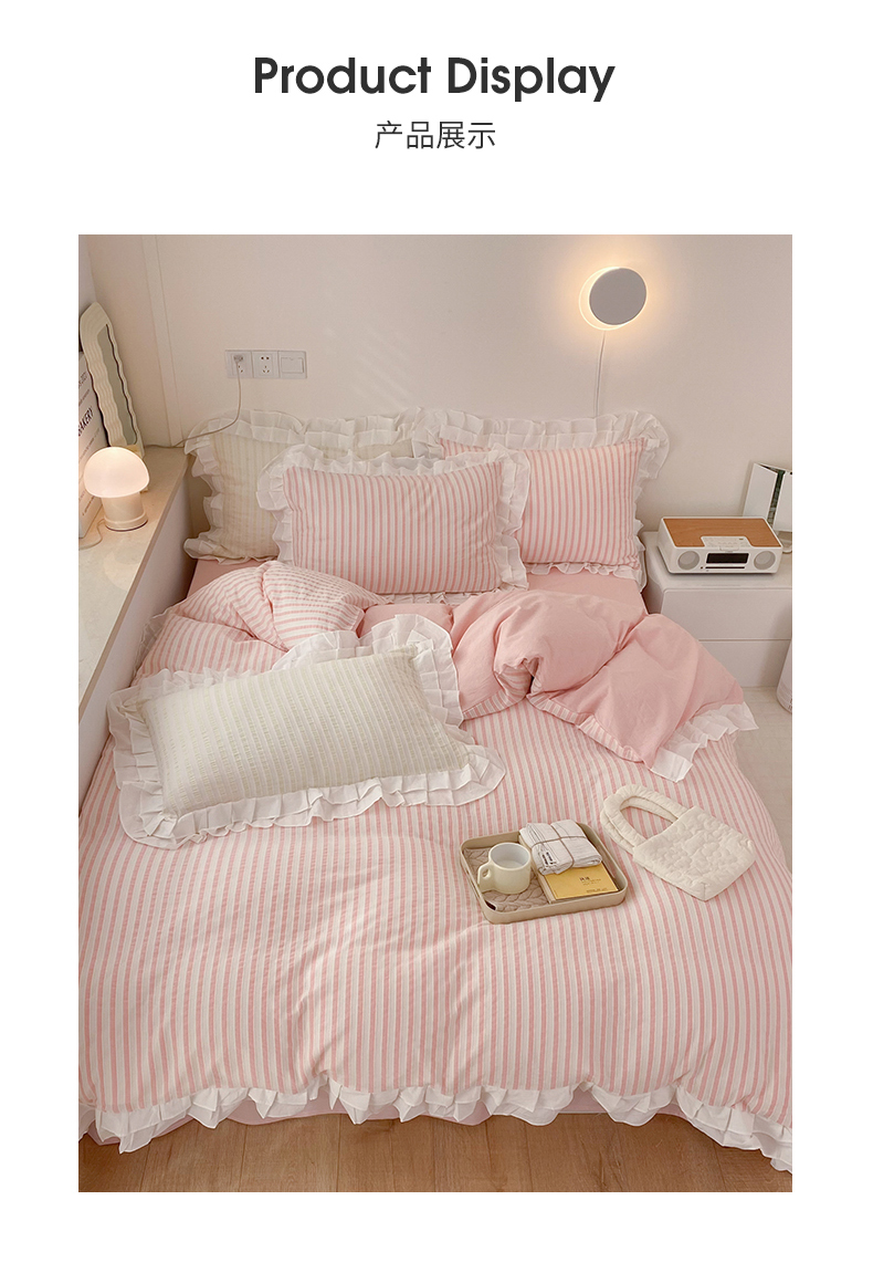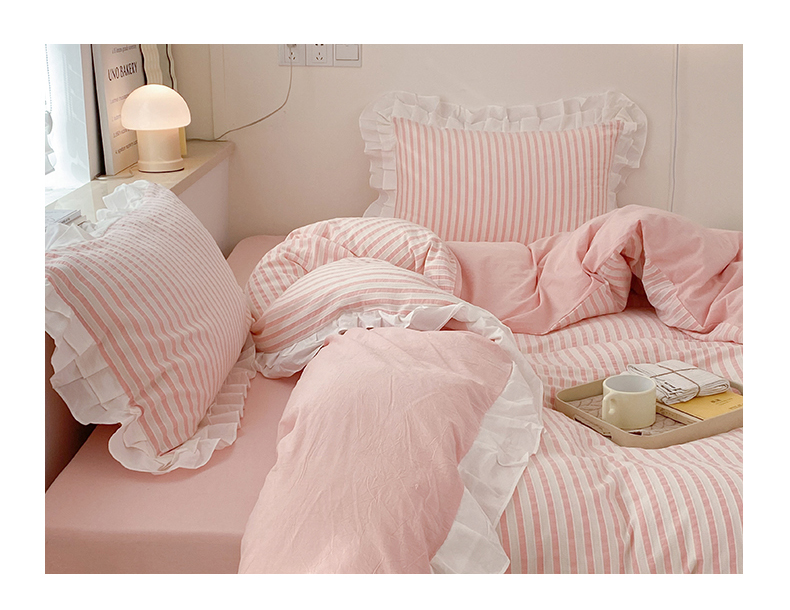 商品名称:尺素 2025新款色织水洗棉韩式花边款素系列四件套 桃夭