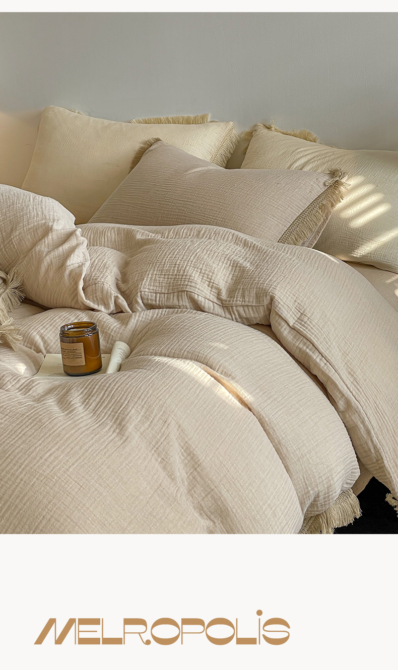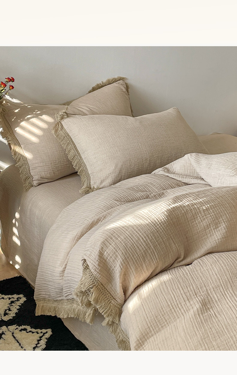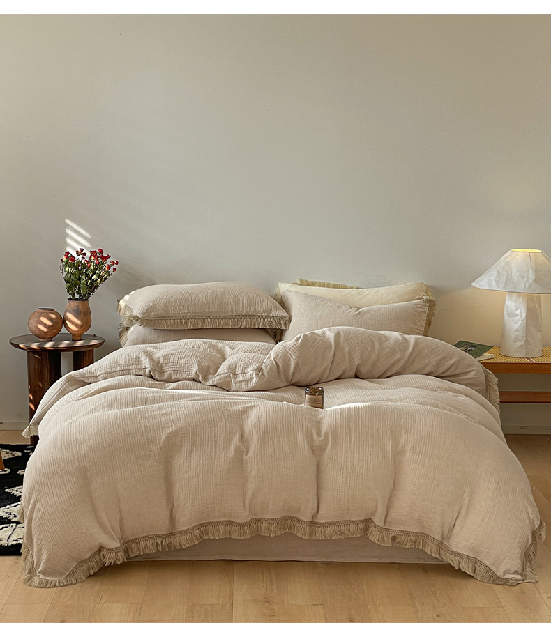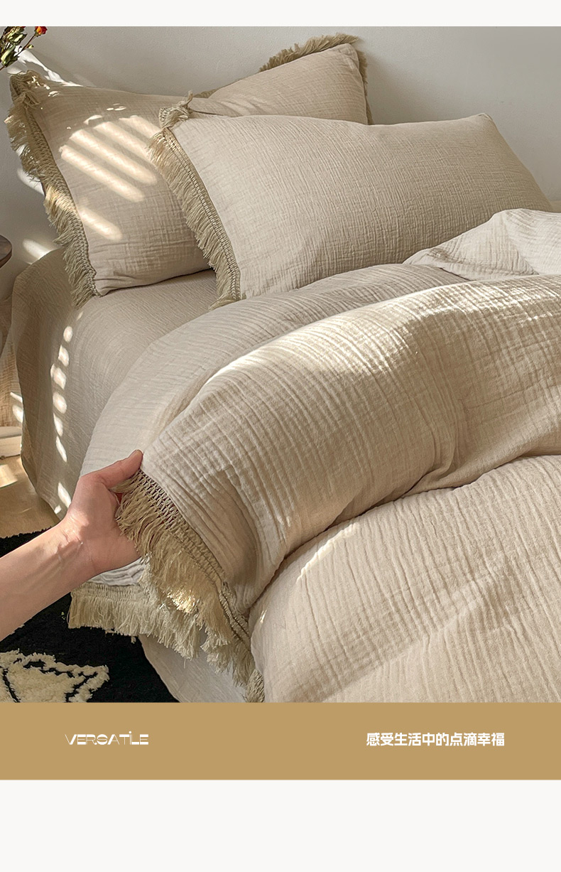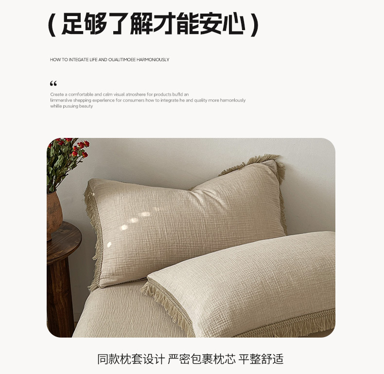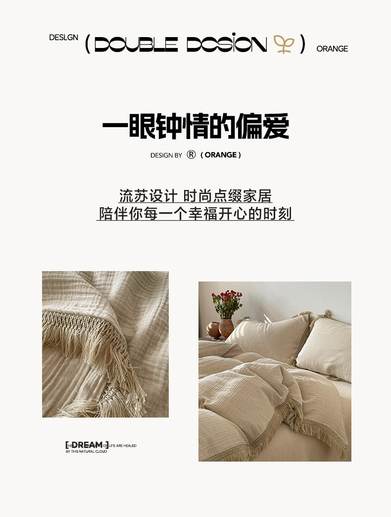 商品名称:卡巴伦家纺 2025新款双层皱皱纱法式流苏款四件套【全网控价(折后券后)不低于标准278/加大298元】 拿铁-咖