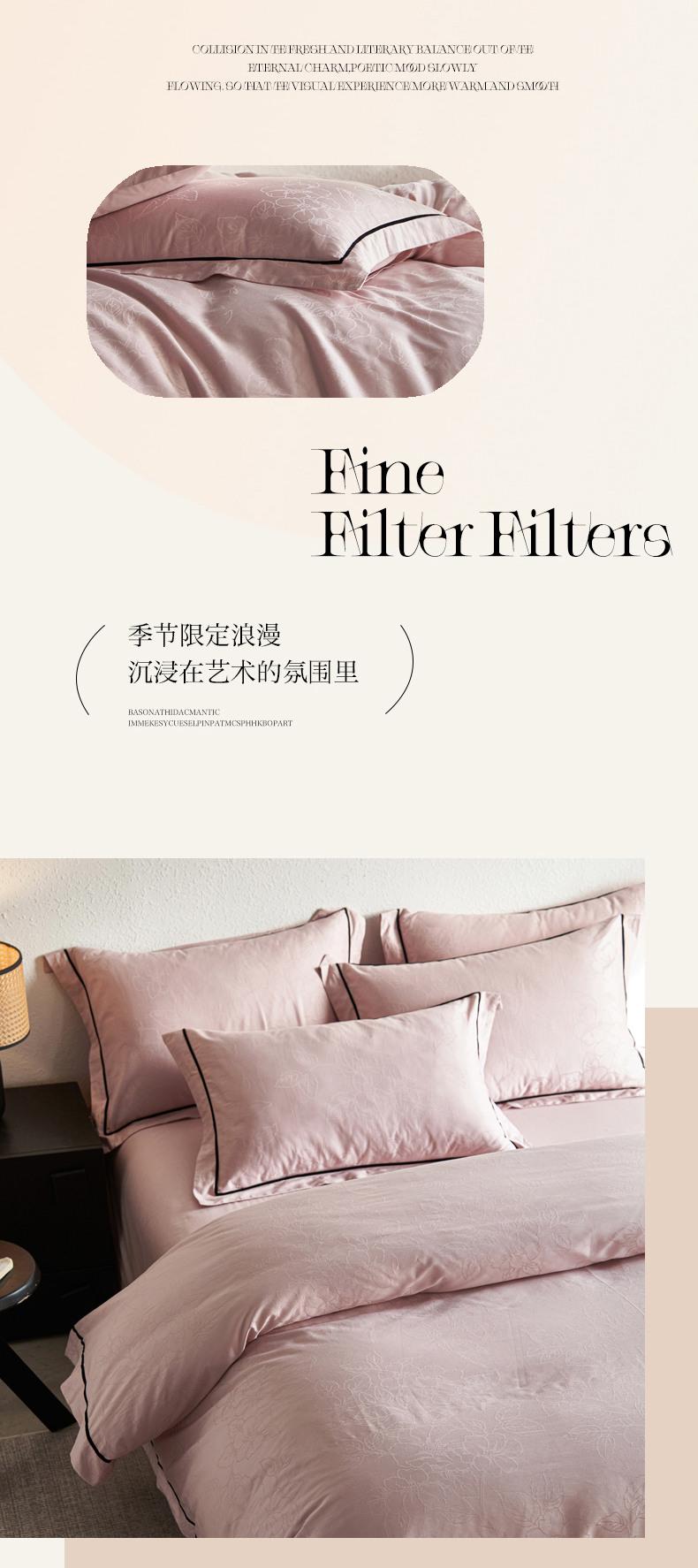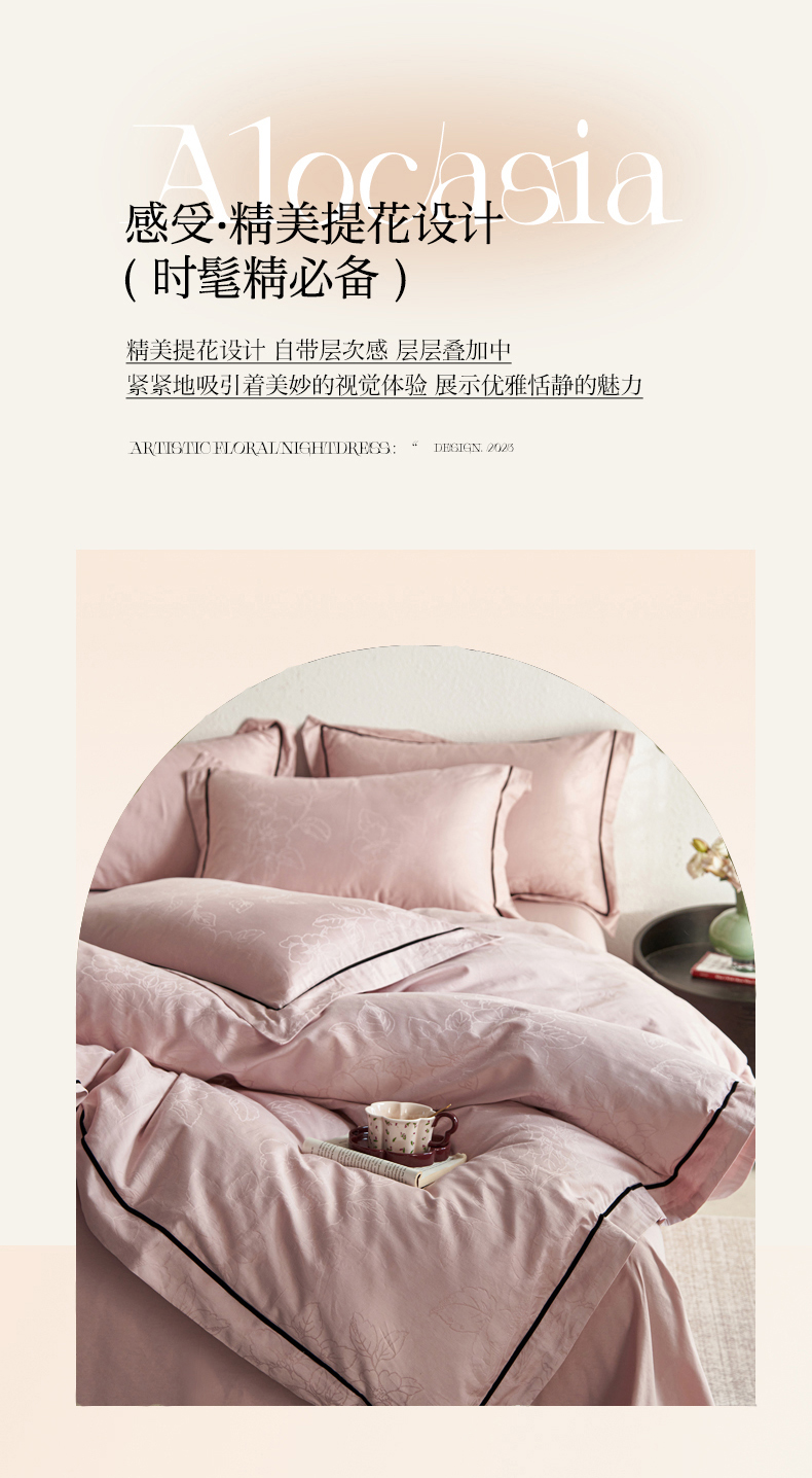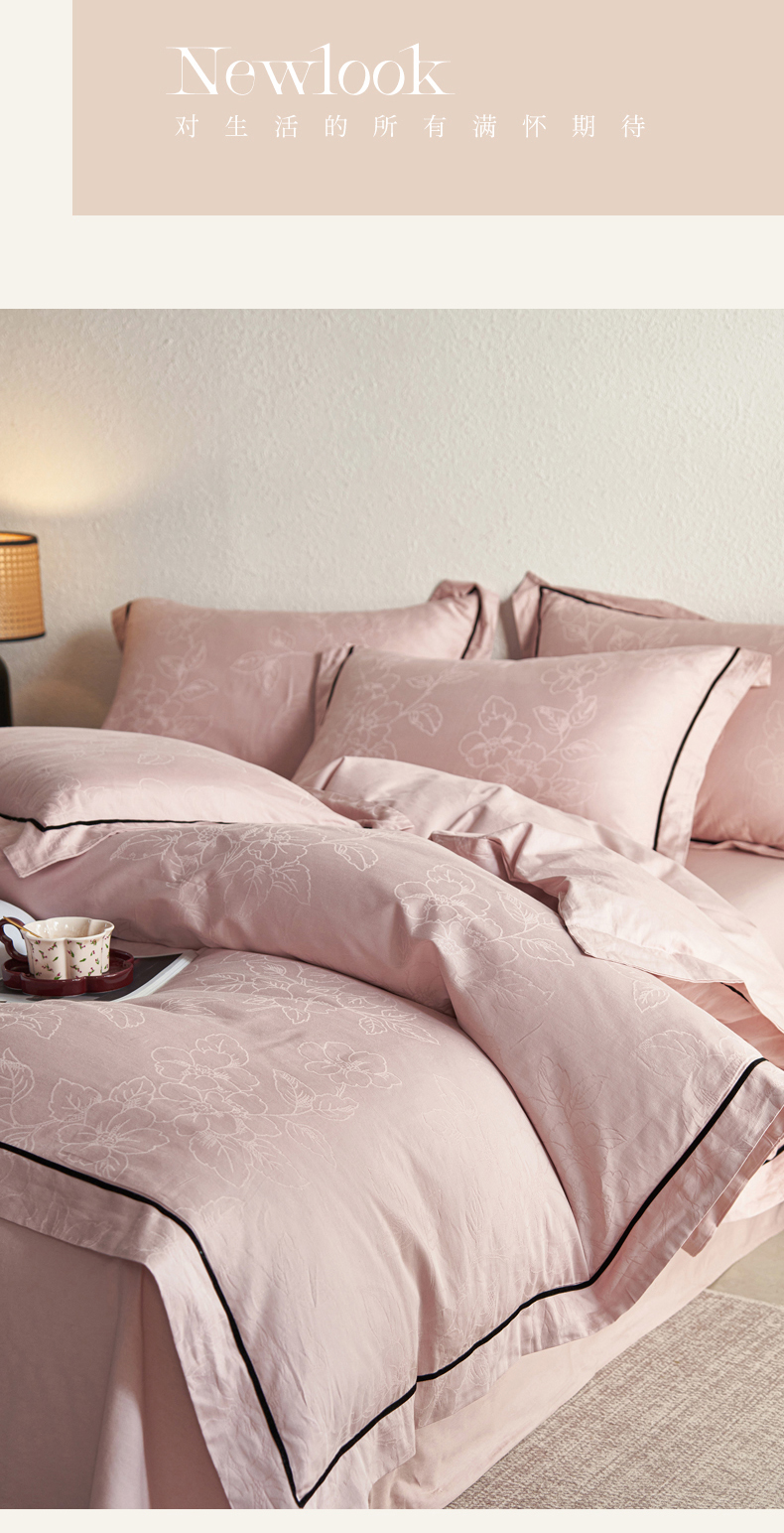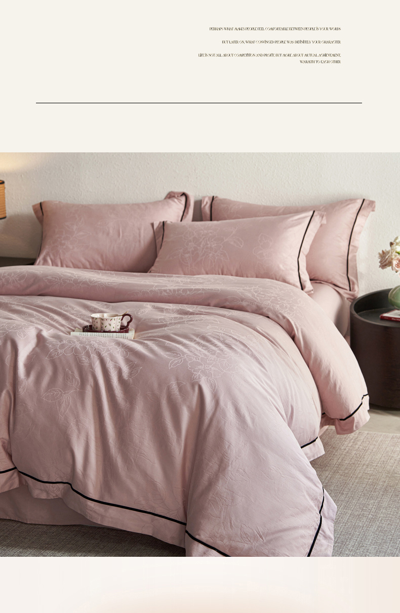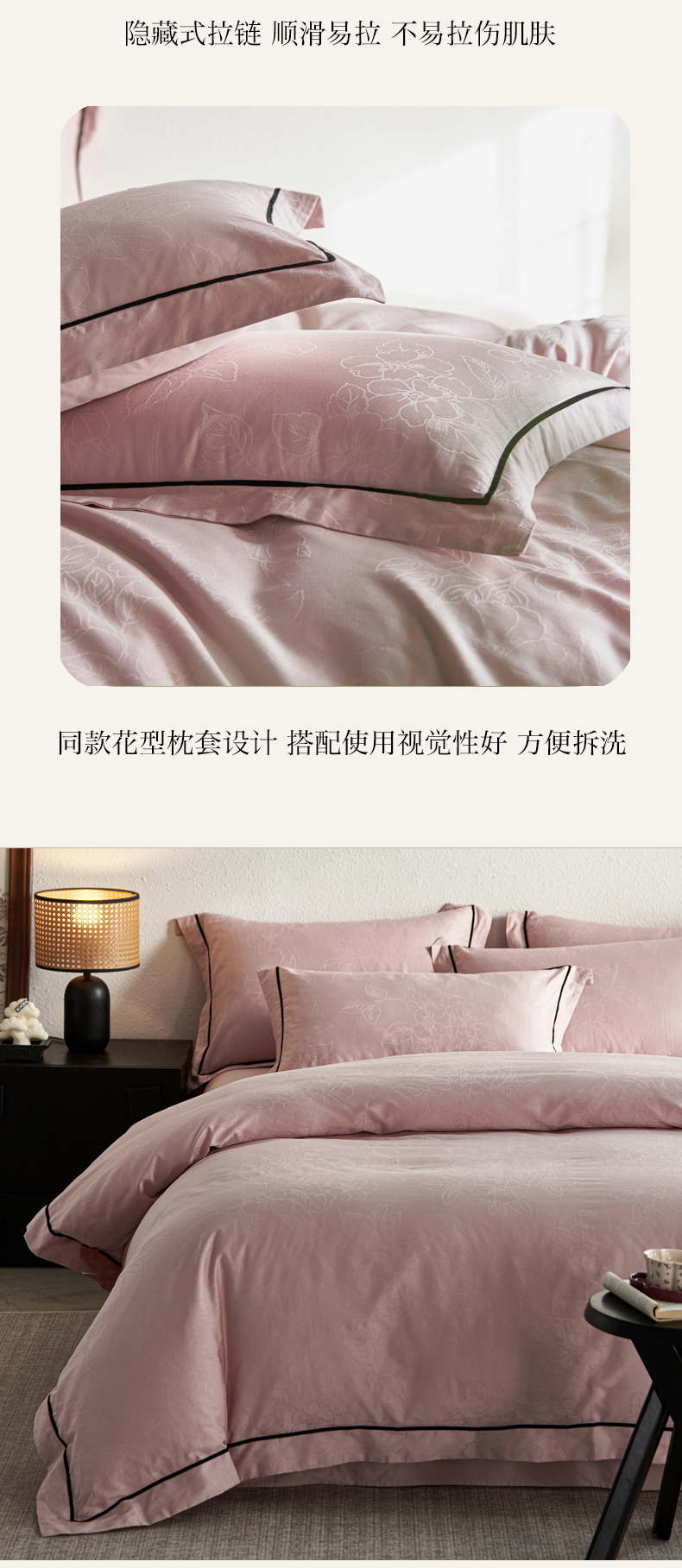 三朵全棉60S贡缎长绒棉大提花四件套-花序系列 花相随-豆沙