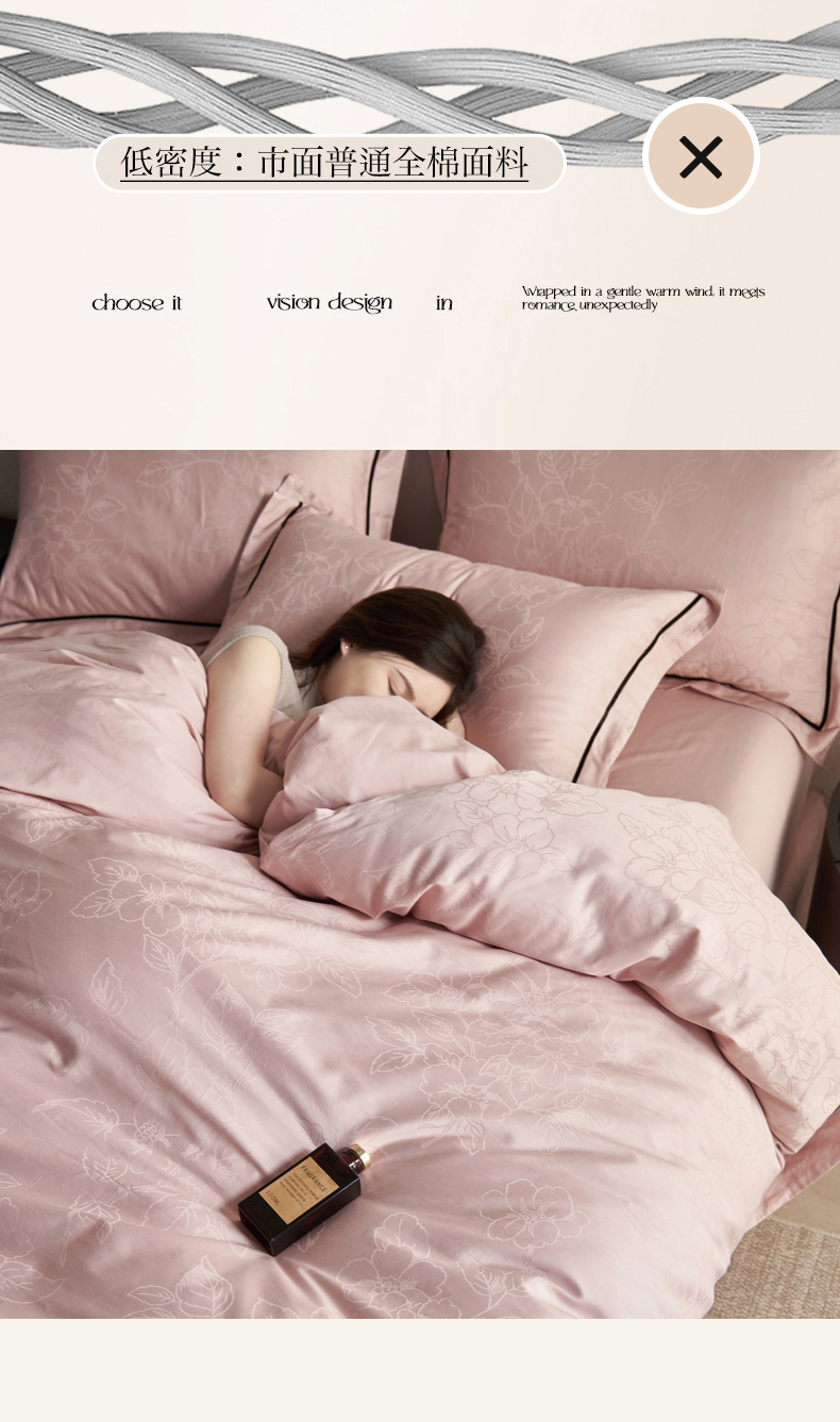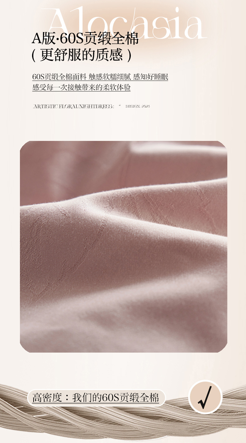 商品名称:三朵全棉60S贡缎长绒棉大提花四件套-花序系列 花相随-豆沙