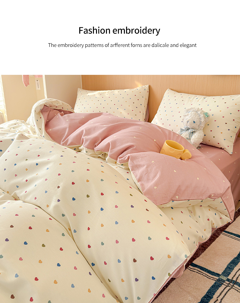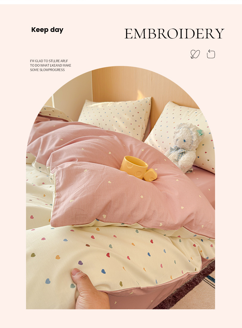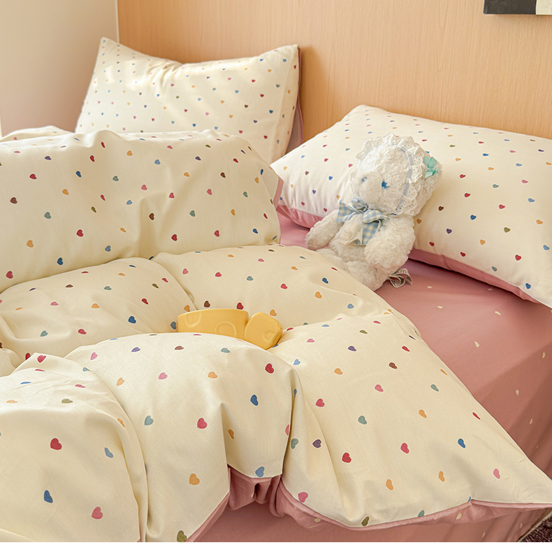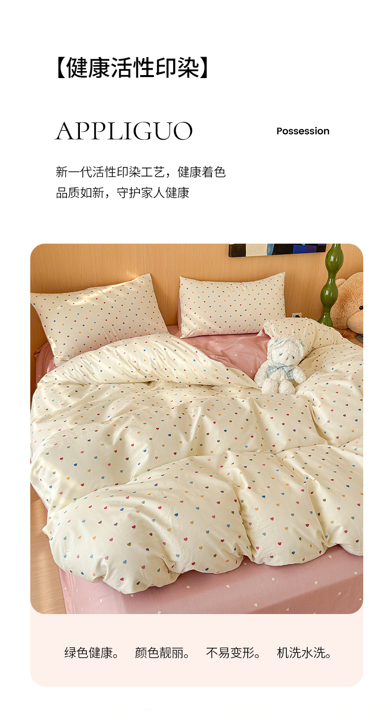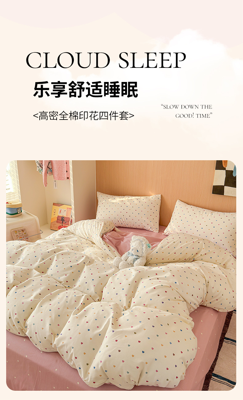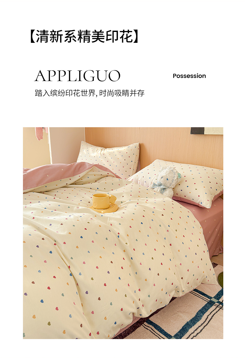 (总)感遇家纺 2025新款小清新甜系全棉四件套,百丽兔,波点小女孩,点点小狗,复古樱桃,格子草莓,格子樱桃,花间牧歌,灰条猫咪,奶绿,宁夏,森林小熊猫,甜心波点