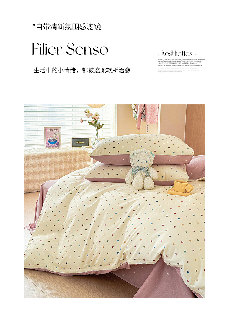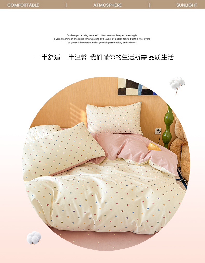 (总)感遇家纺2025新款全棉双层纱纤柔四件套,格子爱心蓝,花开半夏,滑板小狗,七彩虹,少女甜心,晚香玉,小美好,心心相印,樱桃,叠拍图仅供参考