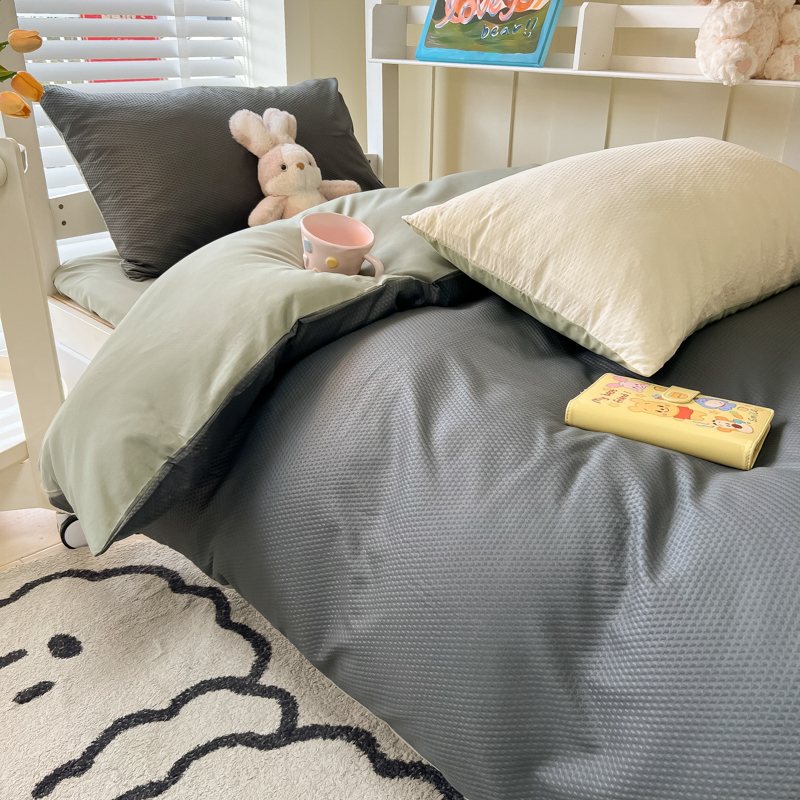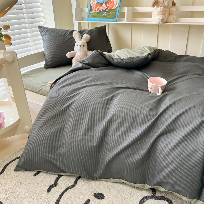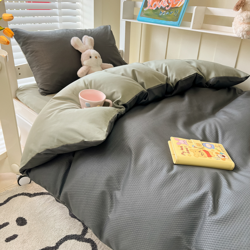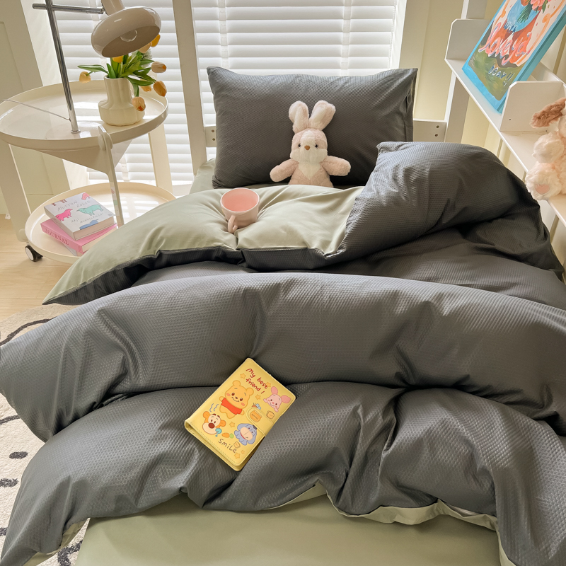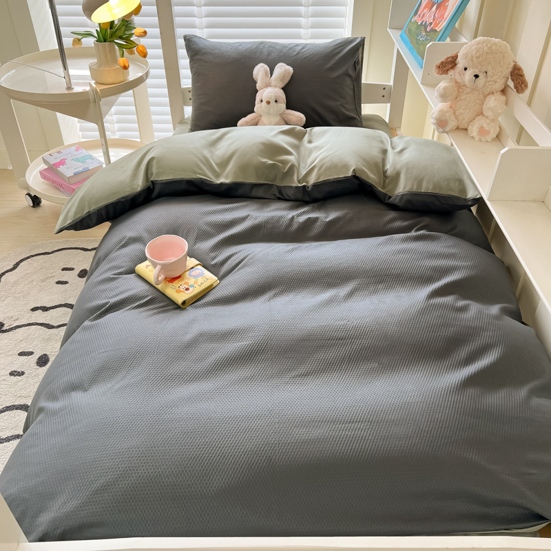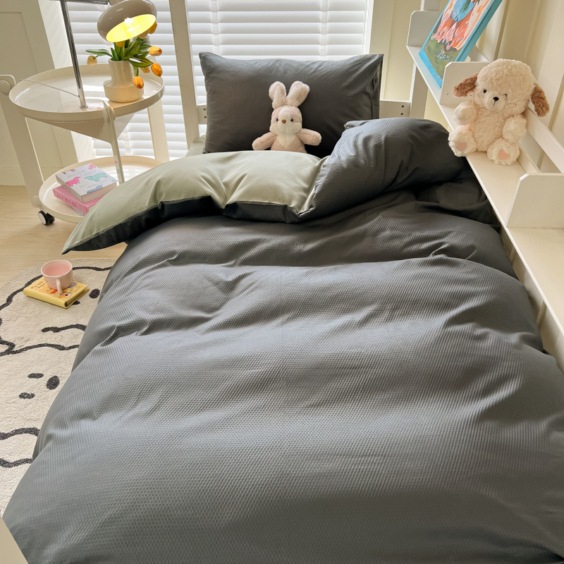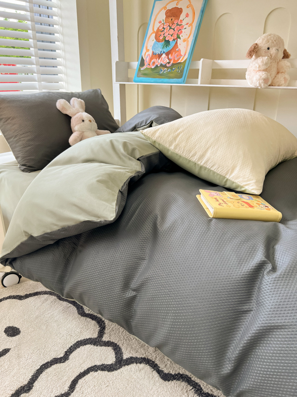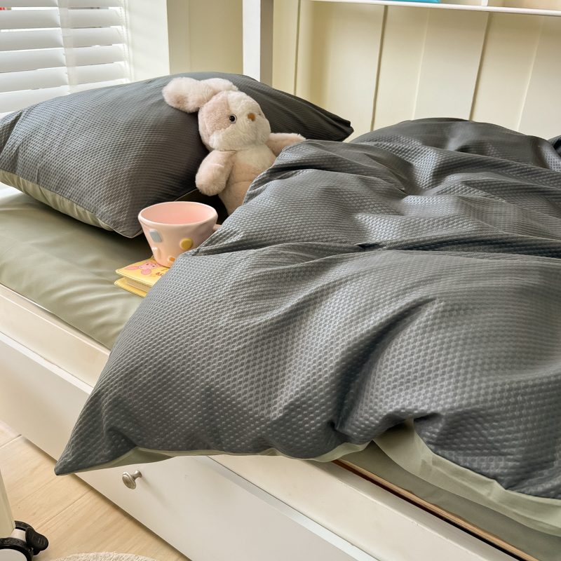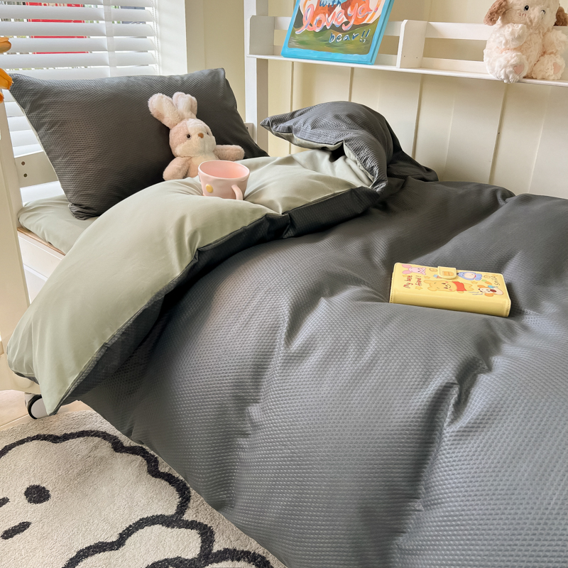 当前位置: 91家纺网 > 商品网购 > 床品套件 > 四件套 > 水洗棉四件套 > 悦织湾家纺 2025新款华夫格压泡亲肤学生宿舍三件套单人床轻奢时尚四件套 华夫格压泡-深灰+抹茶