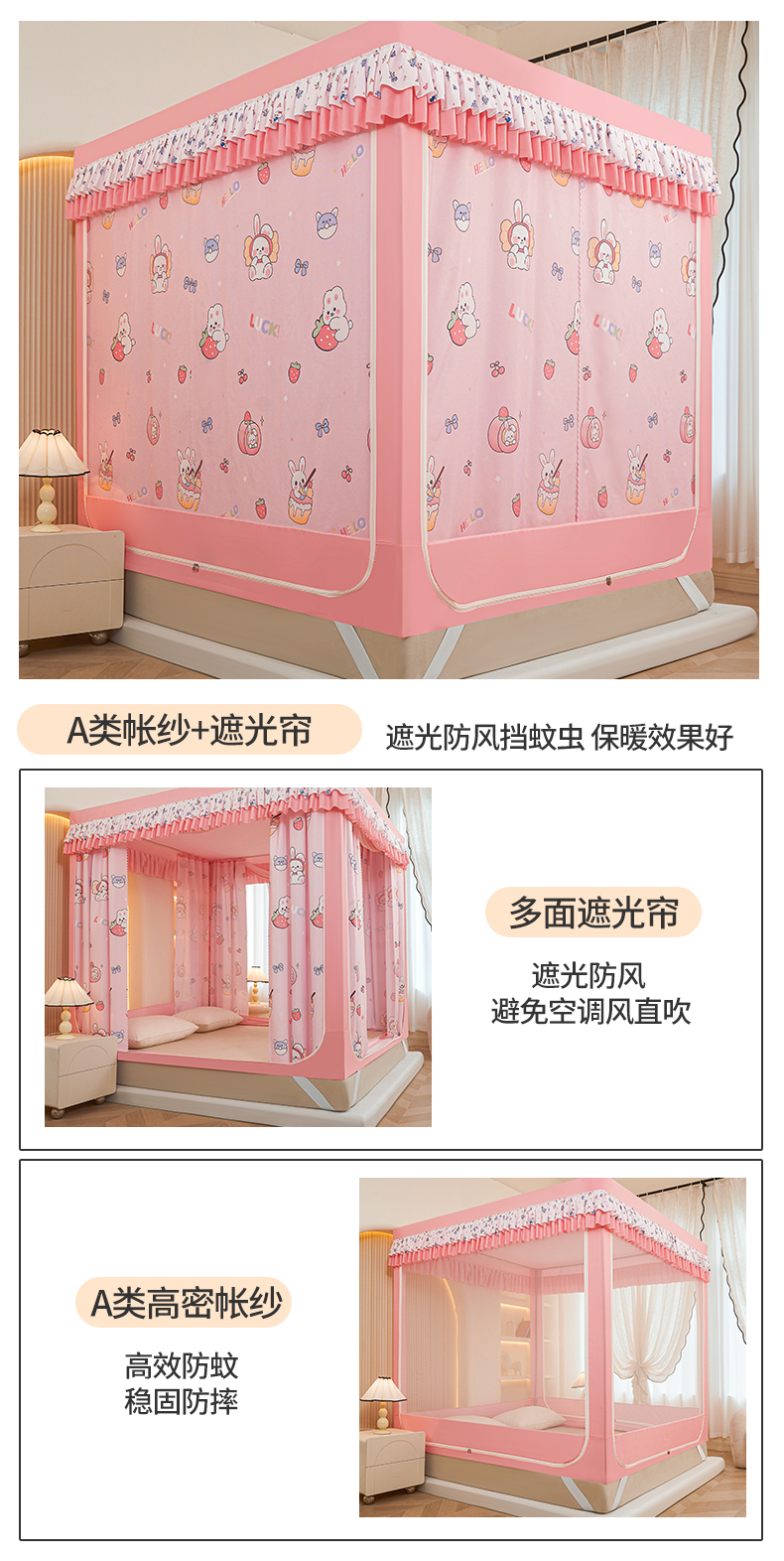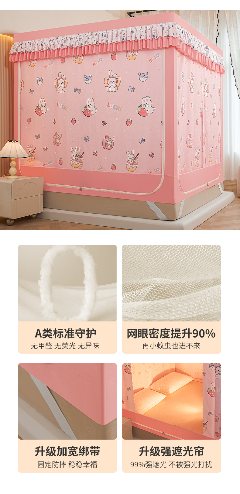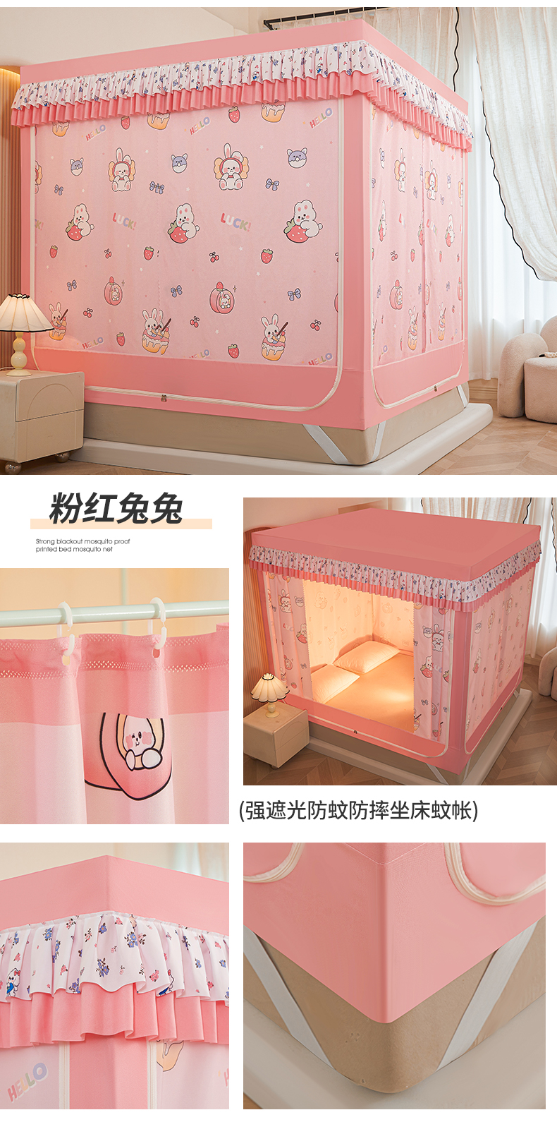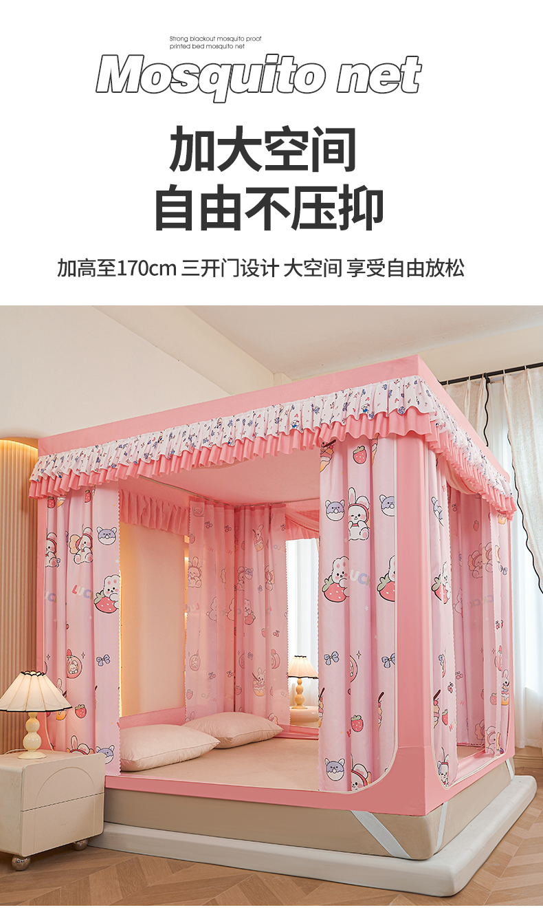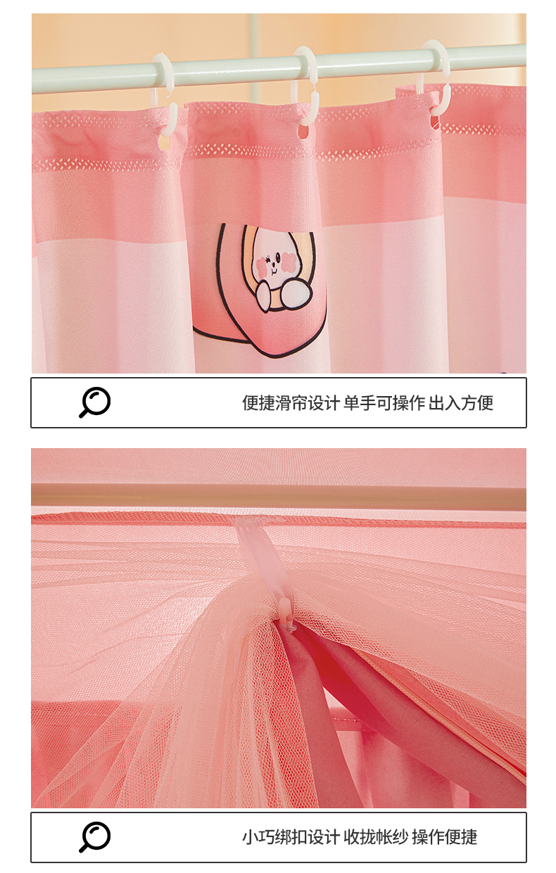 当前位置: 91家纺网 > 商品网购 > 床上用品 > 蚊帐 > 坐床式蚊帐 > 迪凡保罗蚊帐 2025新款2503专版印花遮光帘防摔坐床蚊帐实拍图 粉红兔兔