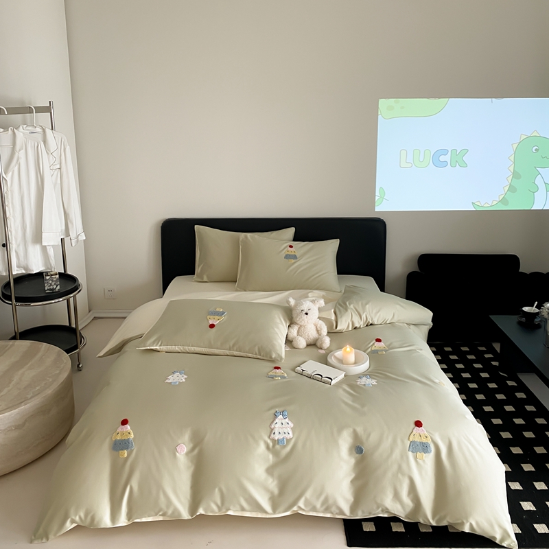 商品名称:初拾 2025新款100s澳棉刺绣四件套—圣黛(棉) 棉圣黛-果绿