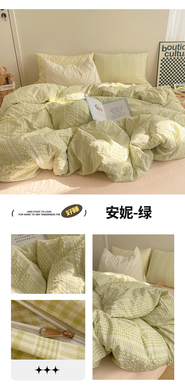当前位置: 91家纺网 > 商品网购 > 床品套件 > 四件套 > 色织四件套 > 轻奢坊 2025新款色织提花复古格子四件套 安妮-绿