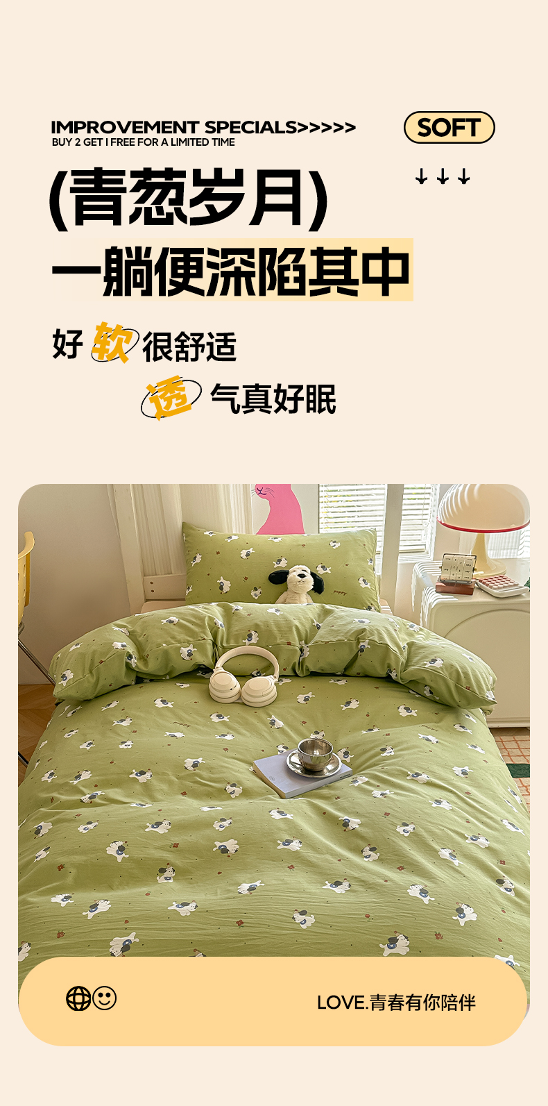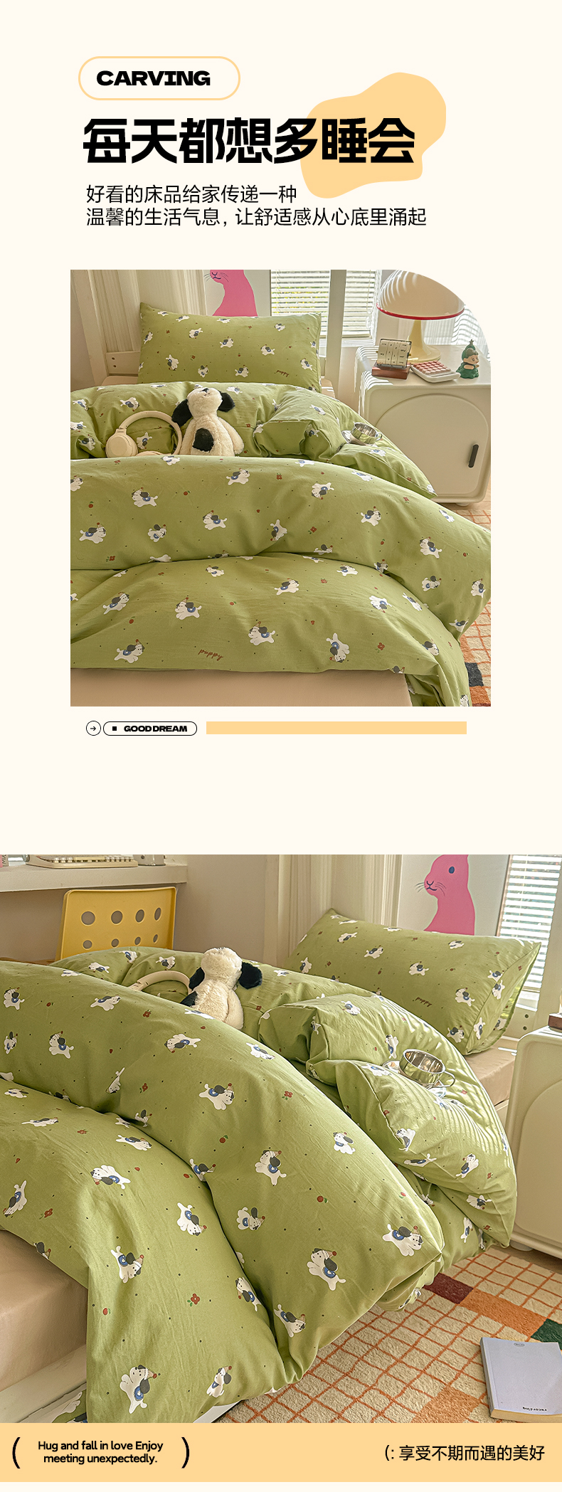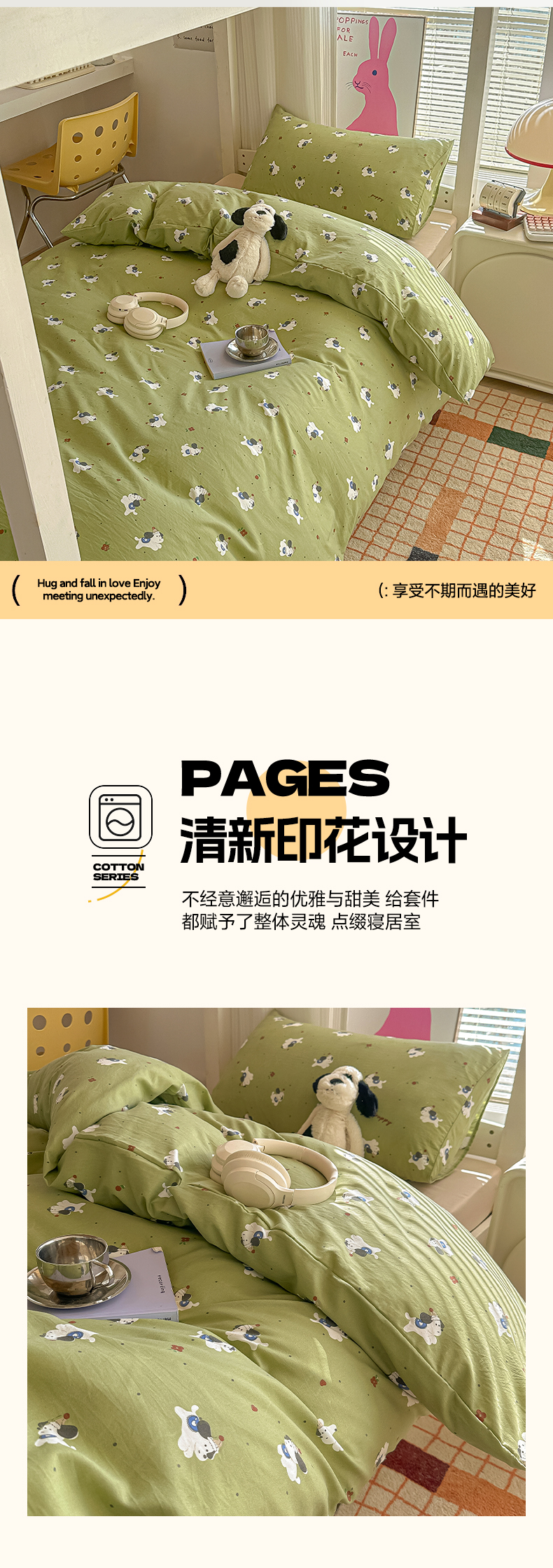 当前位置: 91家纺网 > 商品网购 > 床品套件 > 四件套 > 其它四件套 > 韩巢家纺 2025新款超柔水洗棉学生宿舍寝室被套床单三件套 一只绿狗
