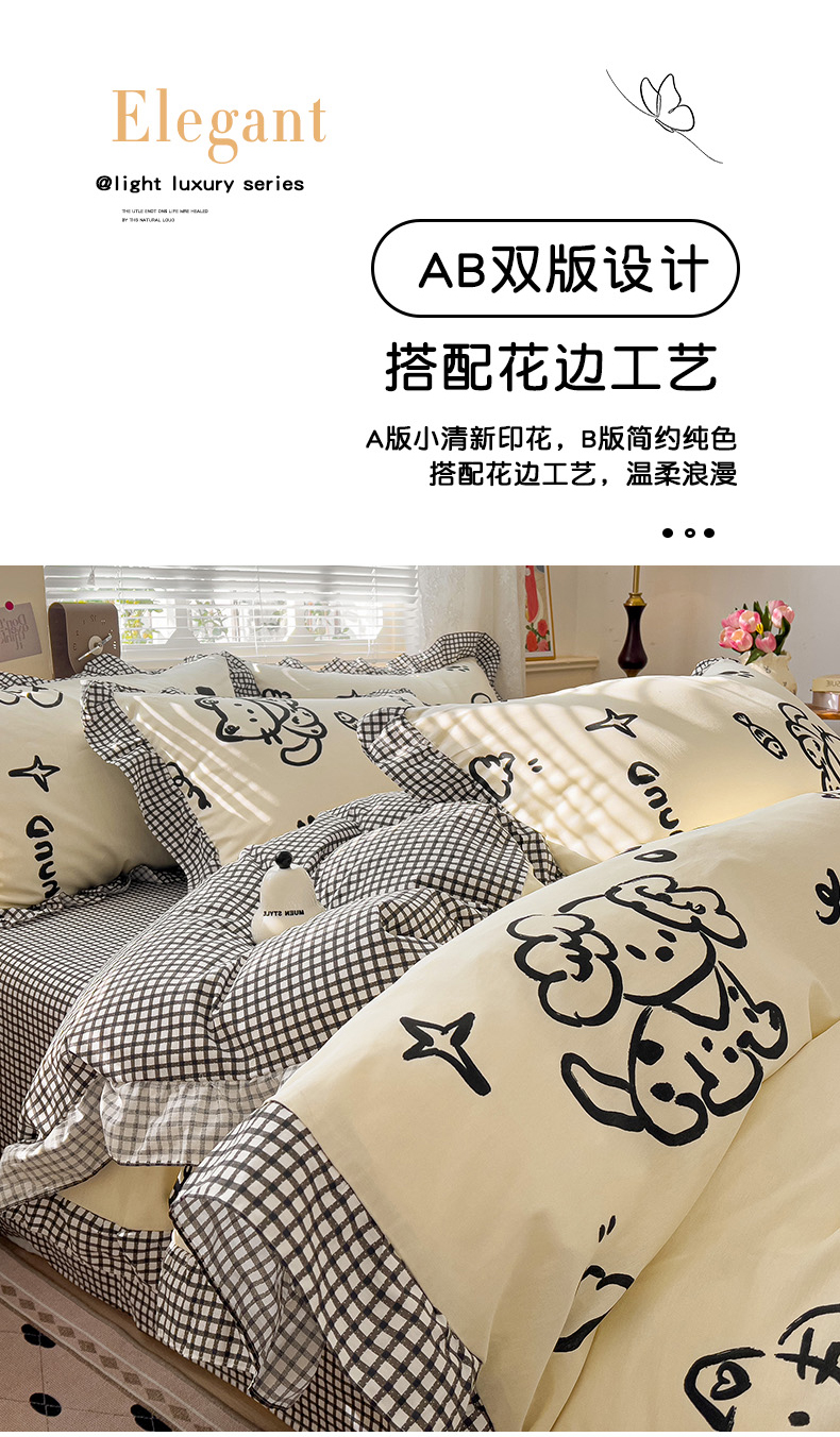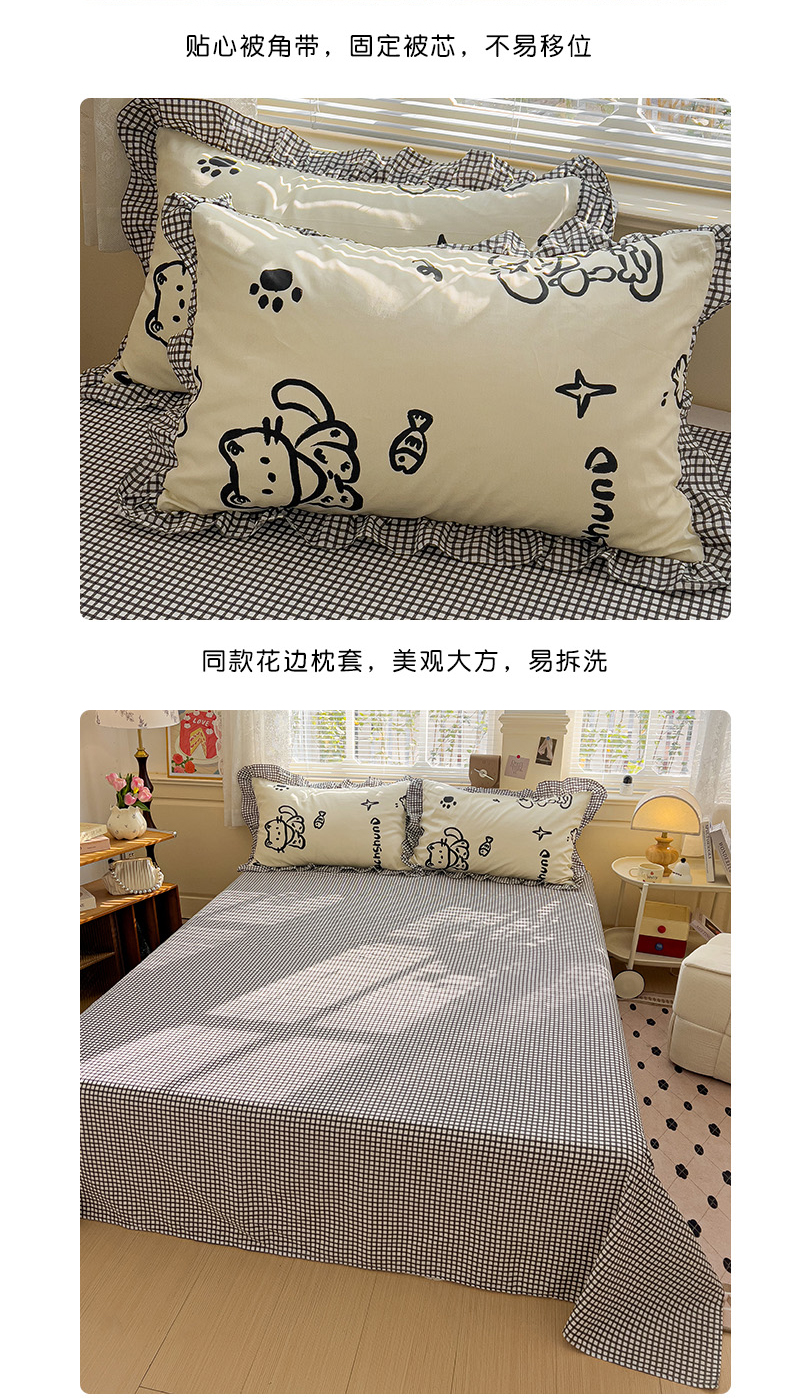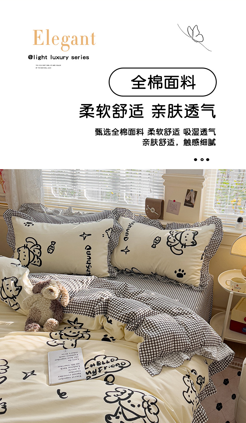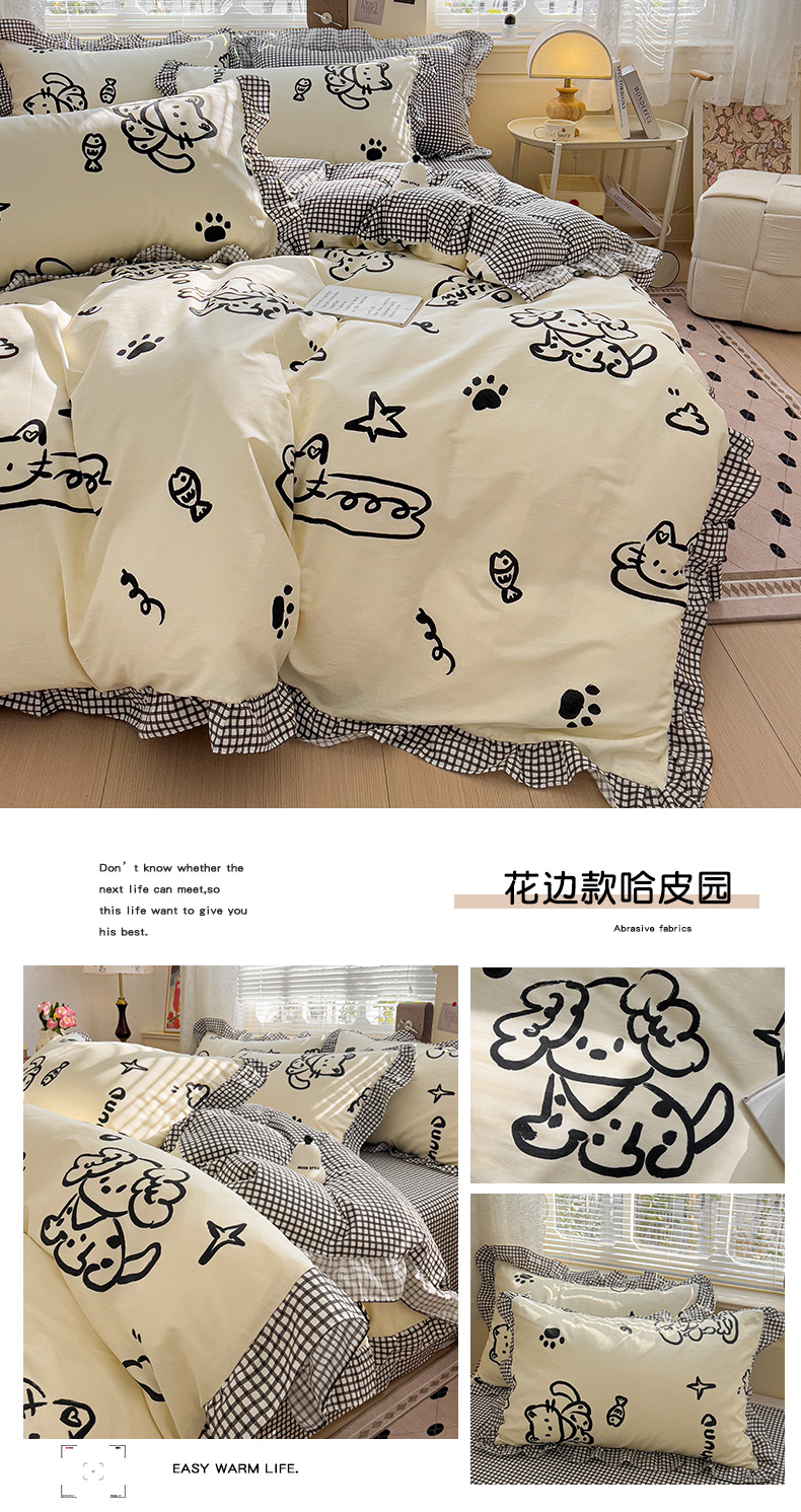 当前位置: 91家纺网 > 商品网购 > 床品套件 > 四件套 > 全棉普通四件套 > 忆生活家纺 2025新款韩版全棉花边四件套 花边款哈皮园