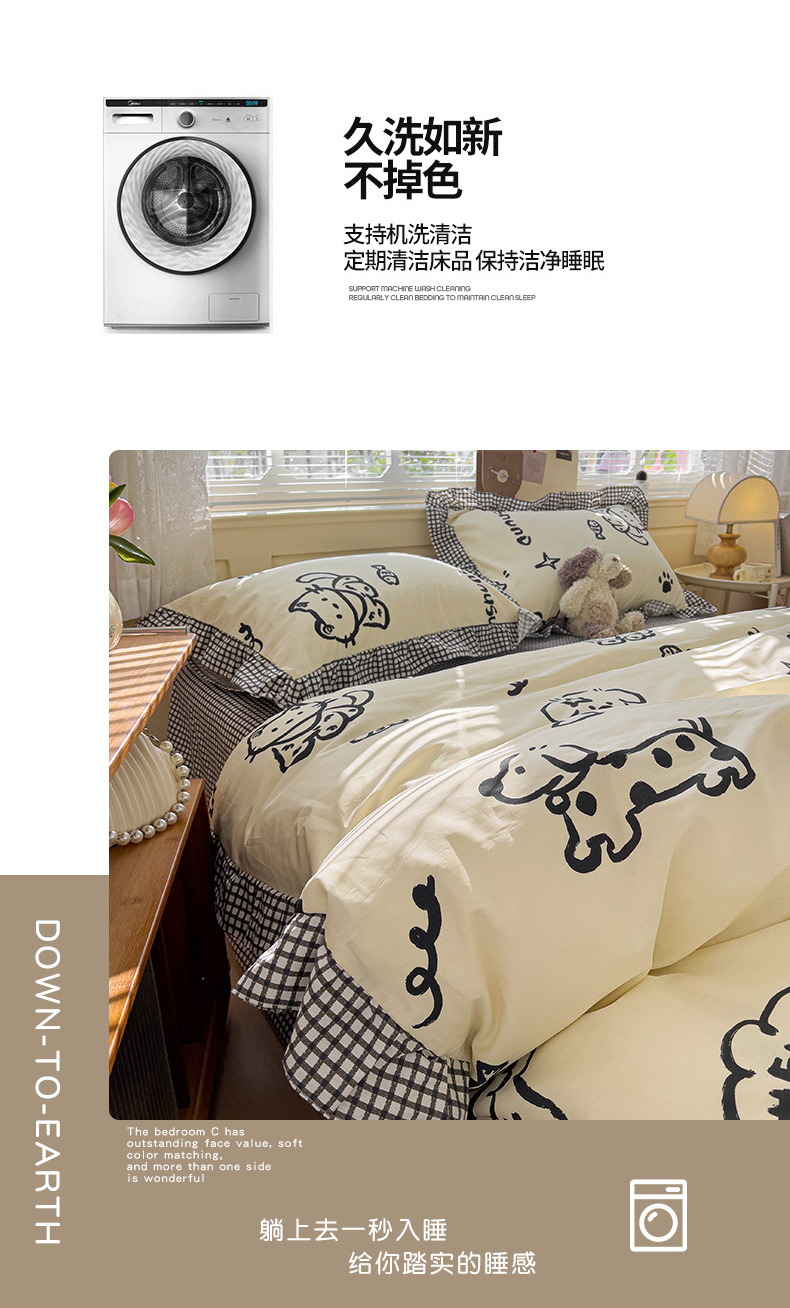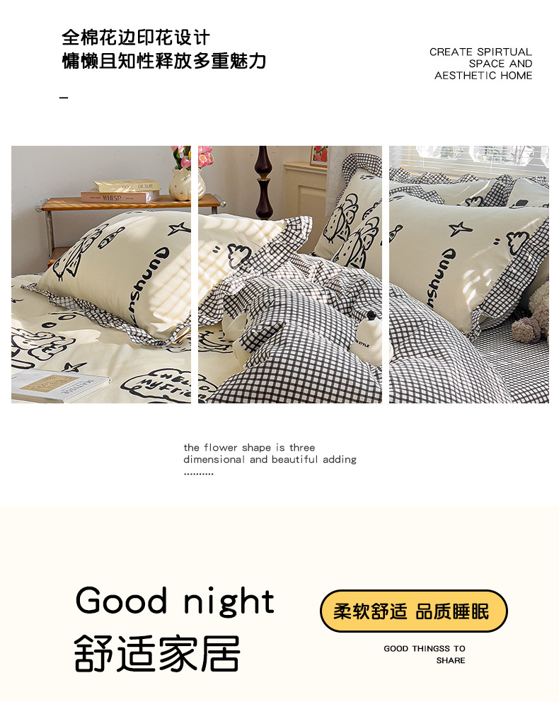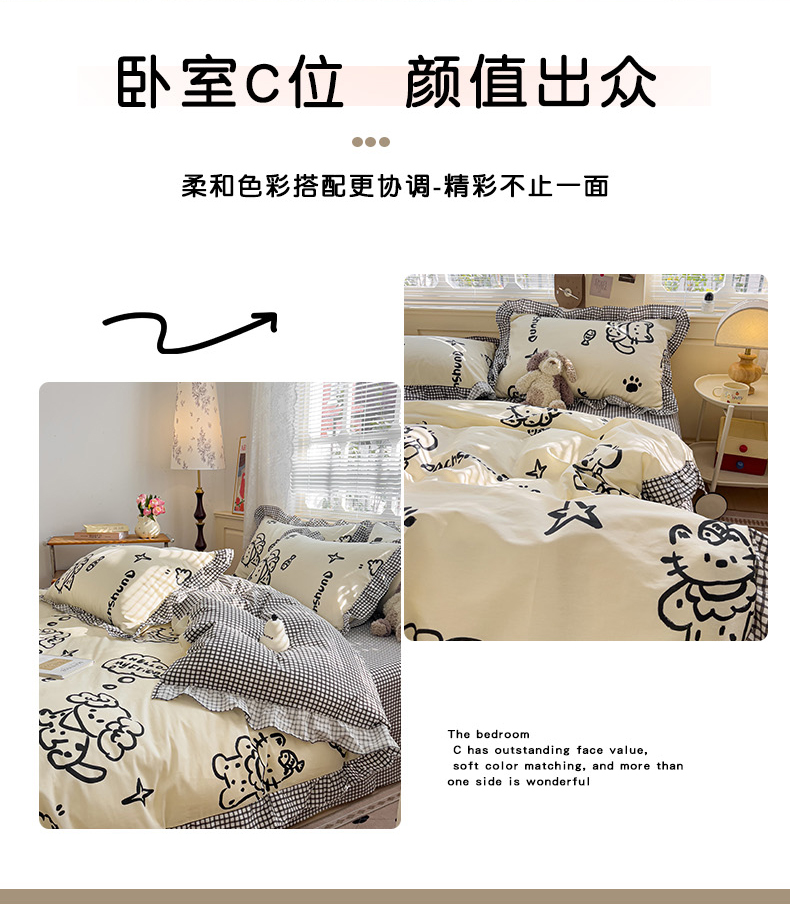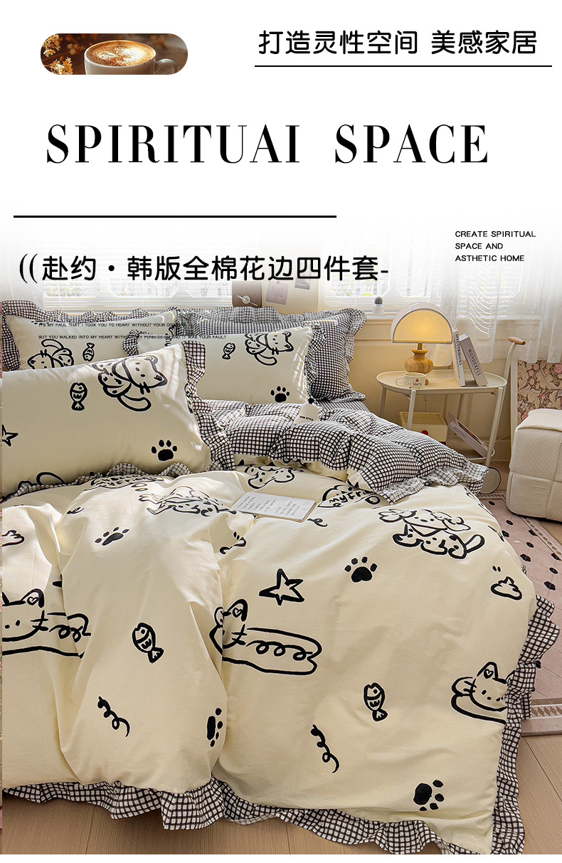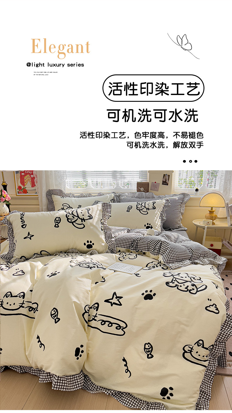 当前位置: 91家纺网 > 商品网购 > 床品套件 > 四件套 > 全棉普通四件套 > 忆生活家纺 2025新款韩版全棉花边四件套 花边款哈皮园