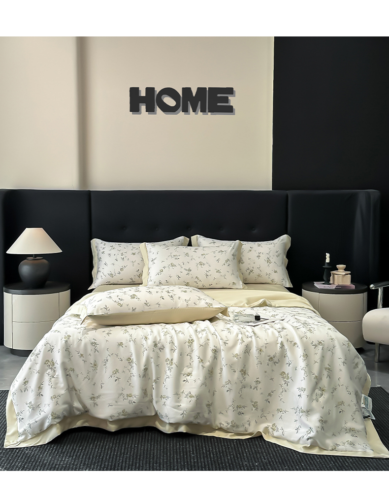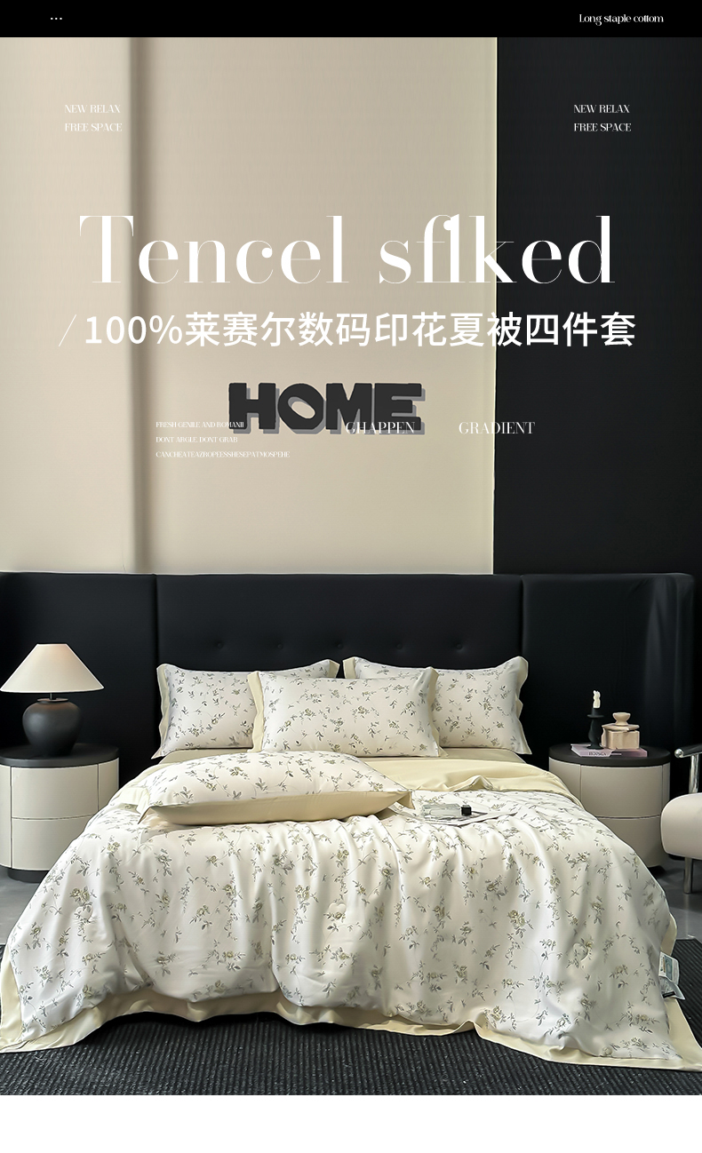 迷尚家居 2025新款夏被100%莱赛尔数码印花夏被四件套50支天丝夏被 云栀