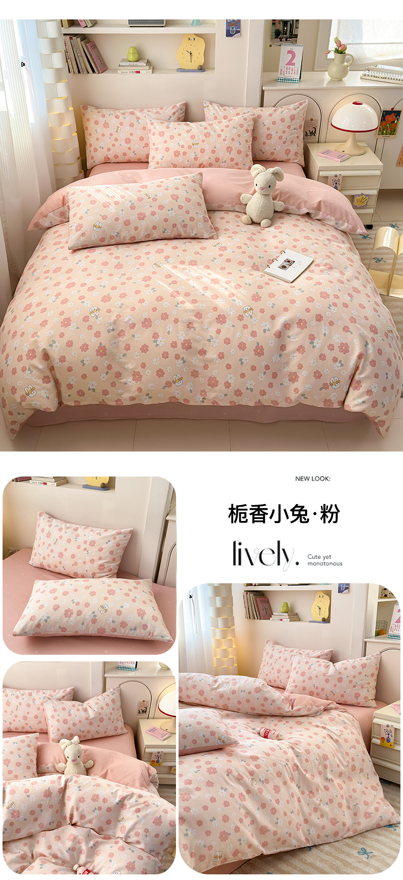 商品名称:清雅福 2025新款13070全棉小清新单被套 栀香小兔·粉