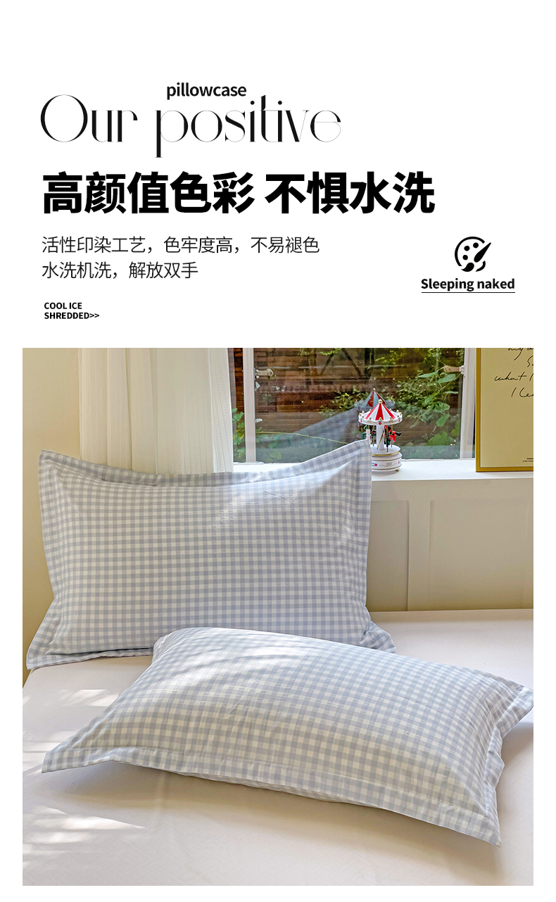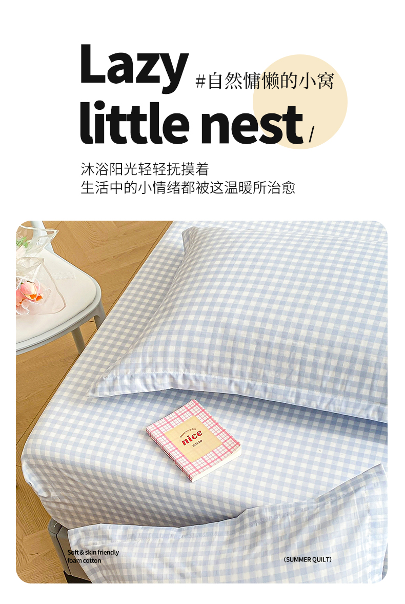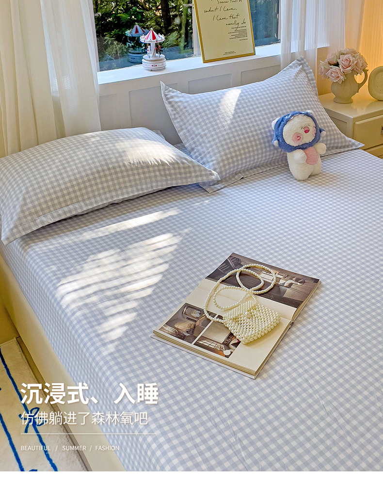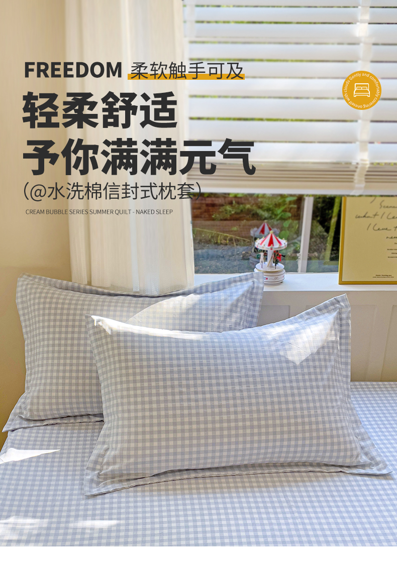 恬澳家纺 2025新款水洗棉森系枕套 森系-蓝格