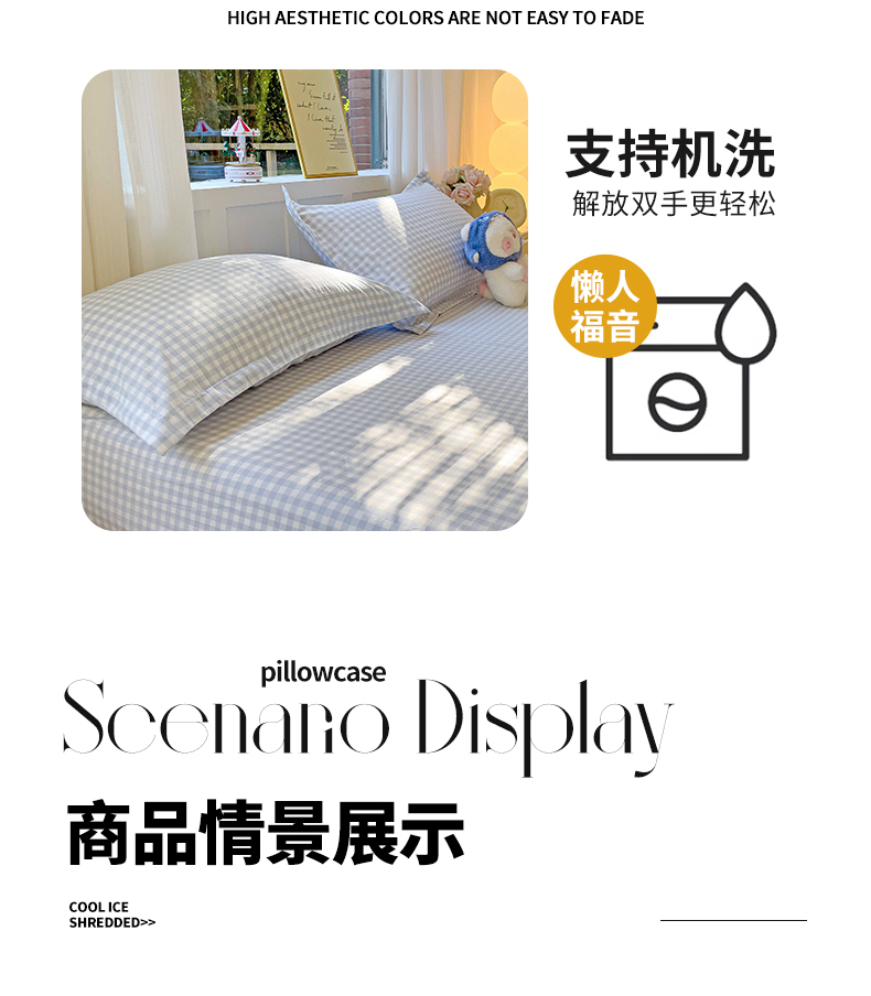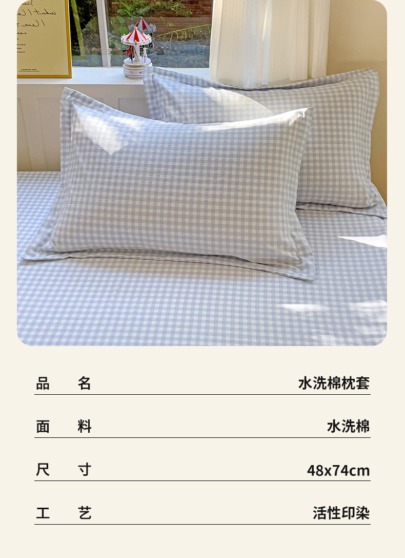 商品名称:恬澳家纺 2025新款水洗棉森系枕套 森系-蓝格