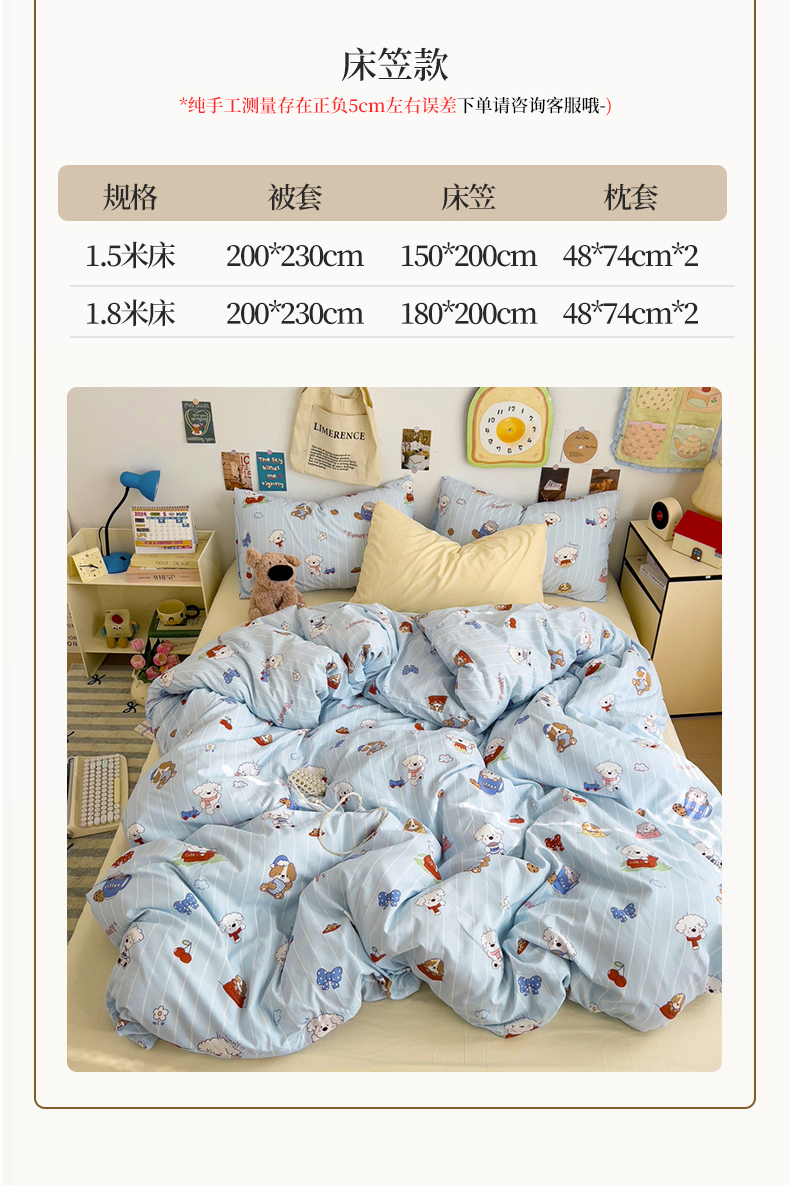 1.5m床笠款四件套(被套200*230cm) | ¥55.00 |