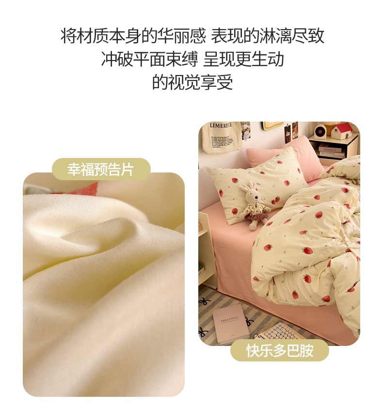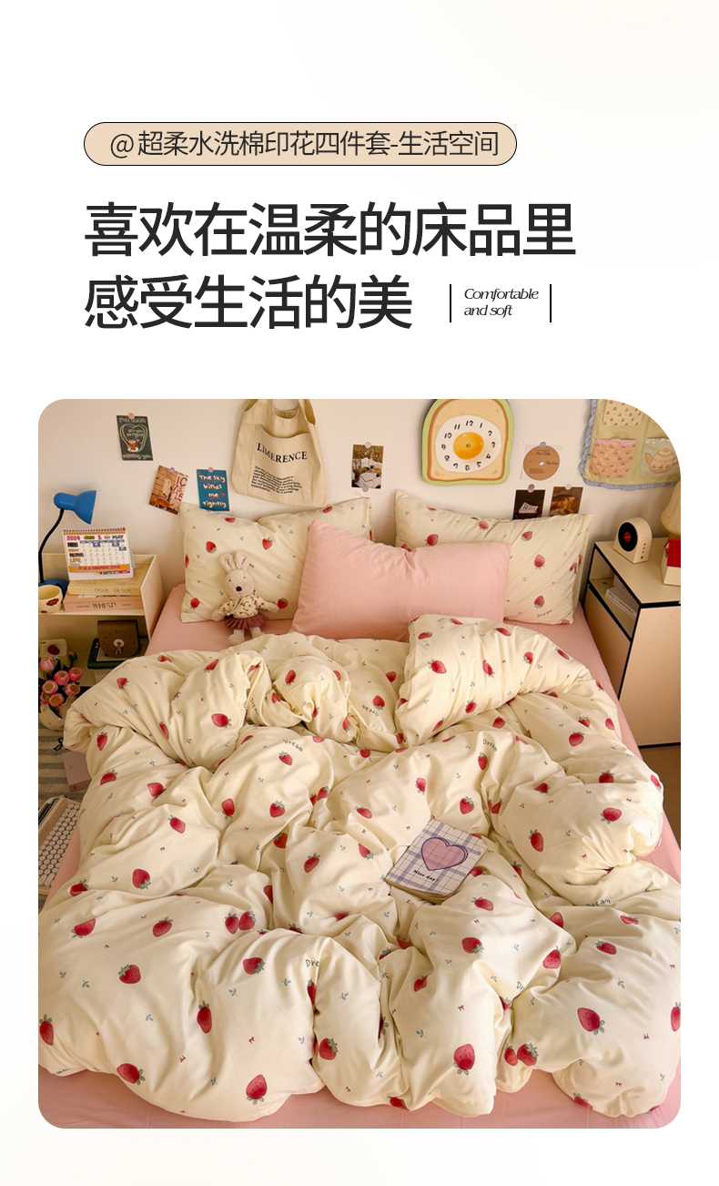 当前位置: 91家纺网 > 商品网购 > 床品套件 > 四件套 > 水洗棉四件套 > 水墨江南 2025新款超柔水洗棉系列四件套 甜心草莓