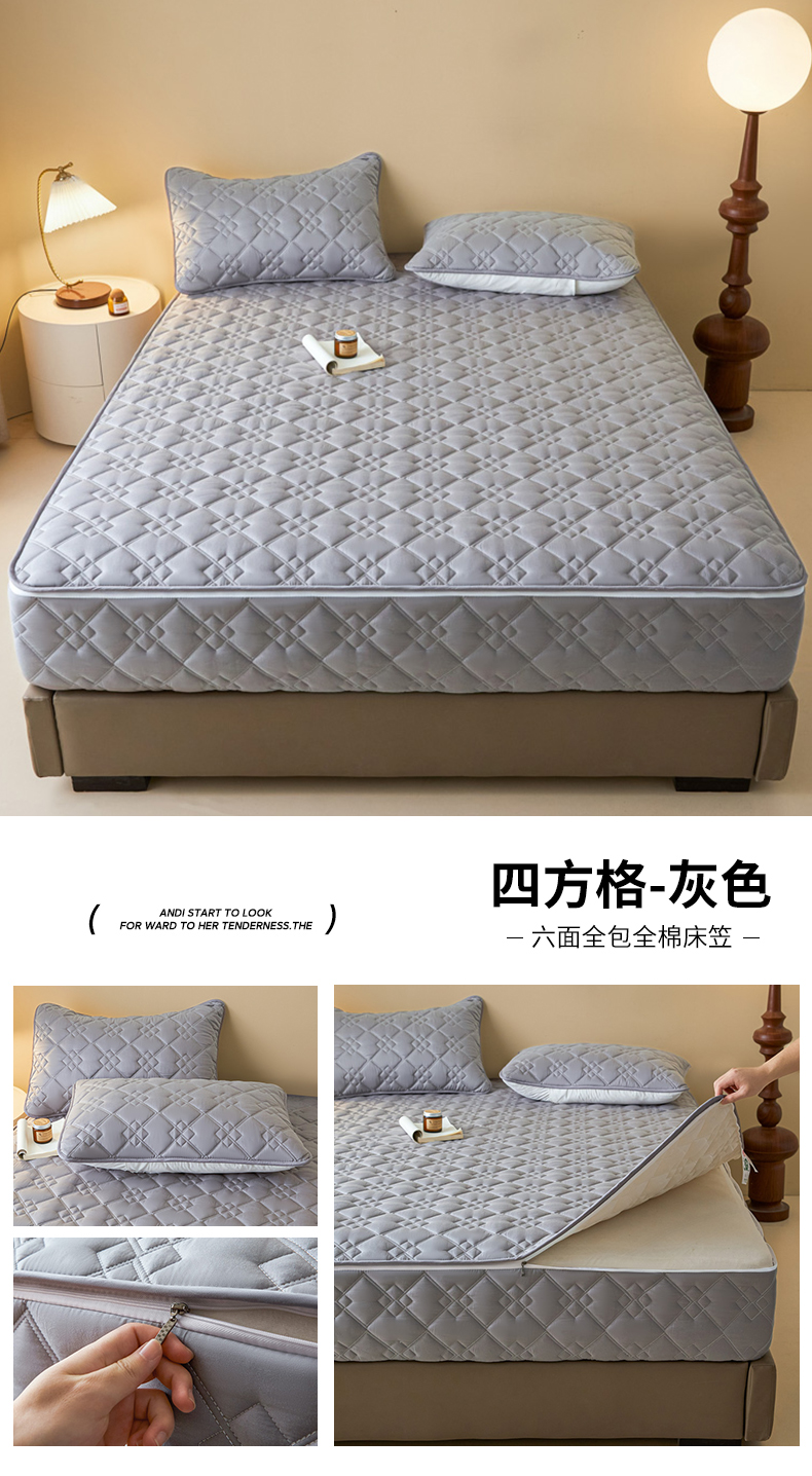 (总)鑫钰 2025新款A类纯棉夹棉床笠学生宿舍专用90x190-80x190-花漾山茶格,花漾山茶格-粉,花漾山茶格-蓝,花漾山茶格-灰