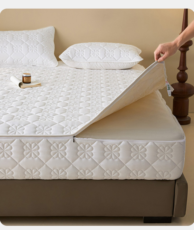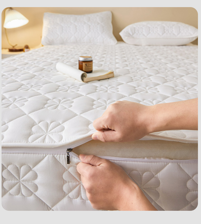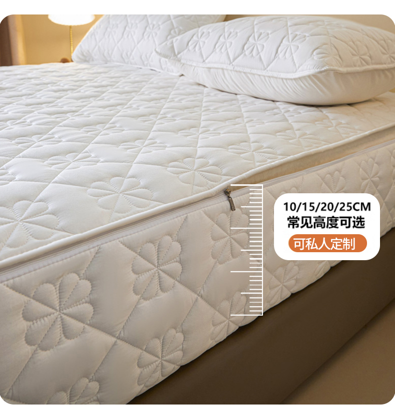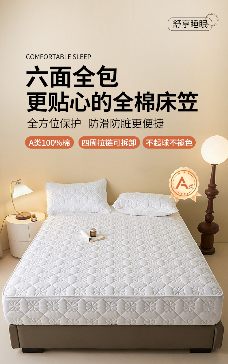 鑫钰2025新款纯棉全棉六面全包床笠 桃花-全包床笠-白色