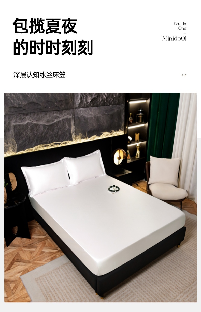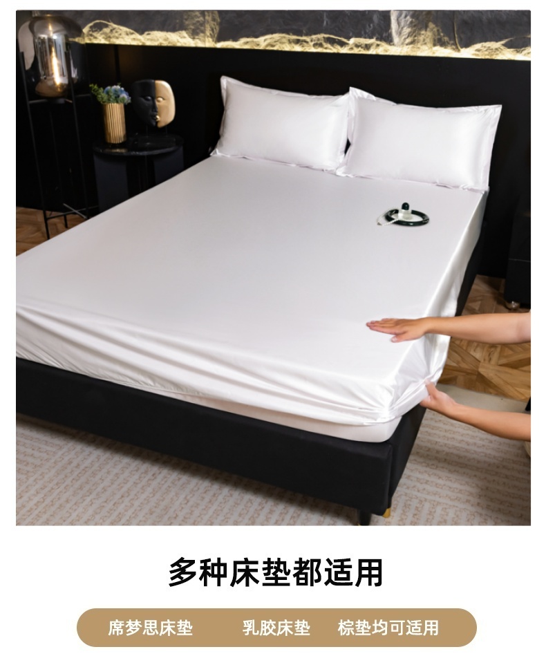 • 91家纺网 家纺一手货源 找家纺 梦舒羽2025新款防水冰丝纯色床笠凉爽柔顺床垫保护罩 防水冰丝床笠-光洁白