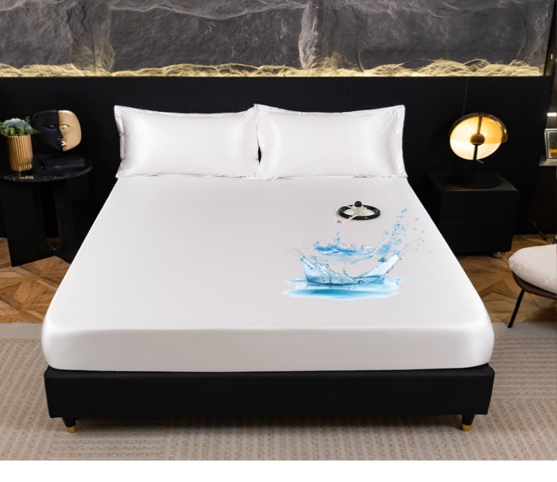 梦舒羽2025新款防水冰丝纯色床笠凉爽柔顺床垫保护罩 防水冰丝床笠-光洁白