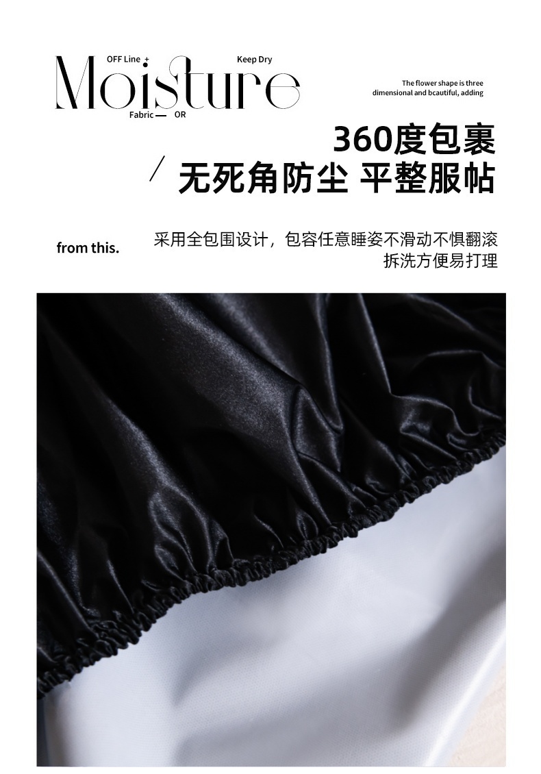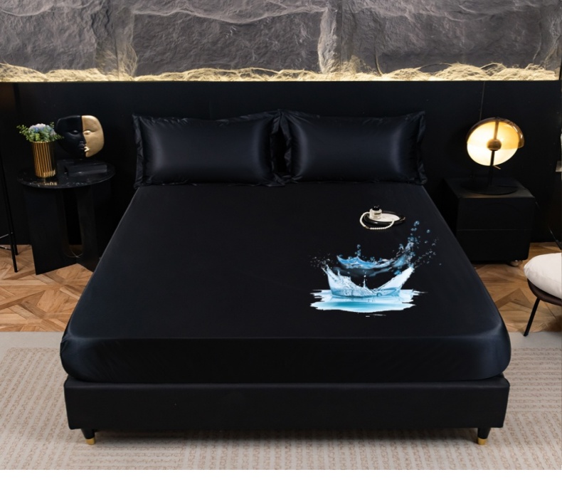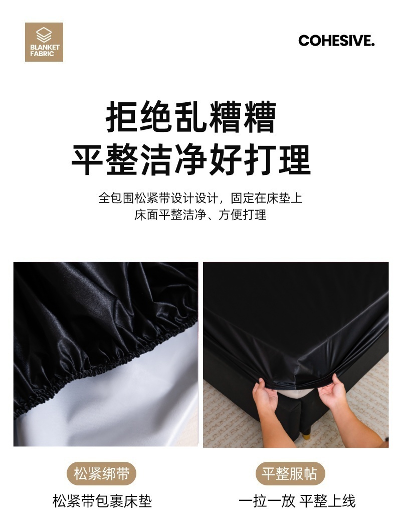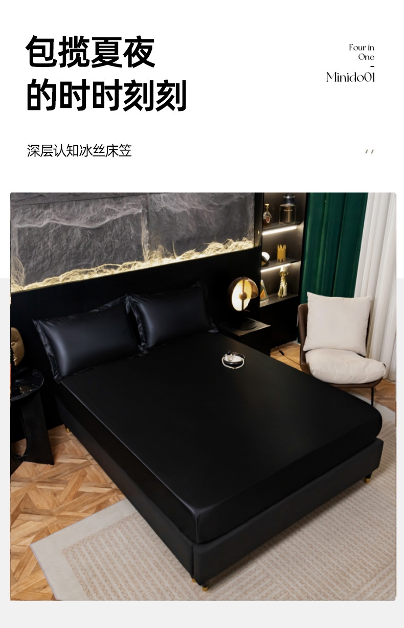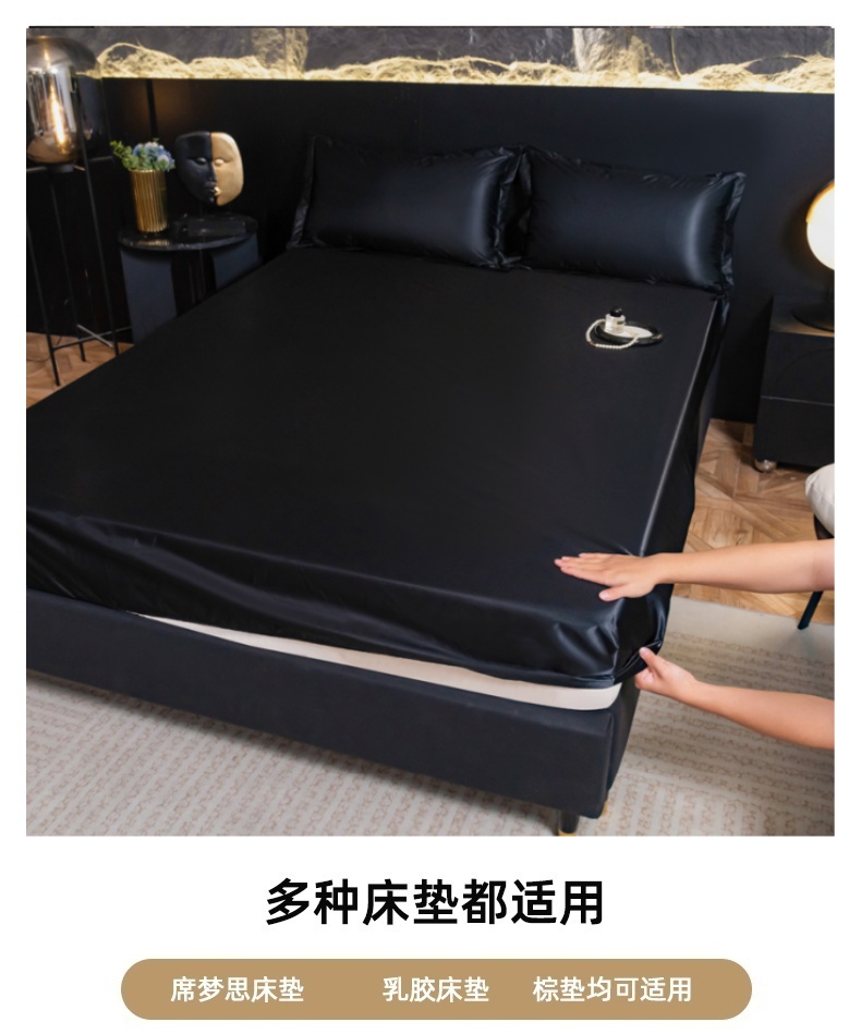 商品名称:梦舒羽2025新款防水冰丝纯色床笠凉爽柔顺床垫保护罩 防水款-尊贵黑