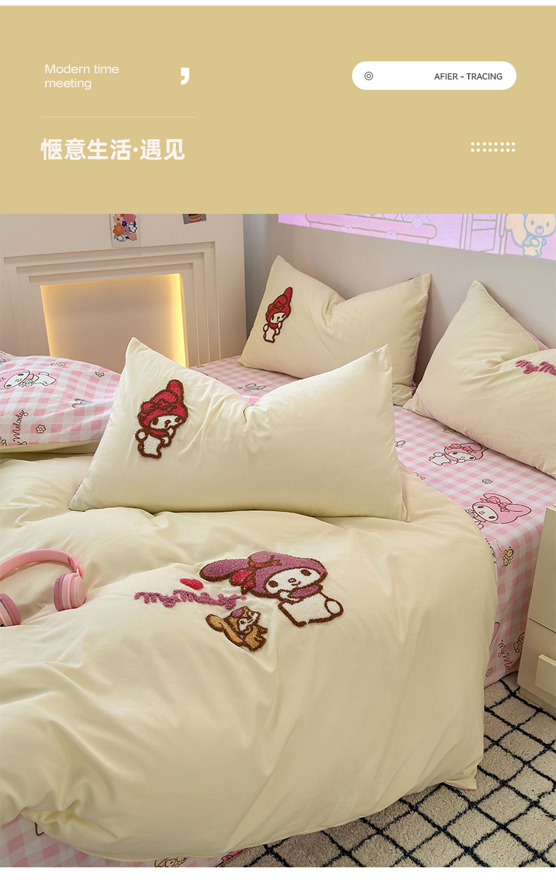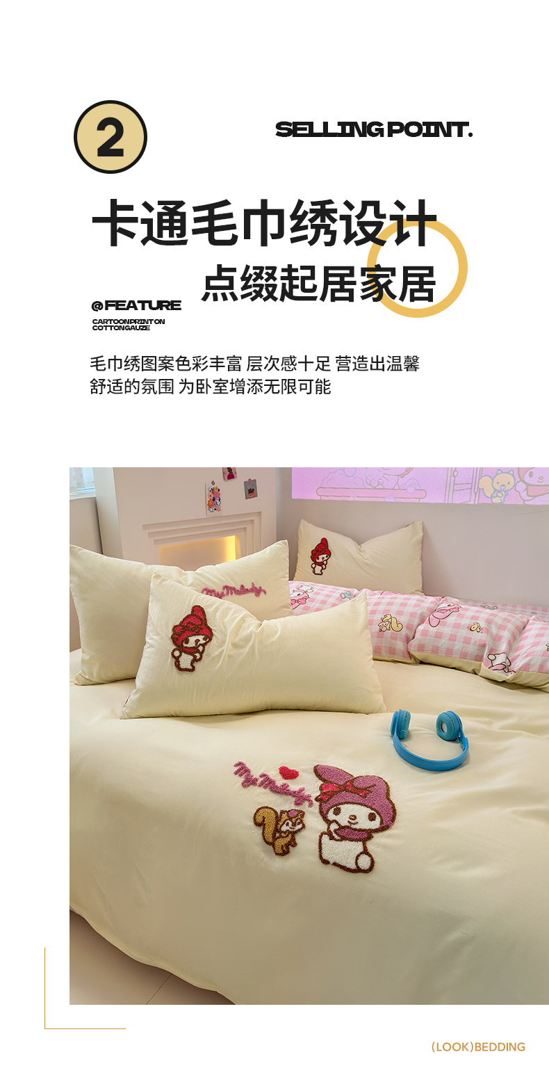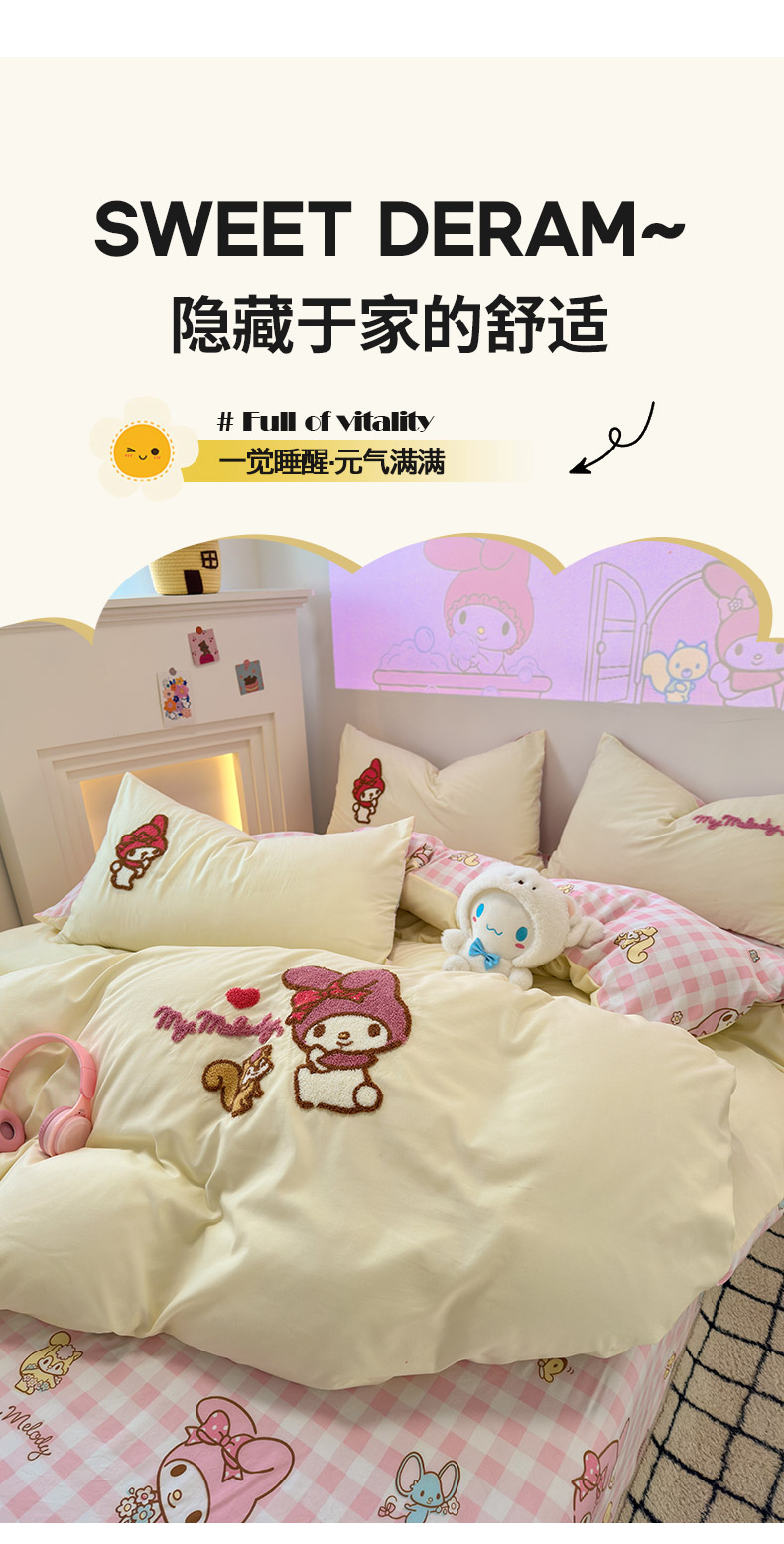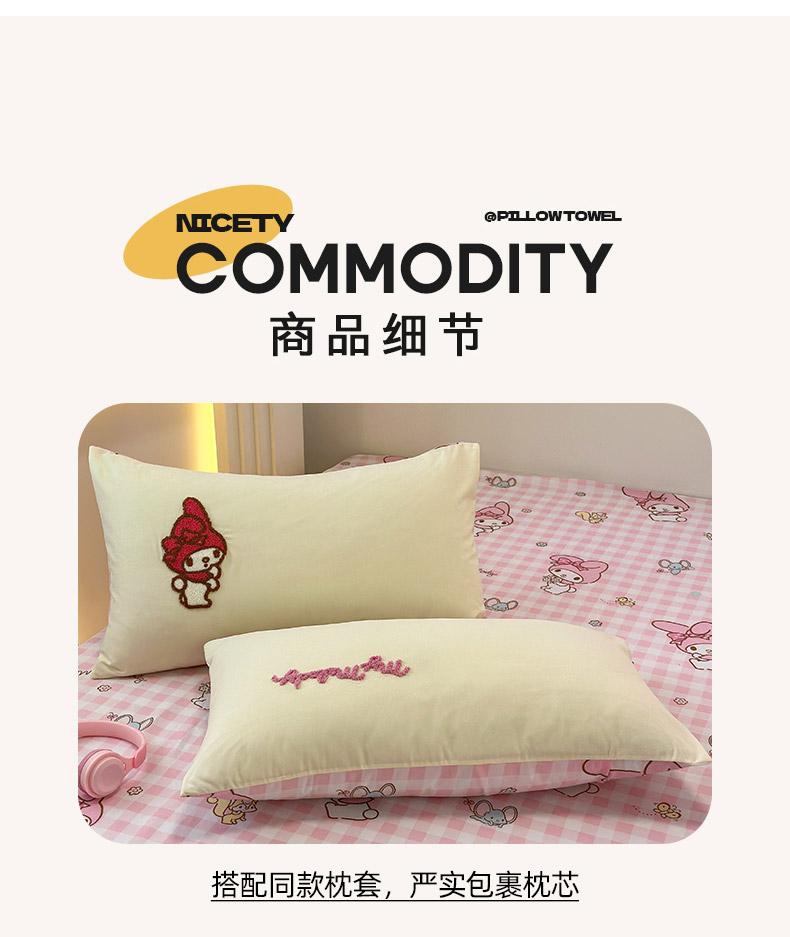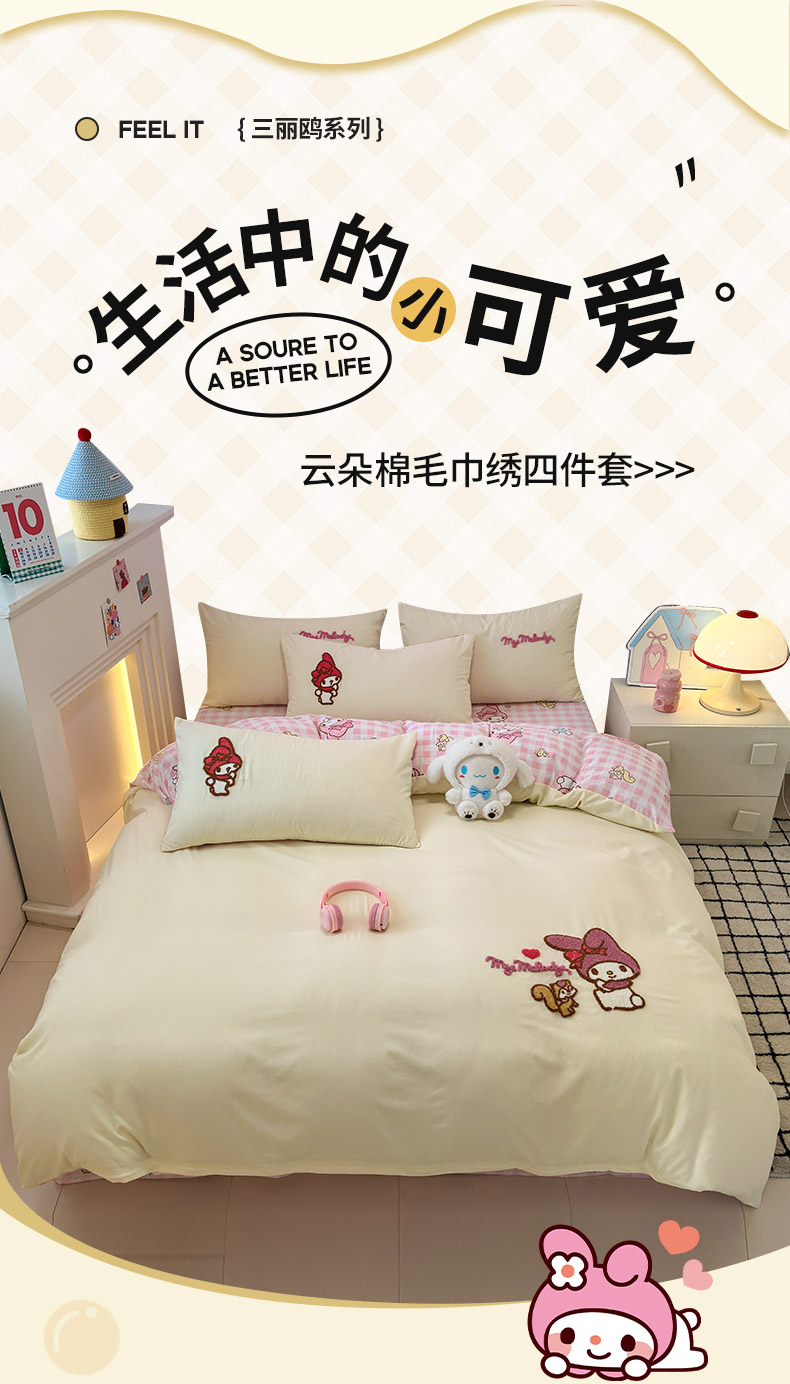 商品名称:乐坊 2025新款三丽鸥系列云朵棉毛巾绣四件套 美乐蒂米