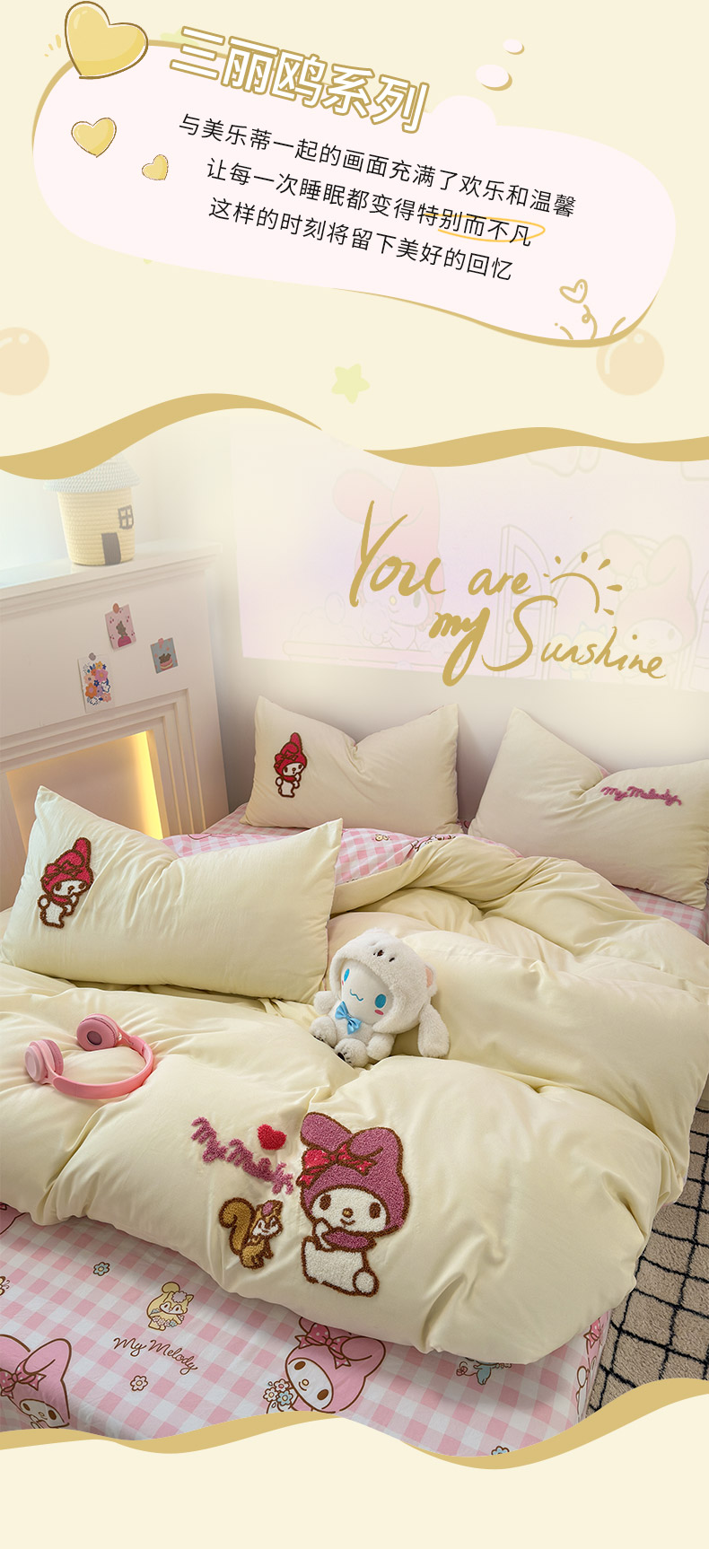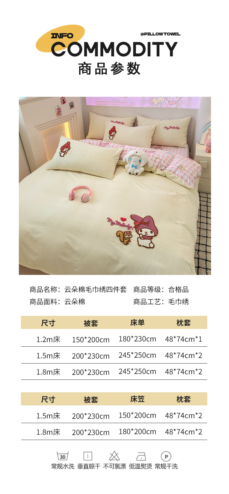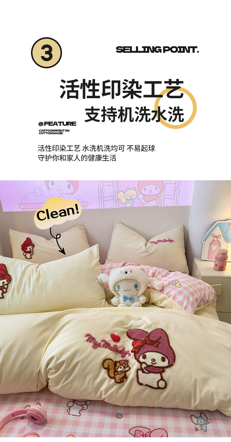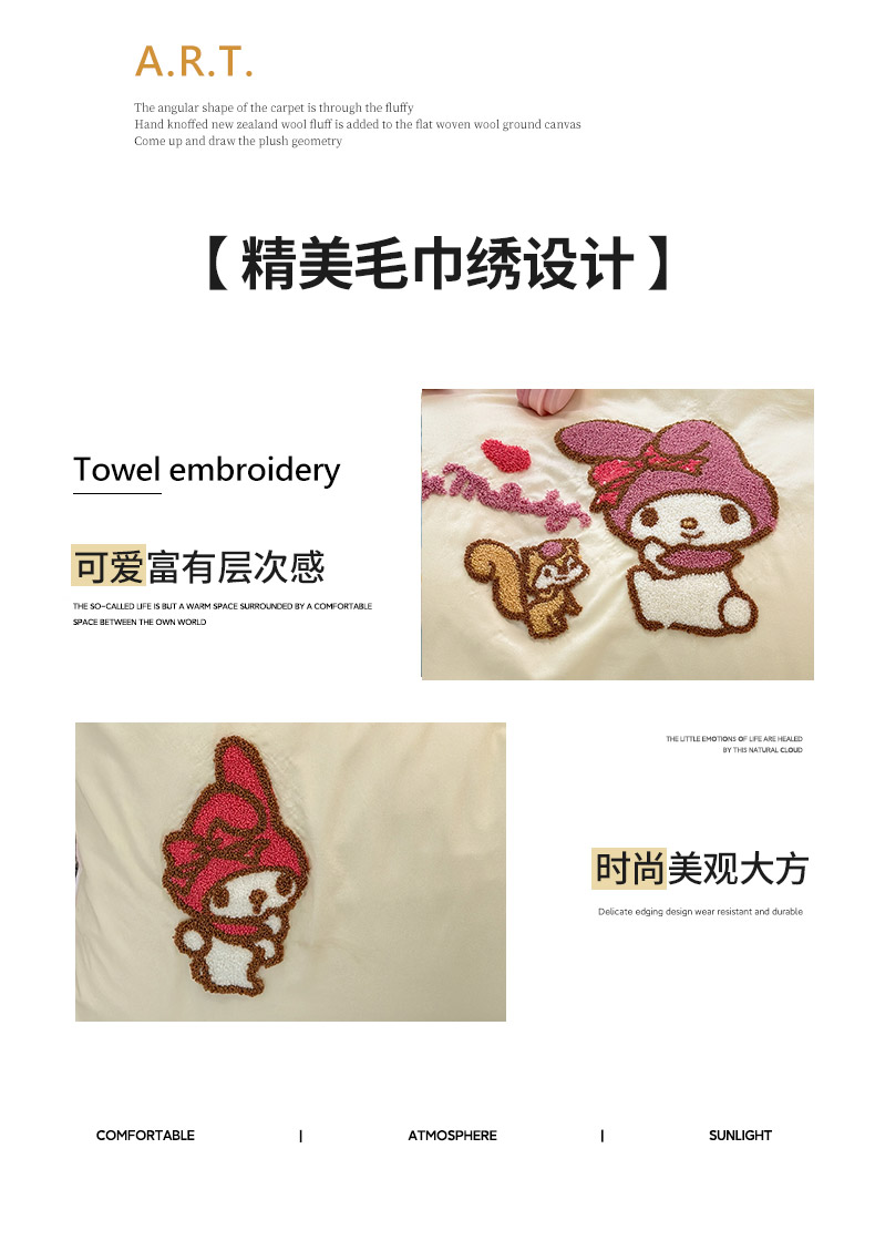 商品名称:乐坊 2025新款三丽鸥系列云朵棉毛巾绣四件套 美乐蒂米