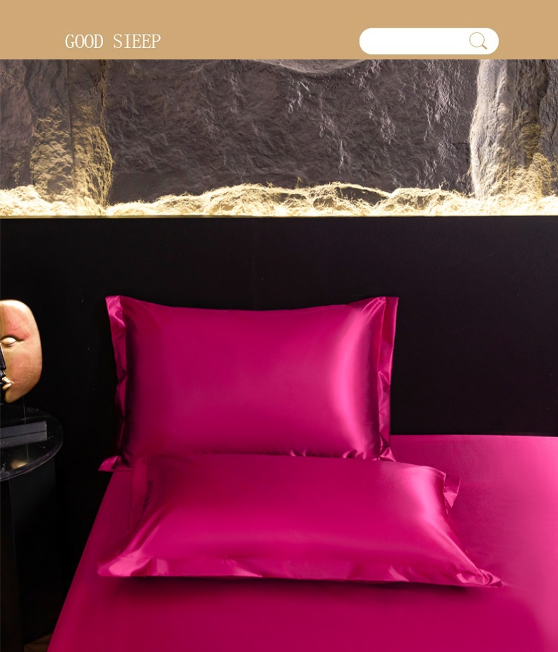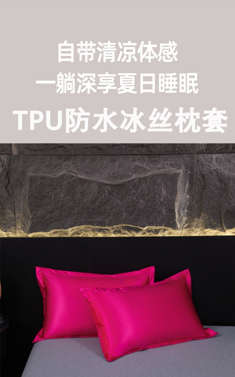 商品名称:圣比熊2025新款防水冰丝纯色单人枕套宿舍枕芯套内胆套 防水款-玫红色