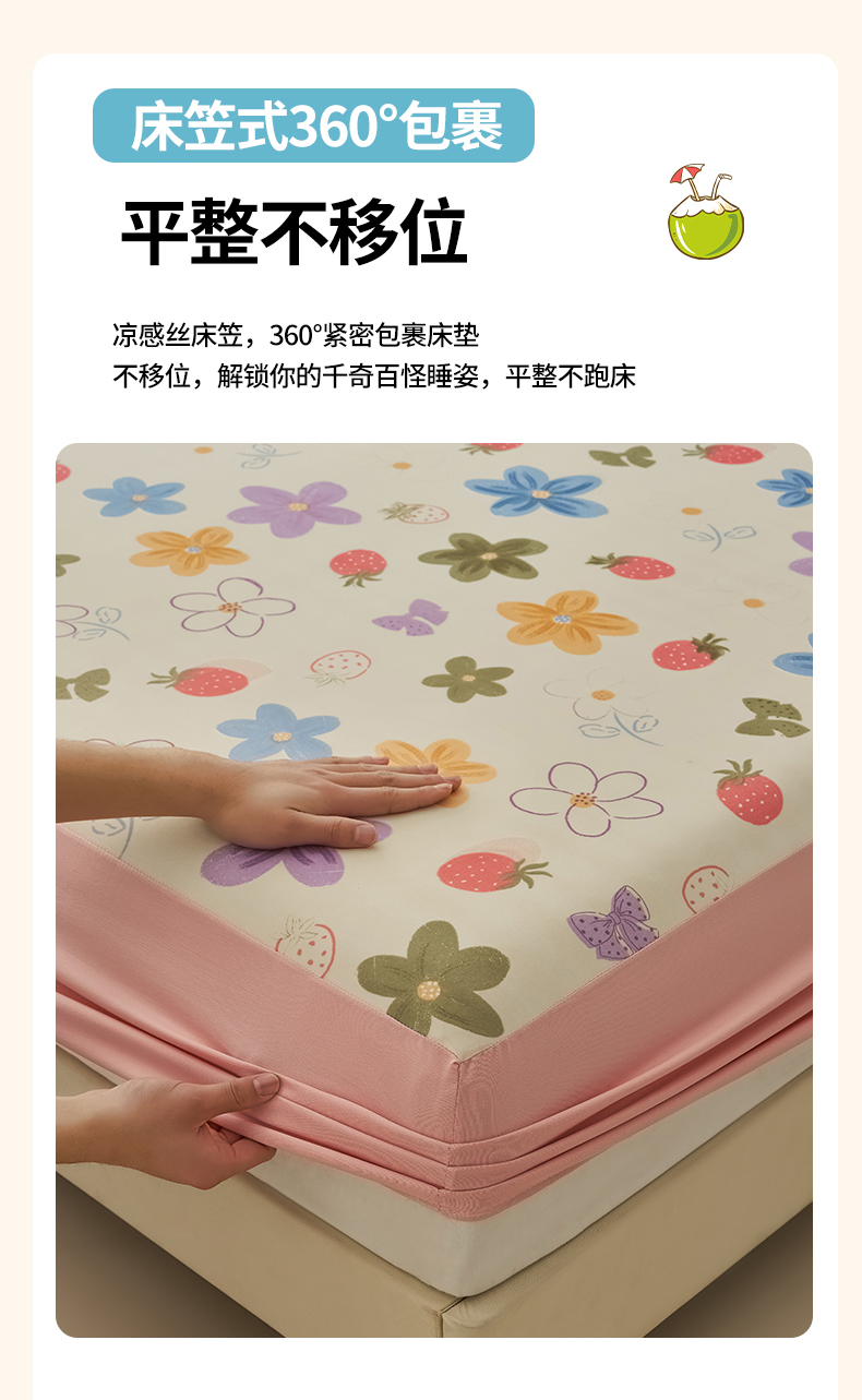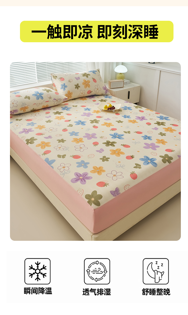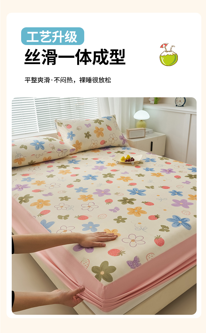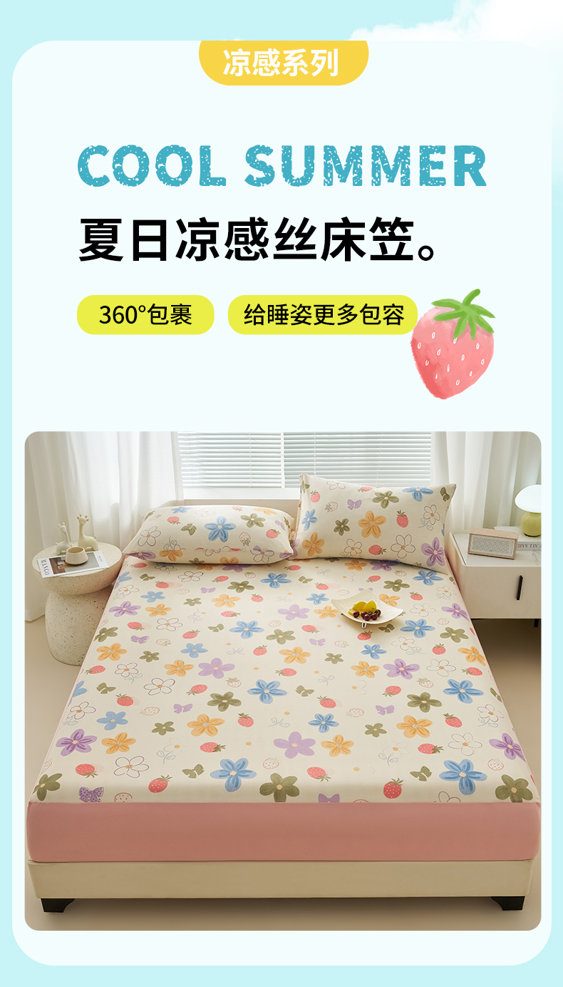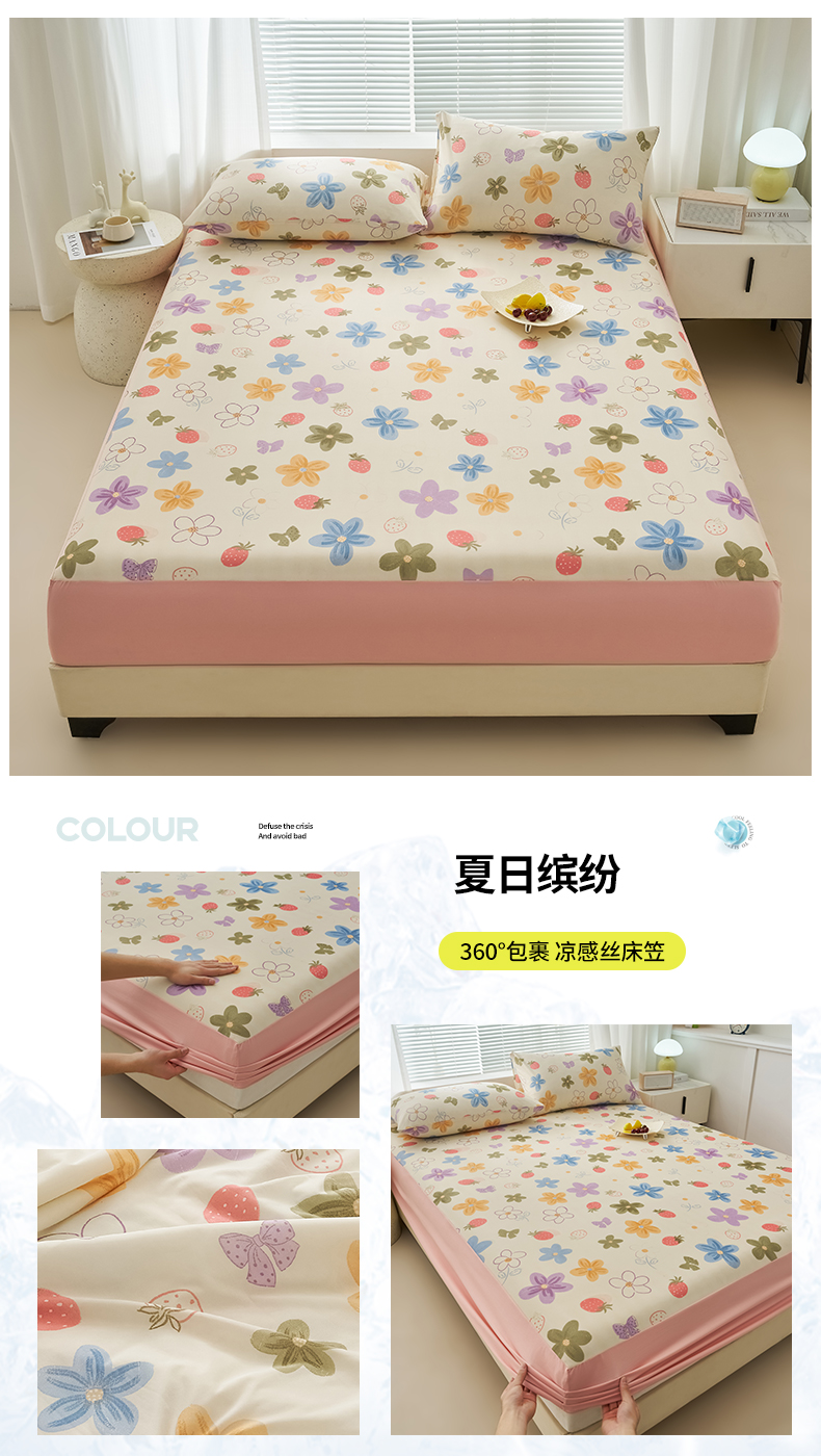 • 91家纺网 家纺一手货源 找家纺 暖阳 2025新款印花凉感丝单床笠 夏日缤纷