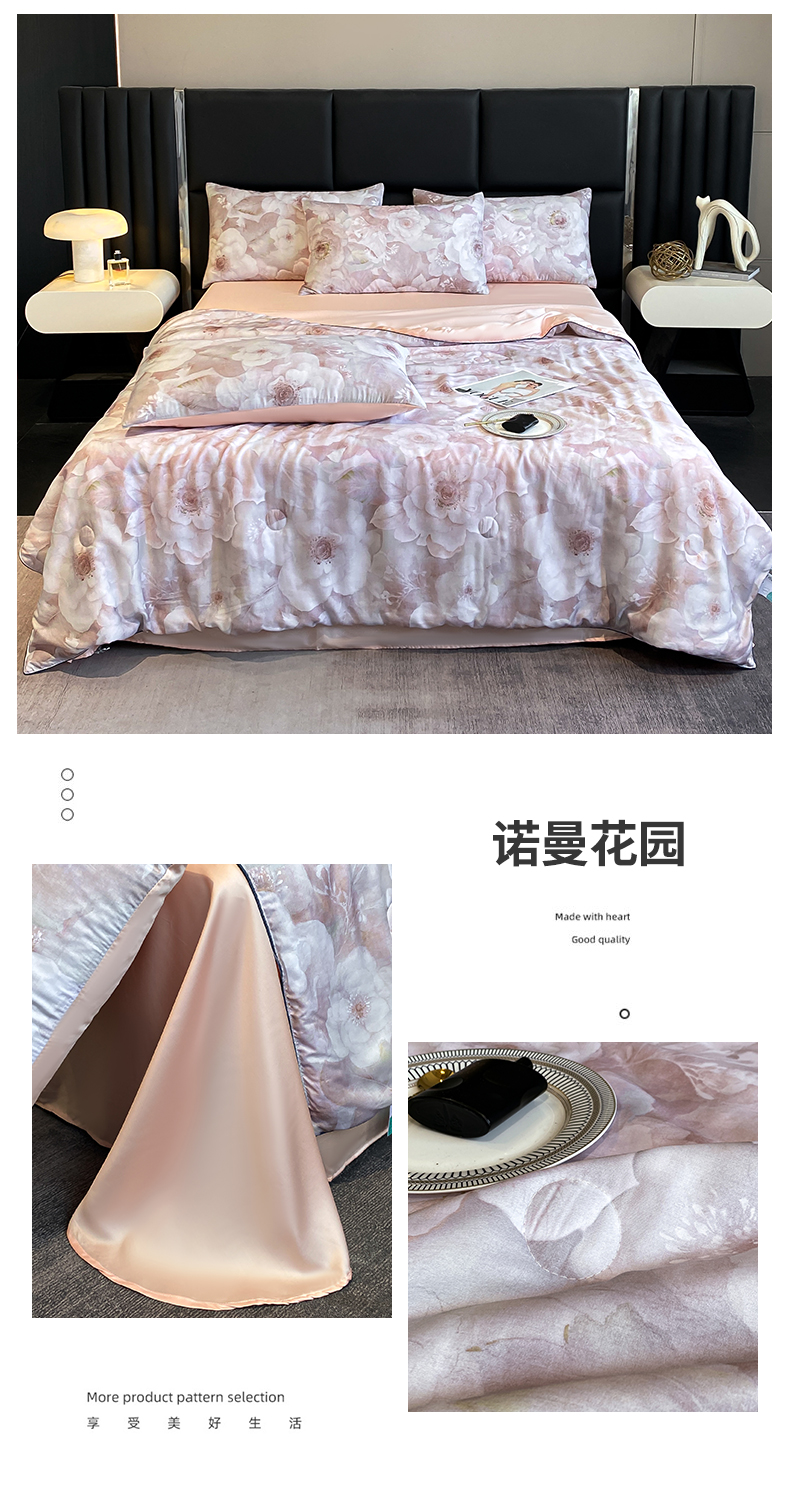 优贝家纺 2025新款100%兰精莱赛尔天丝数码印花夏被四件套 诺曼花园