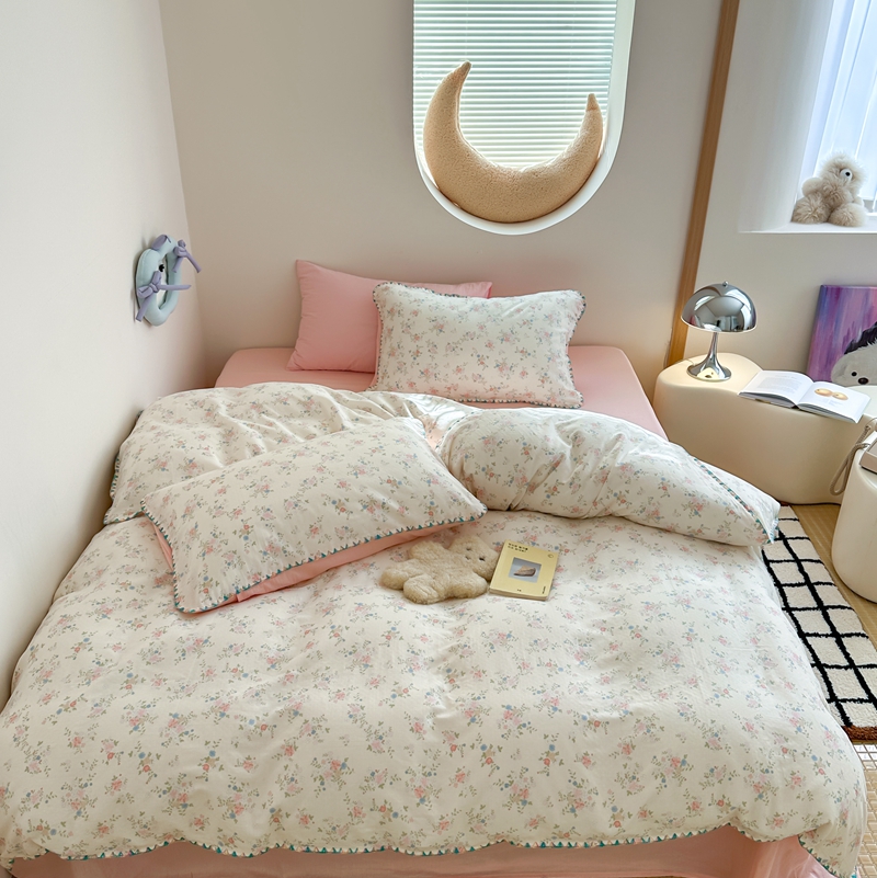 (总)觅糖家纺 2025新款牛奶绒荷叶边小小系列四件套,小小爱心白,小小樱桃酱