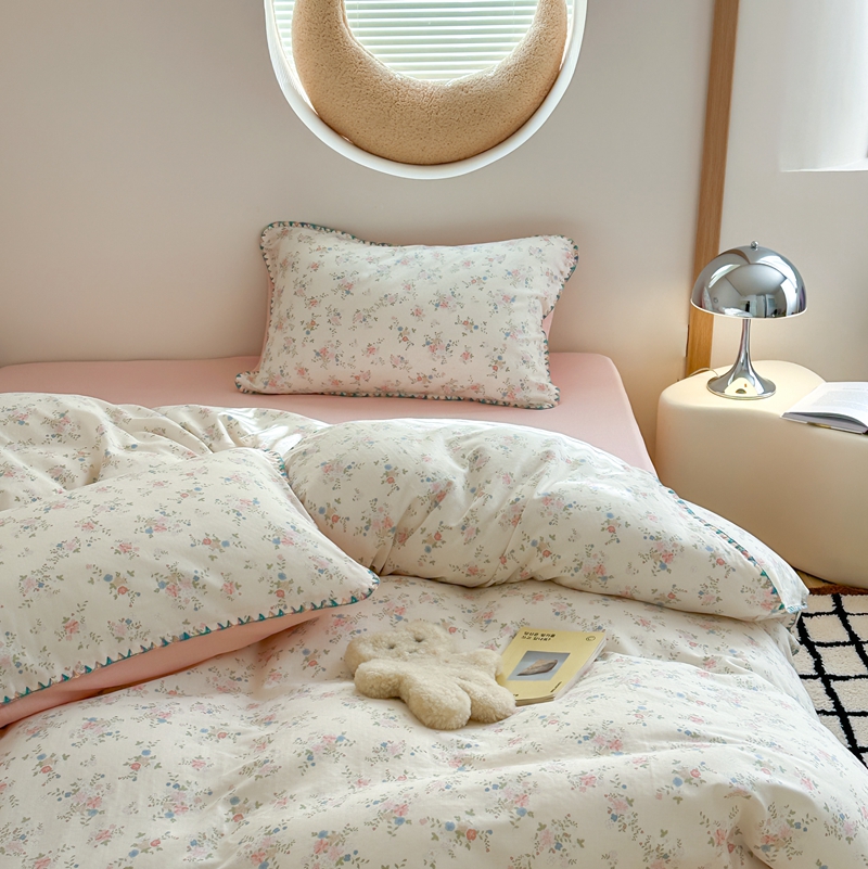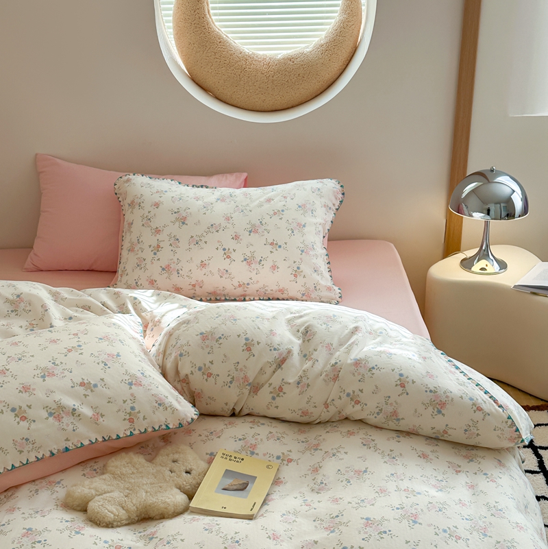 (总)觅糖家纺 2025新款色织提花贝壳边三角针系列四件套,繁花,粉色猪猪,蓝色蜗牛,秘密花园,温柔郁金香,樱桃红了