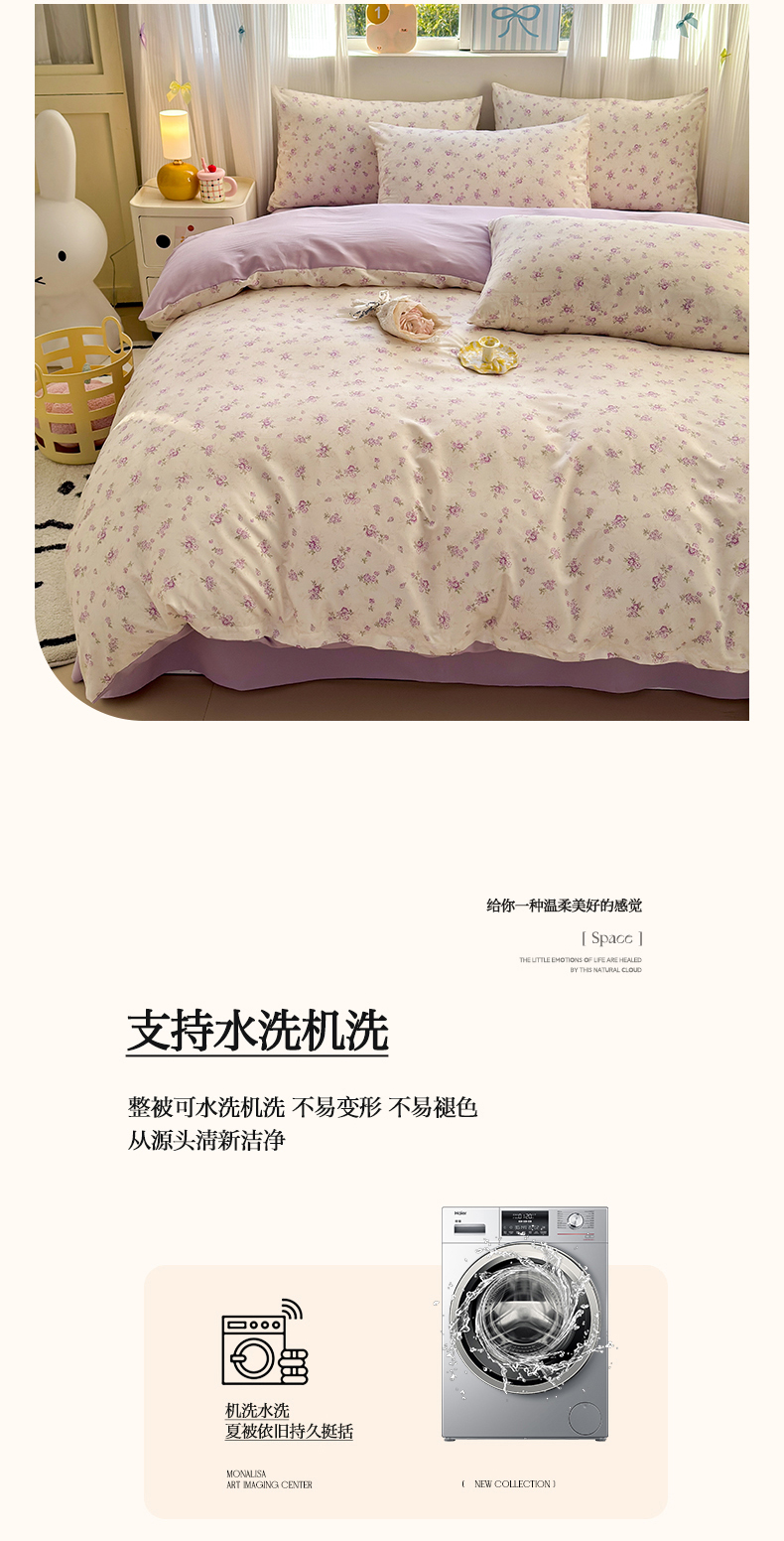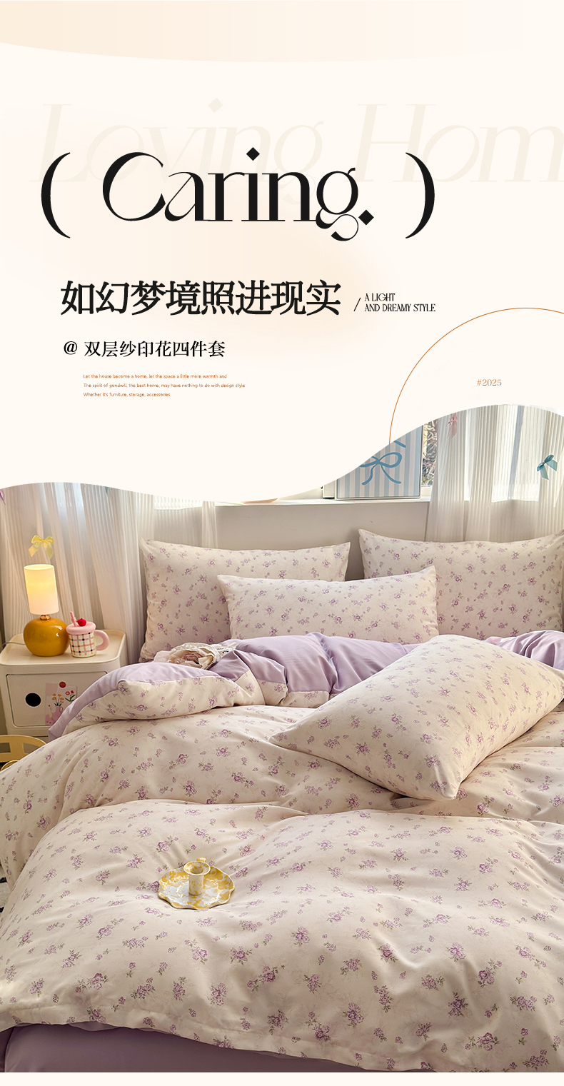 席佬大 2025新款柔软针织棉双层纱印花四件套 春意