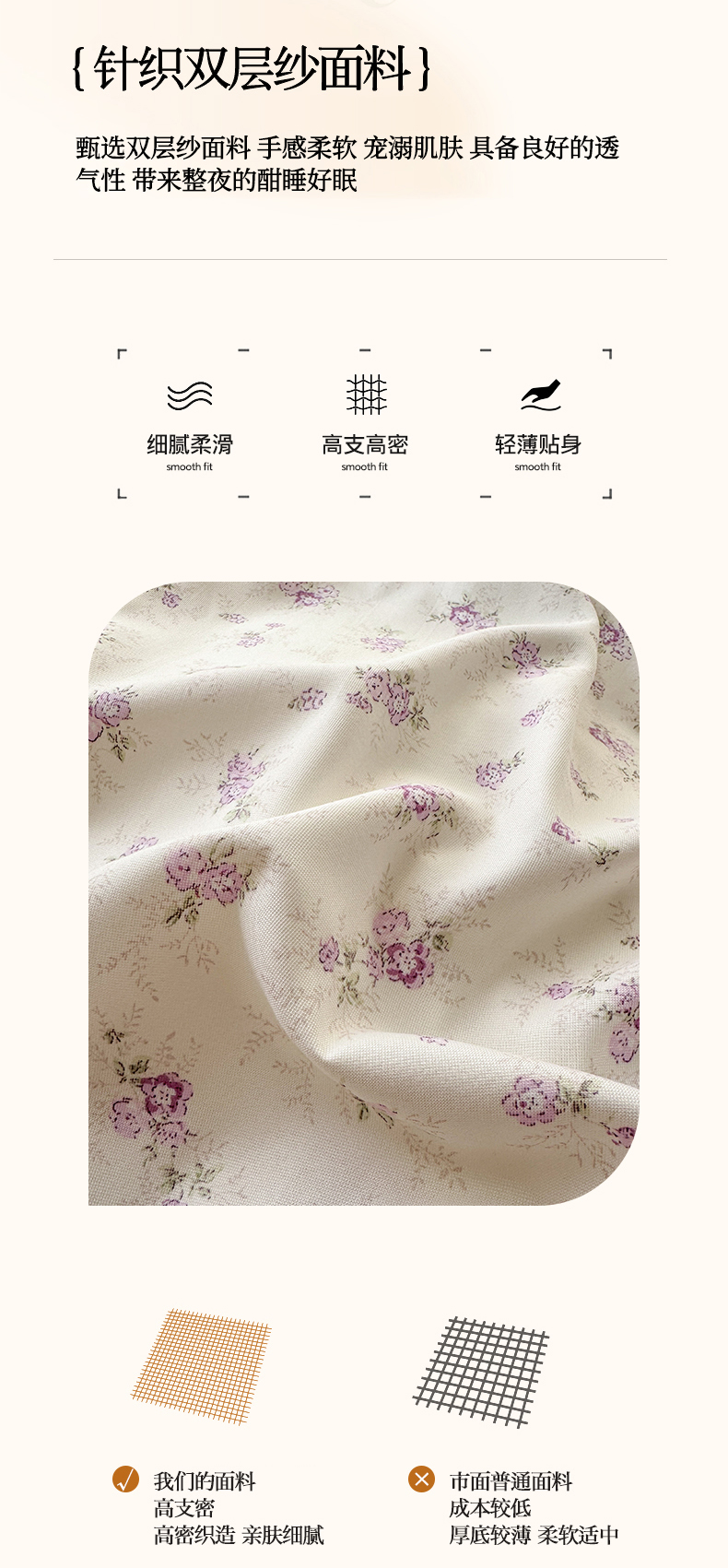 商品名称:席佬大 2025新款柔软针织棉双层纱印花四件套 春意