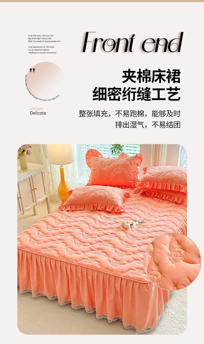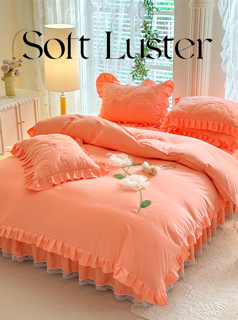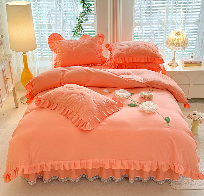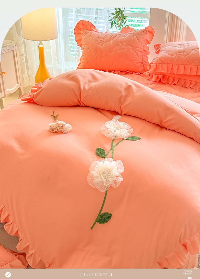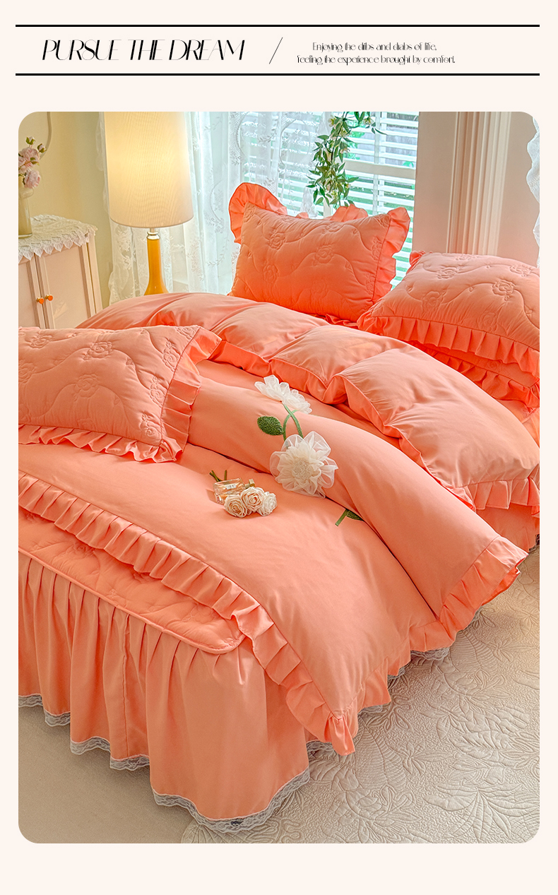 当前位置: 91家纺网 > 商品网购 > 床品套件 > 四件套 > 全棉普通四件套 > 芭比蔓家纺 2025新款夹棉床裙四件套-花海系列 花海系列-橙色