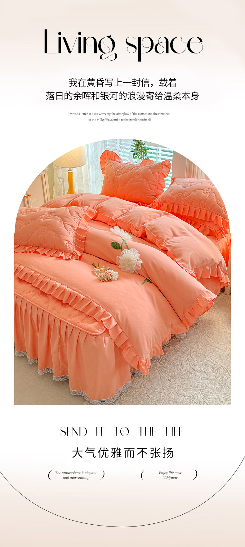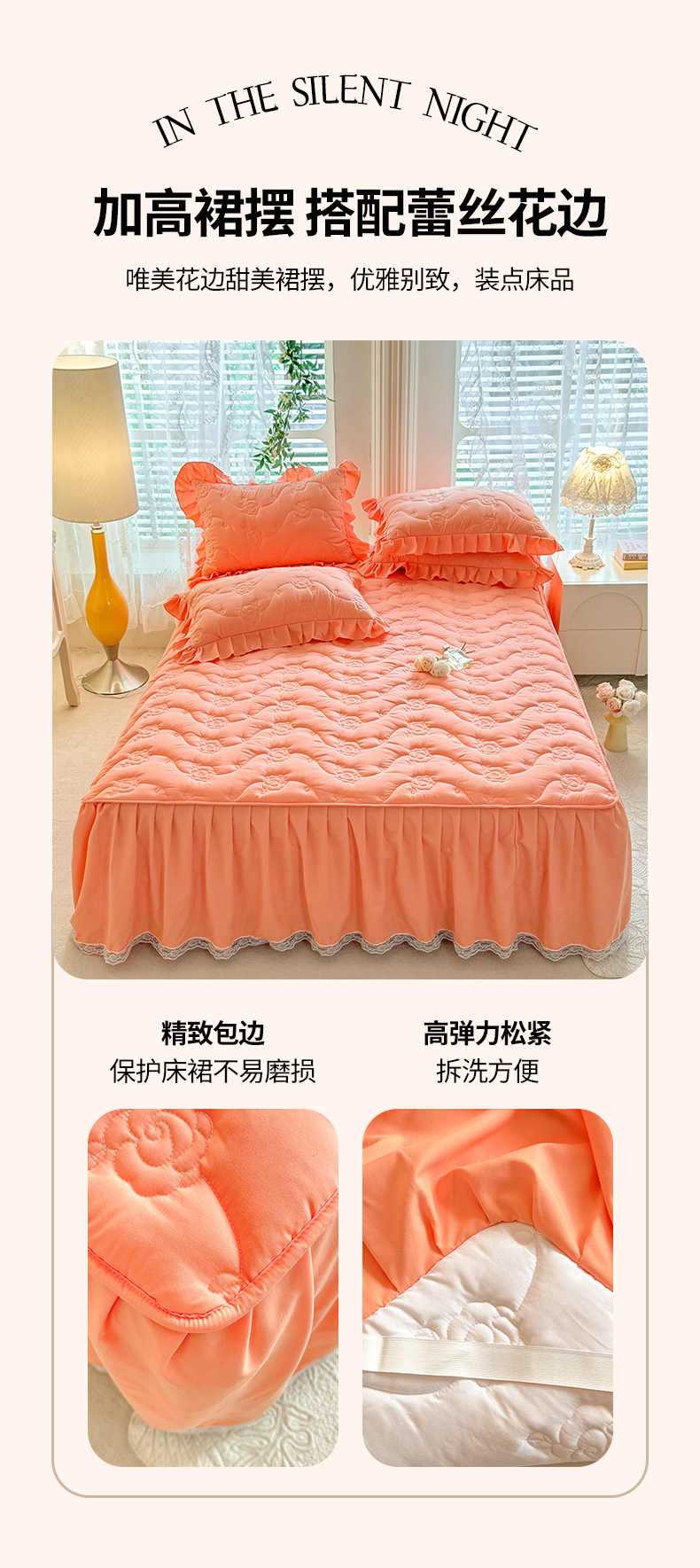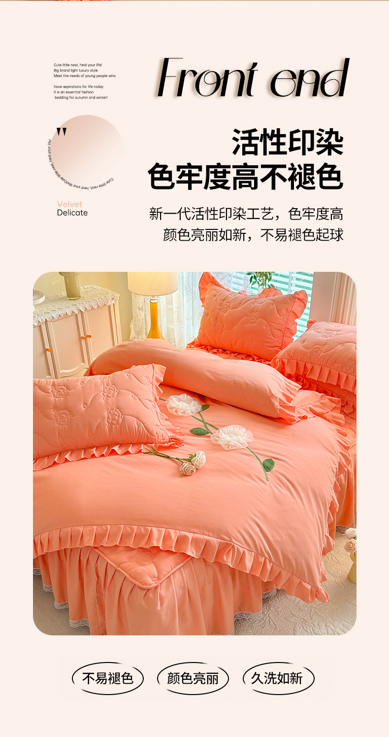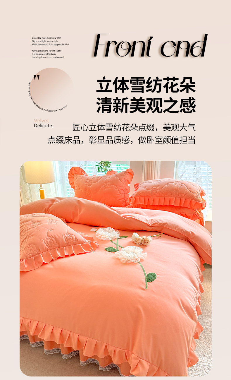 当前位置: 91家纺网 > 商品网购 > 床品套件 > 四件套 > 全棉普通四件套 > 芭比蔓家纺 2025新款夹棉床裙四件套-花海系列 花海系列-橙色