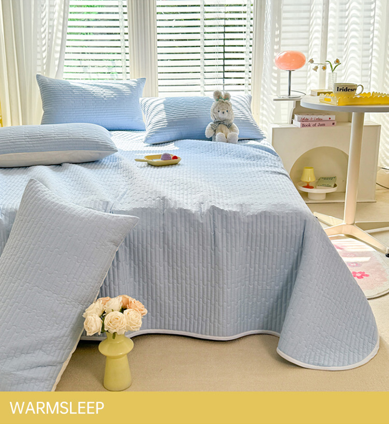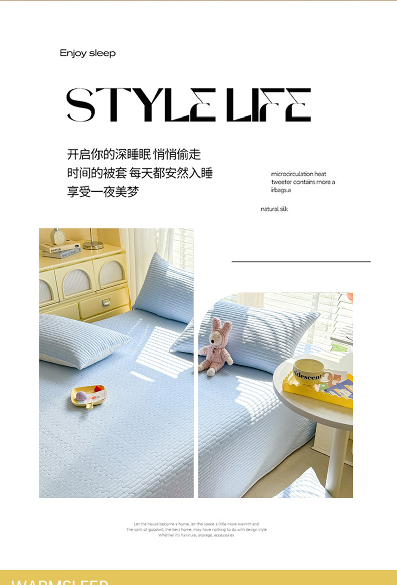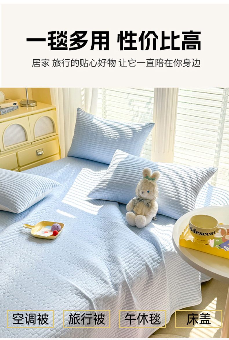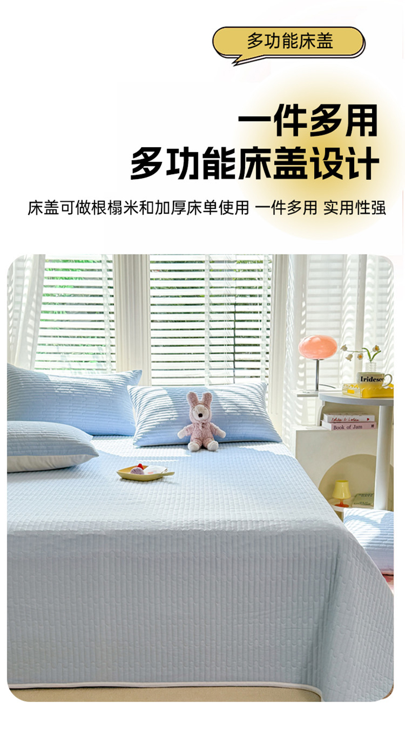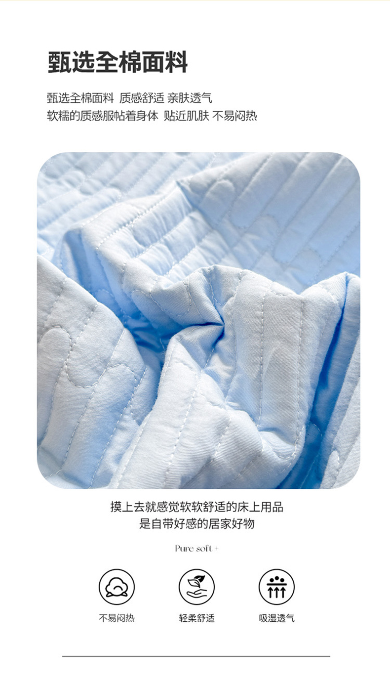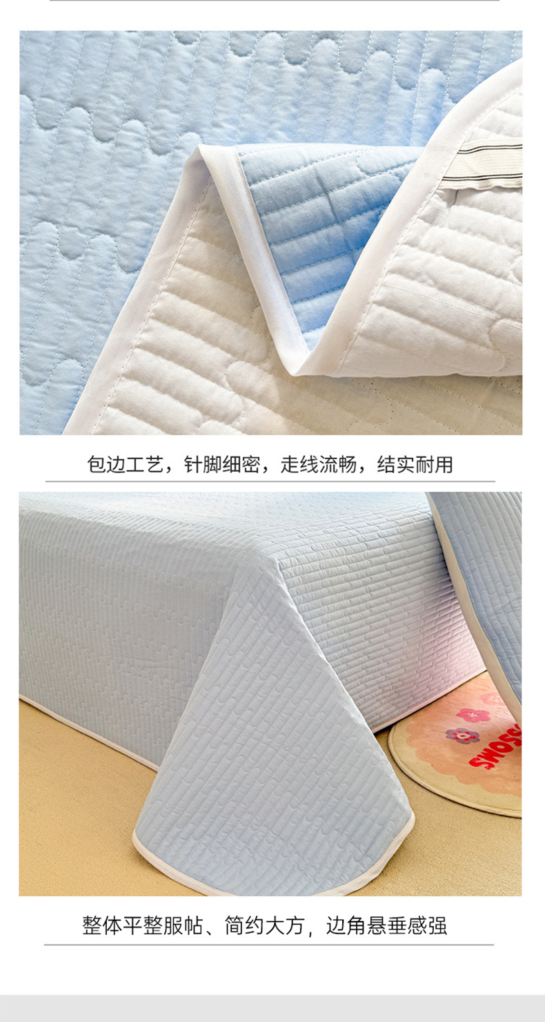 花香四季2025全棉夹棉多功能床垫-床盖系列 海盐蓝