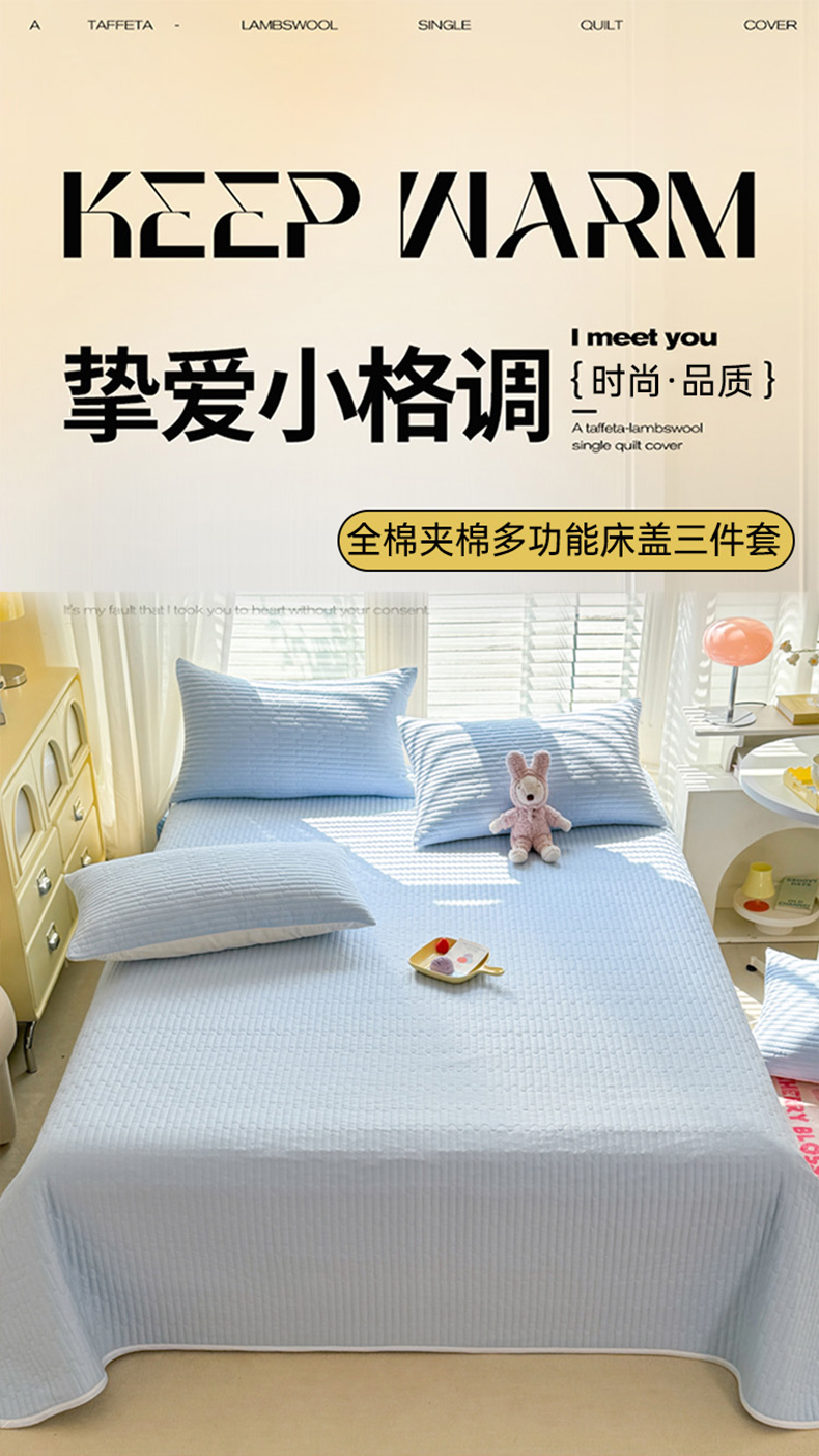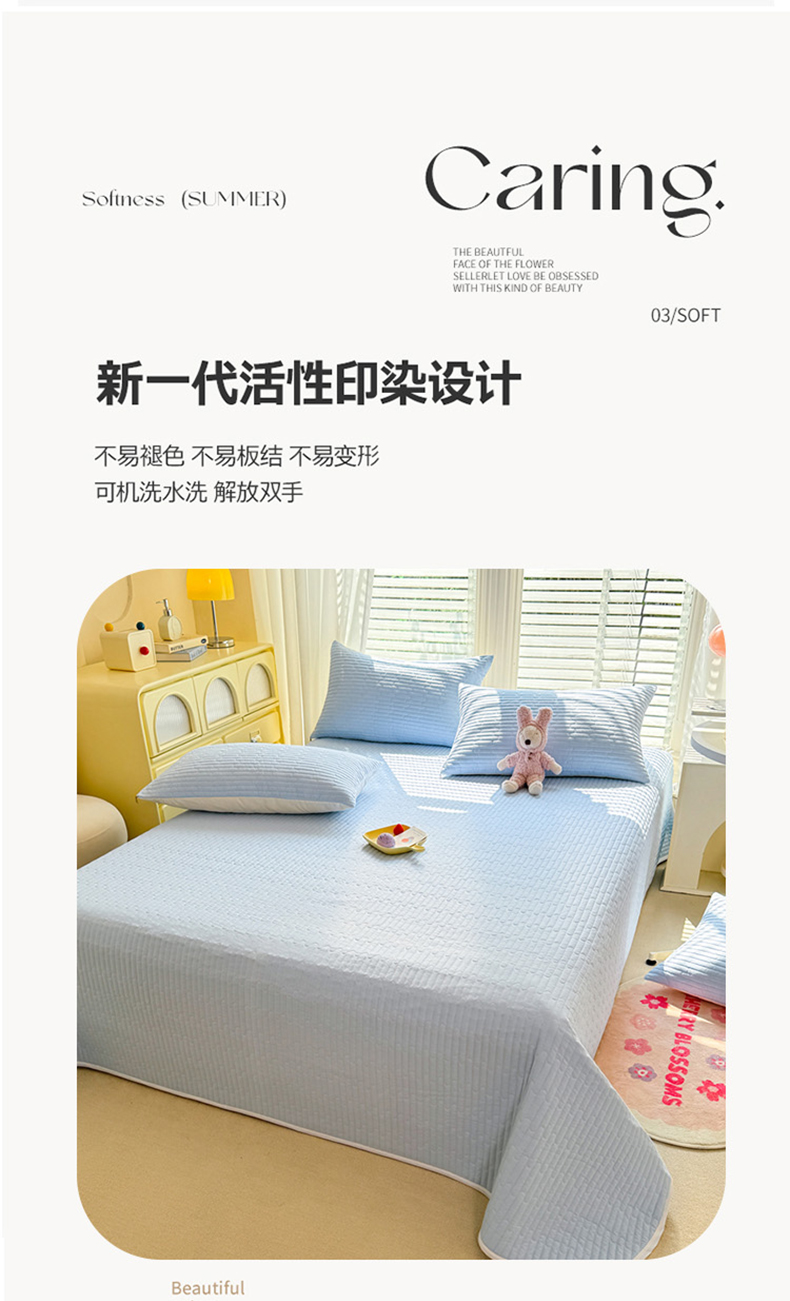 • 91家纺网 家纺一手货源 找家纺 花香四季2025全棉夹棉多功能床垫-床盖系列 海盐蓝