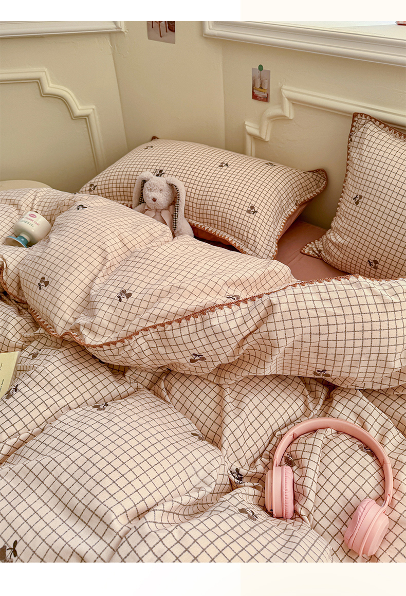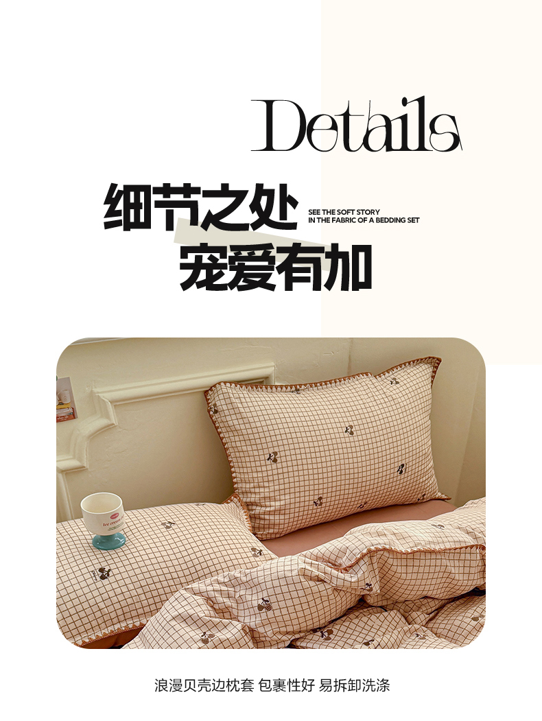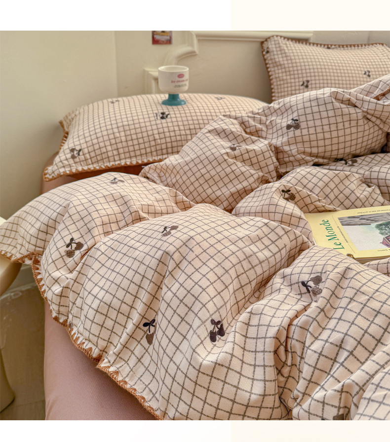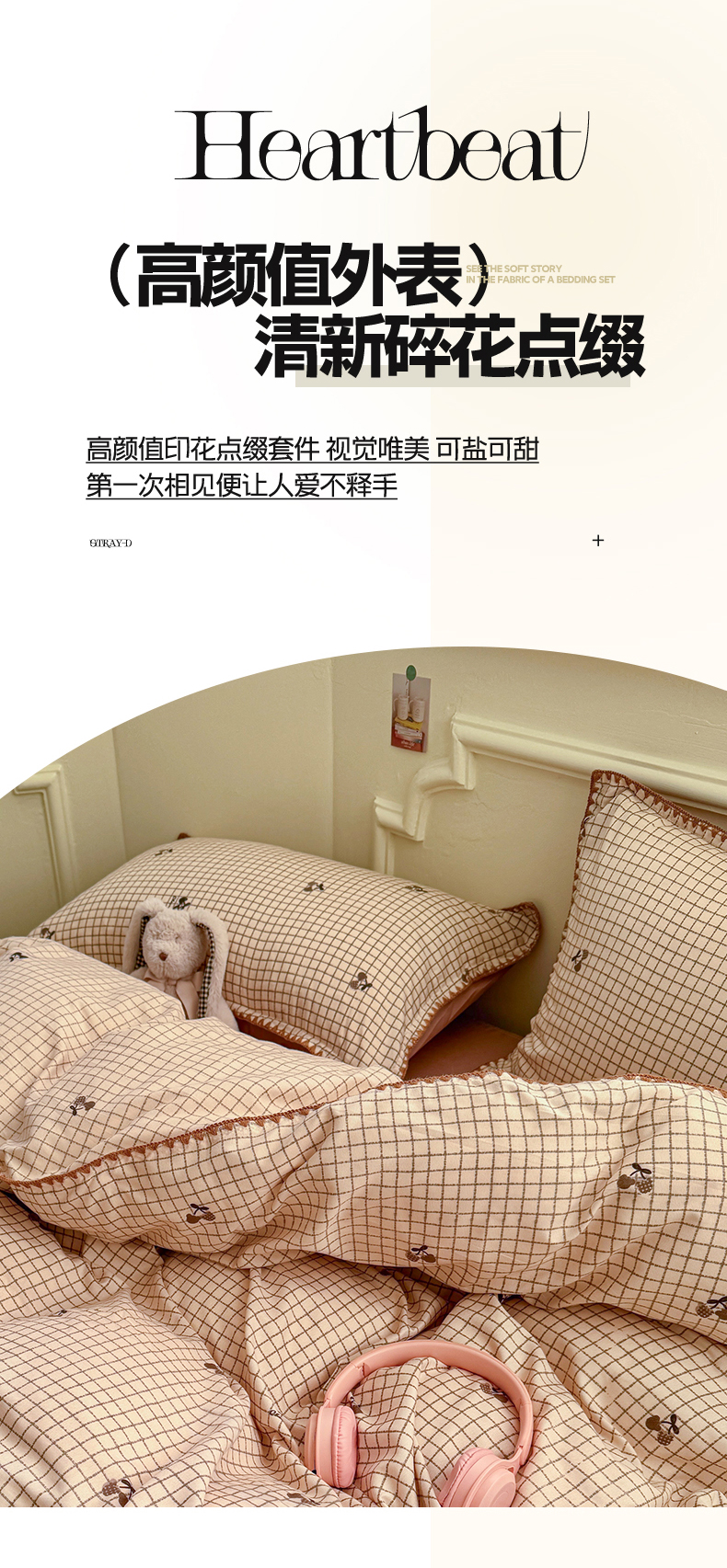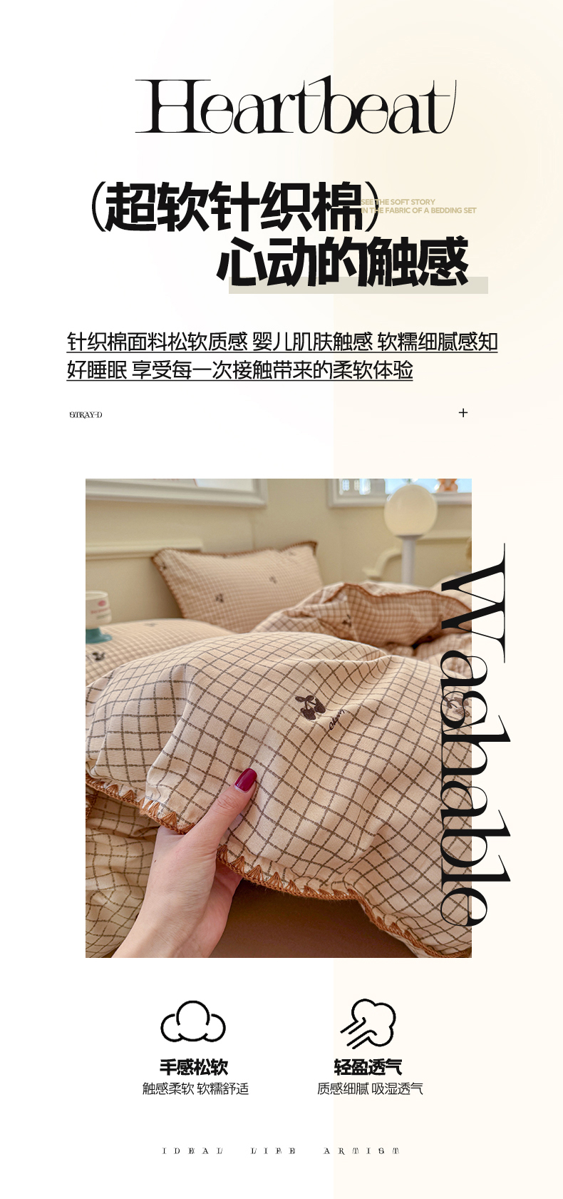 韩都家居2025新款水洗双层纱针织棉三角针四件套(包含买家秀) 巧克力